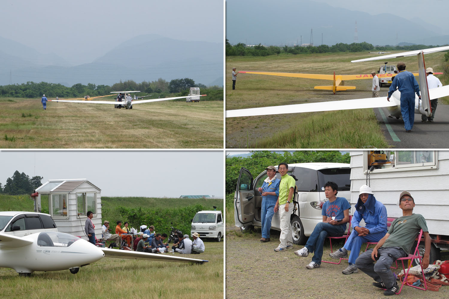 120623 OGC+名大_00 季節はずれの上陸台風と、熱帯低気圧崩れが通過した後の大野滑空場、今週はOGCと名古屋大学の合同運航。