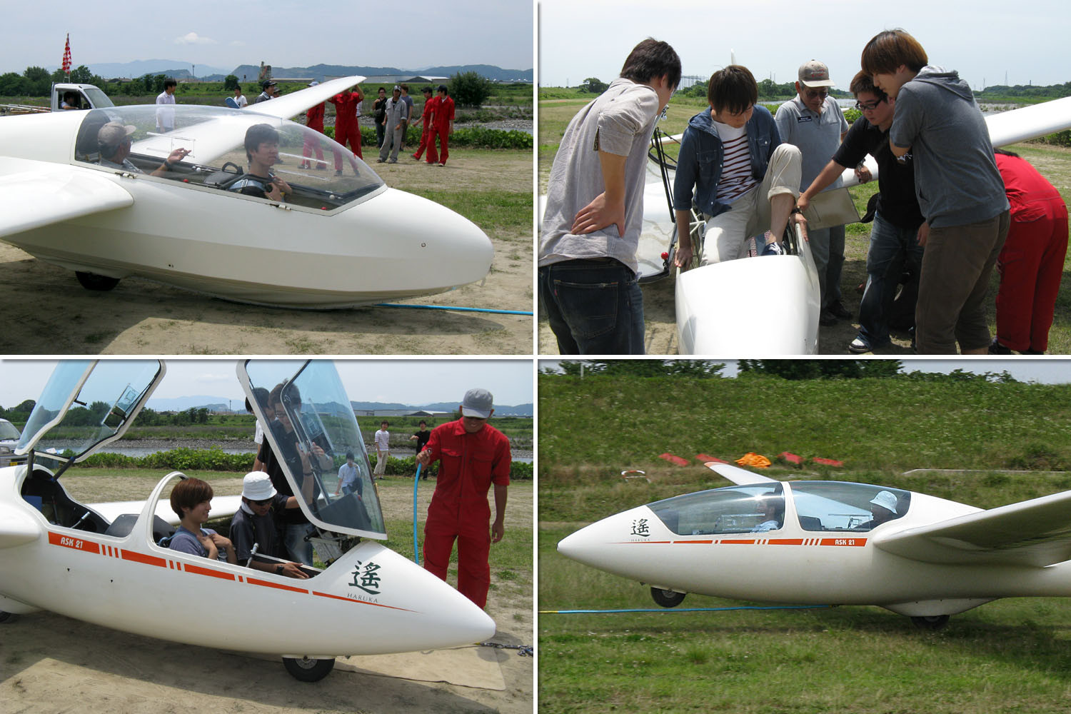 始めて見るグライダーの離陸上昇を見て 驚きの声をあげていました。 近年、部員数減少の立命航空部、ガンバレ!