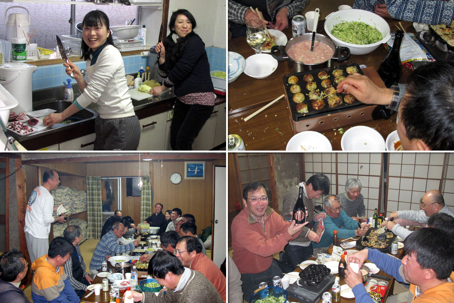 120228 OGC誕生会_02 今年入会された大澤さん、太田さん、 立畠さん夫婦も 参加され、まな板奉行、鉄板奉行と大活躍です。