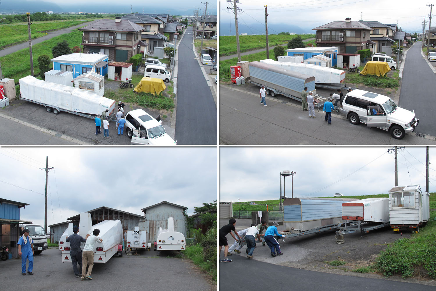 間一髪機体を分解してトレーラーを閉じると同時に大粒の雨。