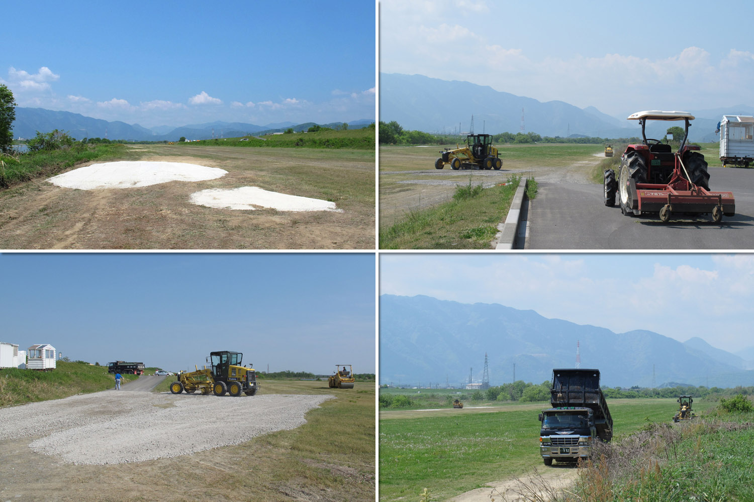 滑走路普請 のコピー 荒れた 滑走路面を補修するために、整備作業が始まりました。