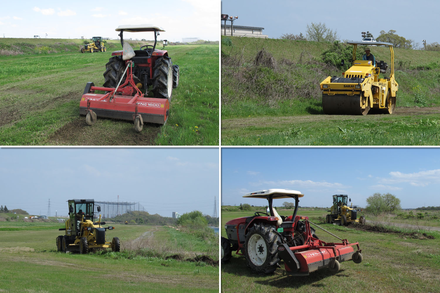 滑走路普請-2日目 滑走路整備 2日目を迎えた 4月 17日の作業は 未明に降った雨の影響で午後から開始になりました。