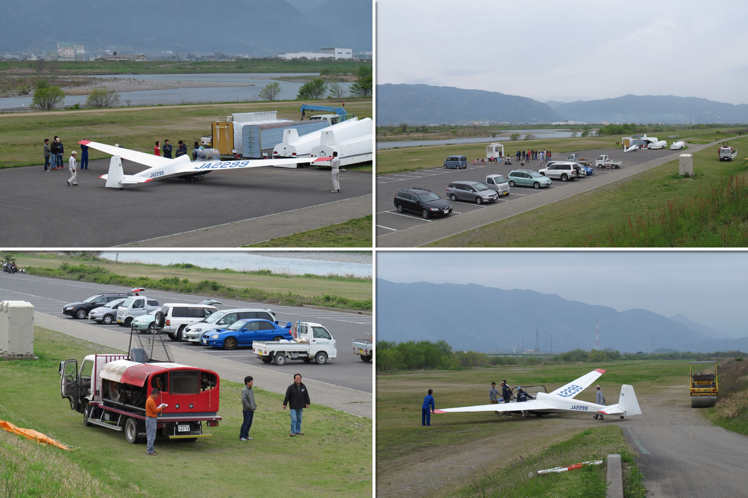 ASK13、ASK23、Discus bT の 3機を組み立てろ頃は予報通り南風になり、川上側への大移動から始まりました。