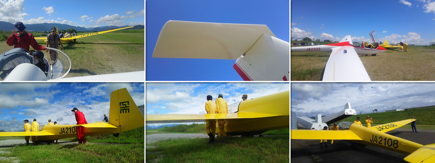 機体は JA2108 及び JA2333 の 2 機、単座は JA2128 をスタンバイしていましたが風の状況が良くなく結局組みませんでした。