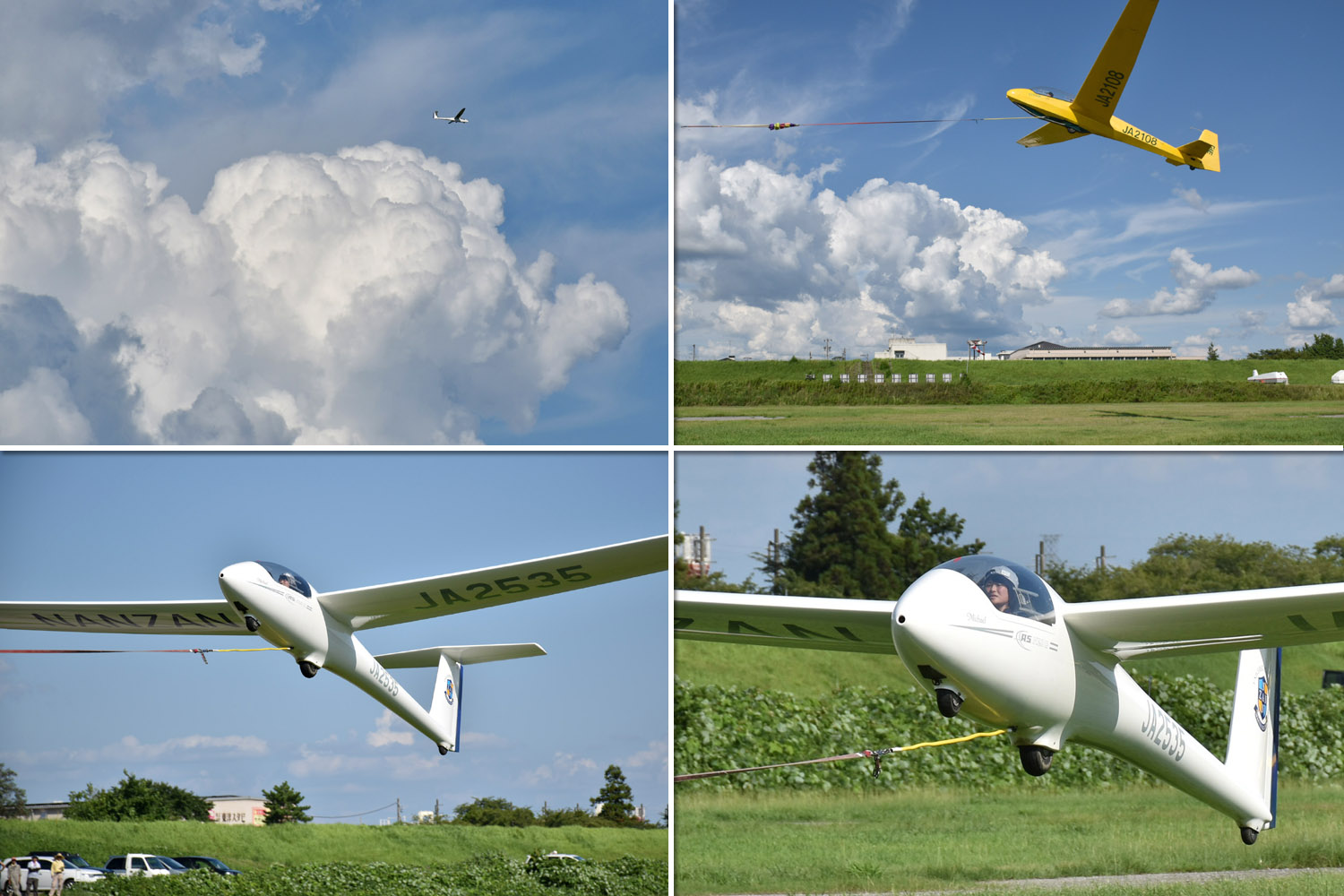 午前中は、学生さんのソロが続いて、自家用受験経歴がそろった学生もいました。 特に南山大の女性群の活躍が目立ち、大市さん・湯浅さんは母校のミカエルで、初 ASK23 を達成しました。