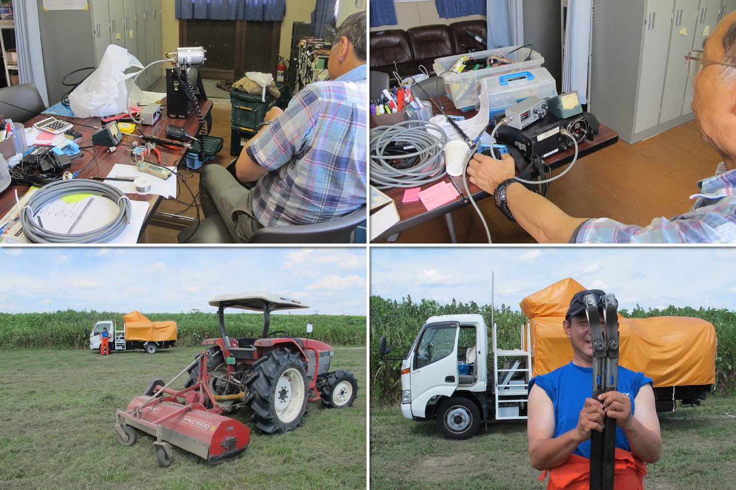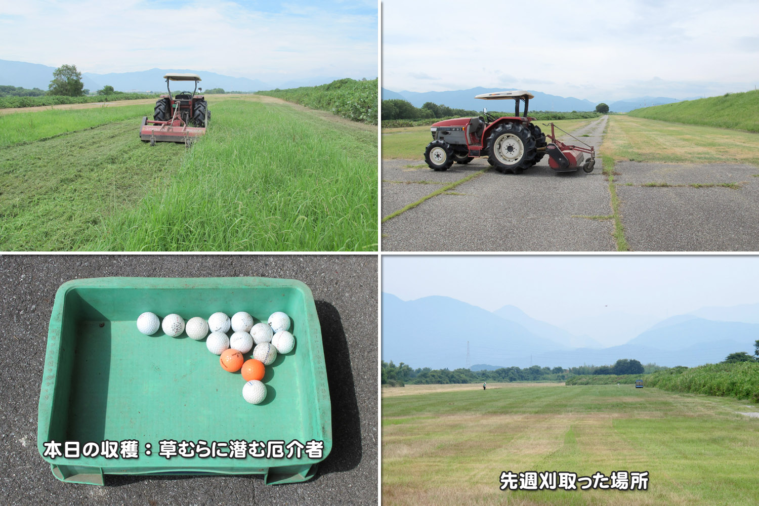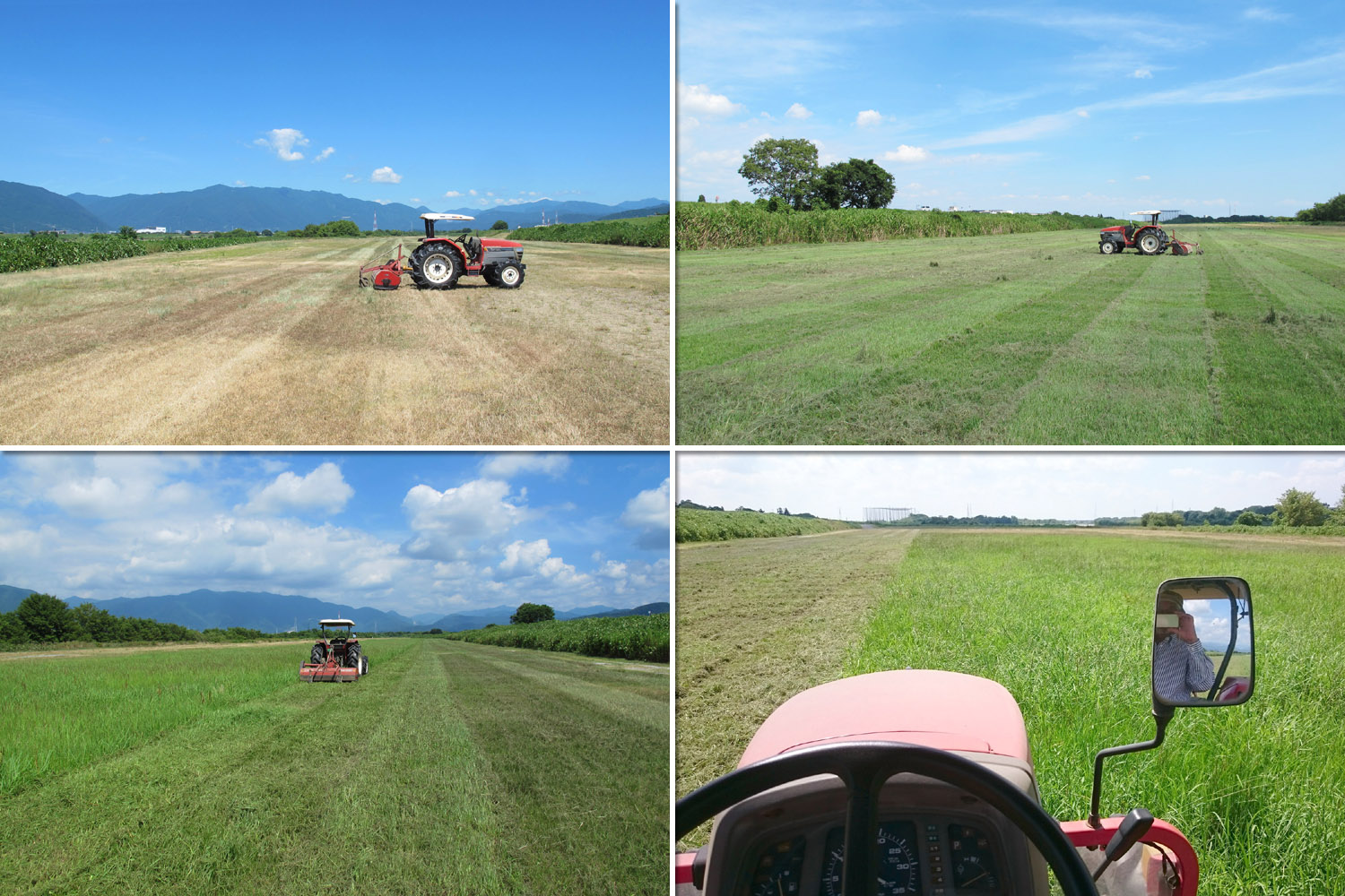 膝の高さまで草が伸びた滑走路では草刈民代トラクタが大活躍しています。