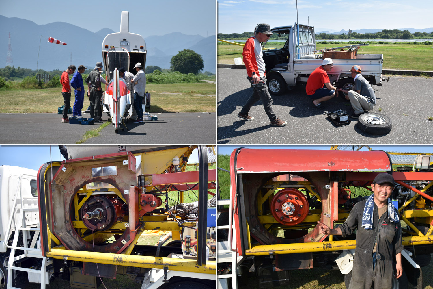 ブレーキをオーバーホール中のウインチ (クワトロ) は設備が整った木曽川格納庫へ移動。