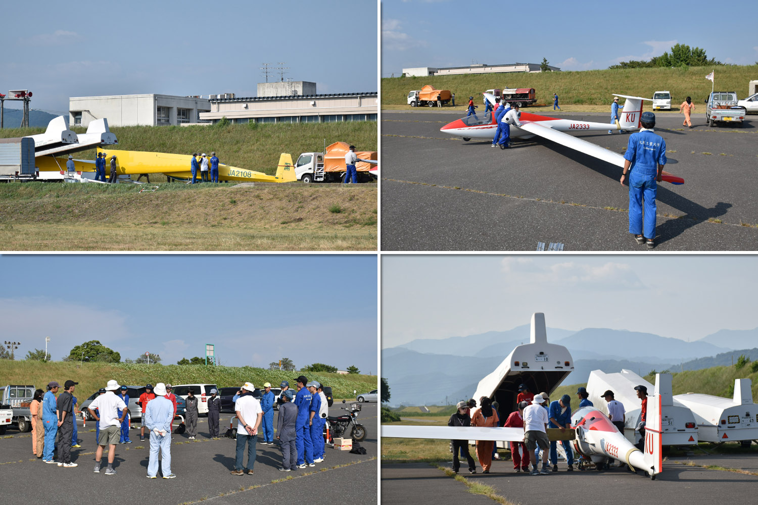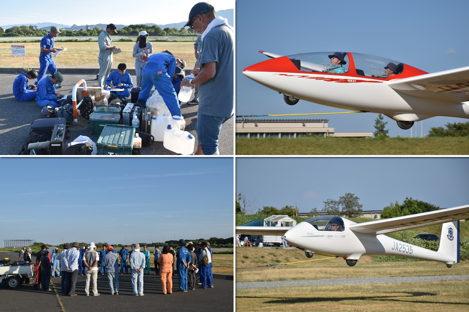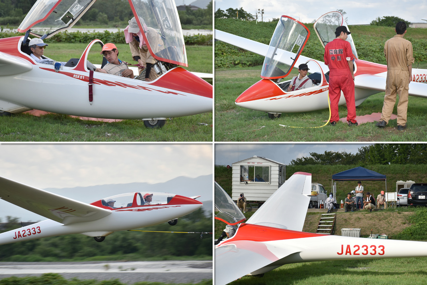 今日から南山・関大と OGC との合同訓練、学生 21名、OGC 会員が 6名参加。 ASK21(JA2333)、ASK13(JA2108)、ASK23(JA2535) の 3 機を組み、8:24 から飛行開始しました。