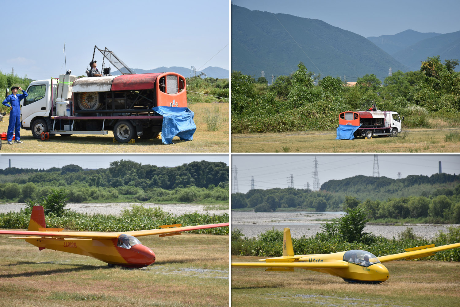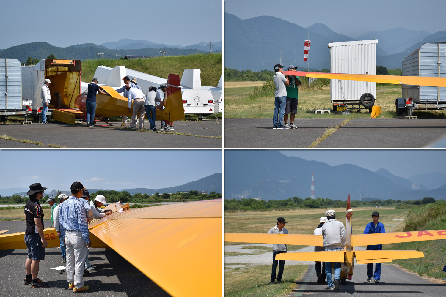 雲底が上がるのを待ちながら JA2333 を組立てて川上発航場所へ移動しました。