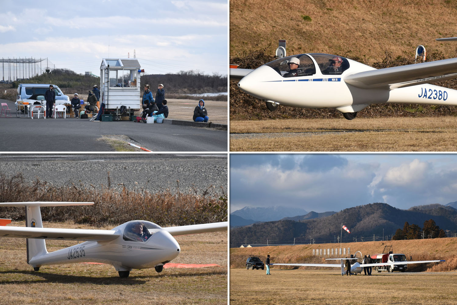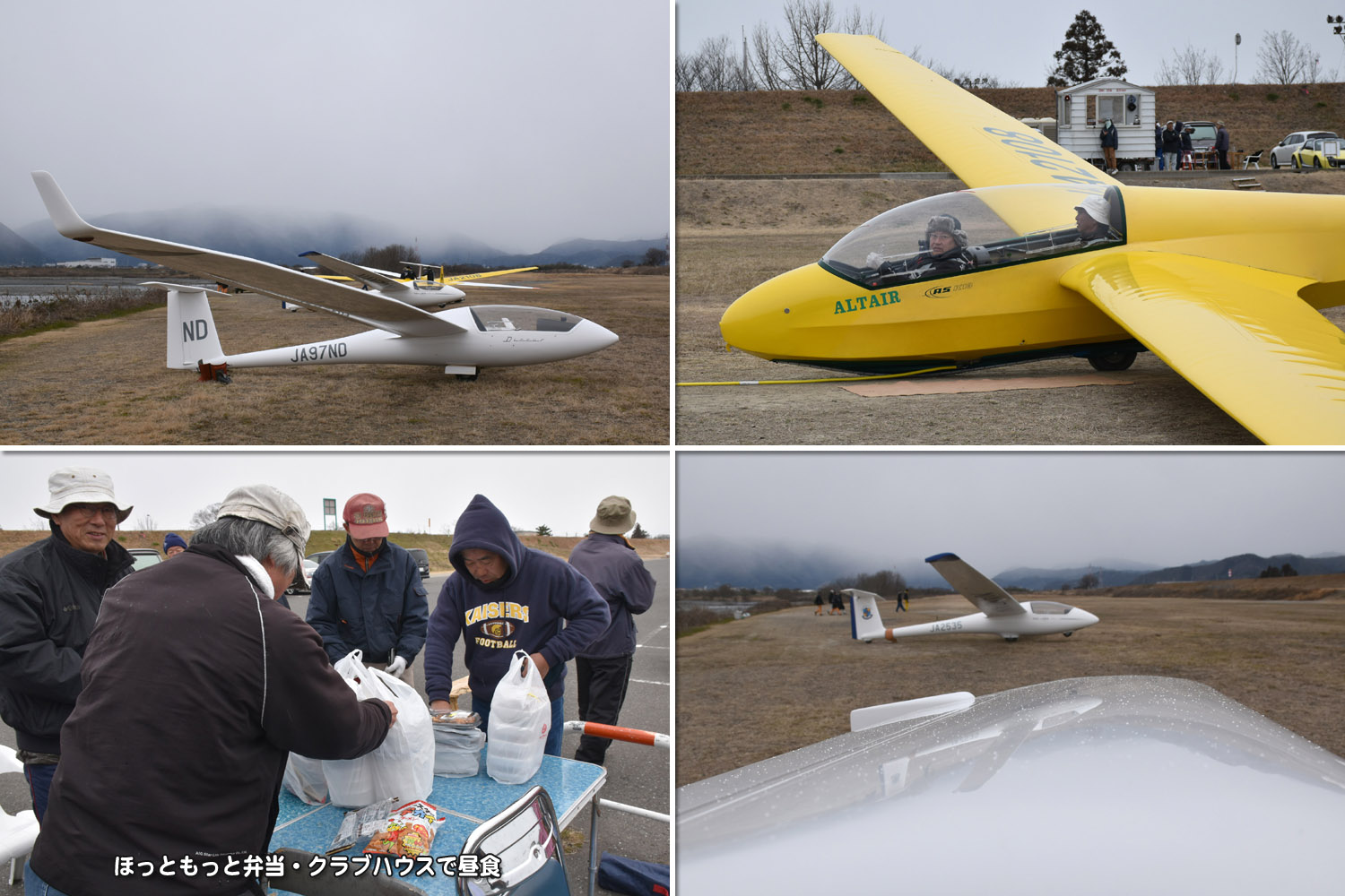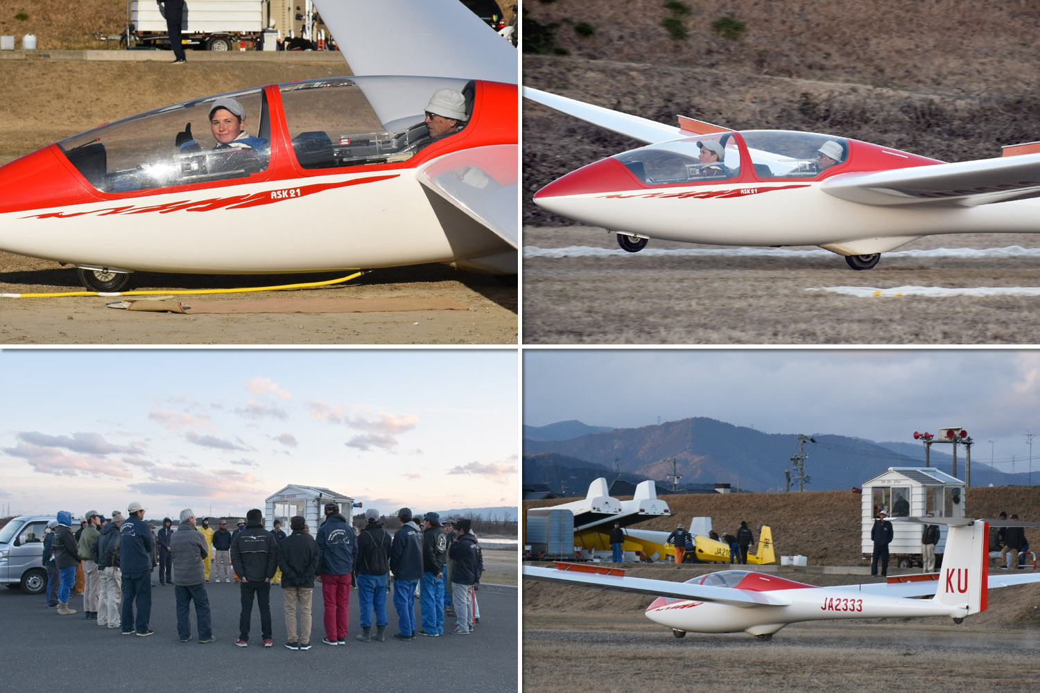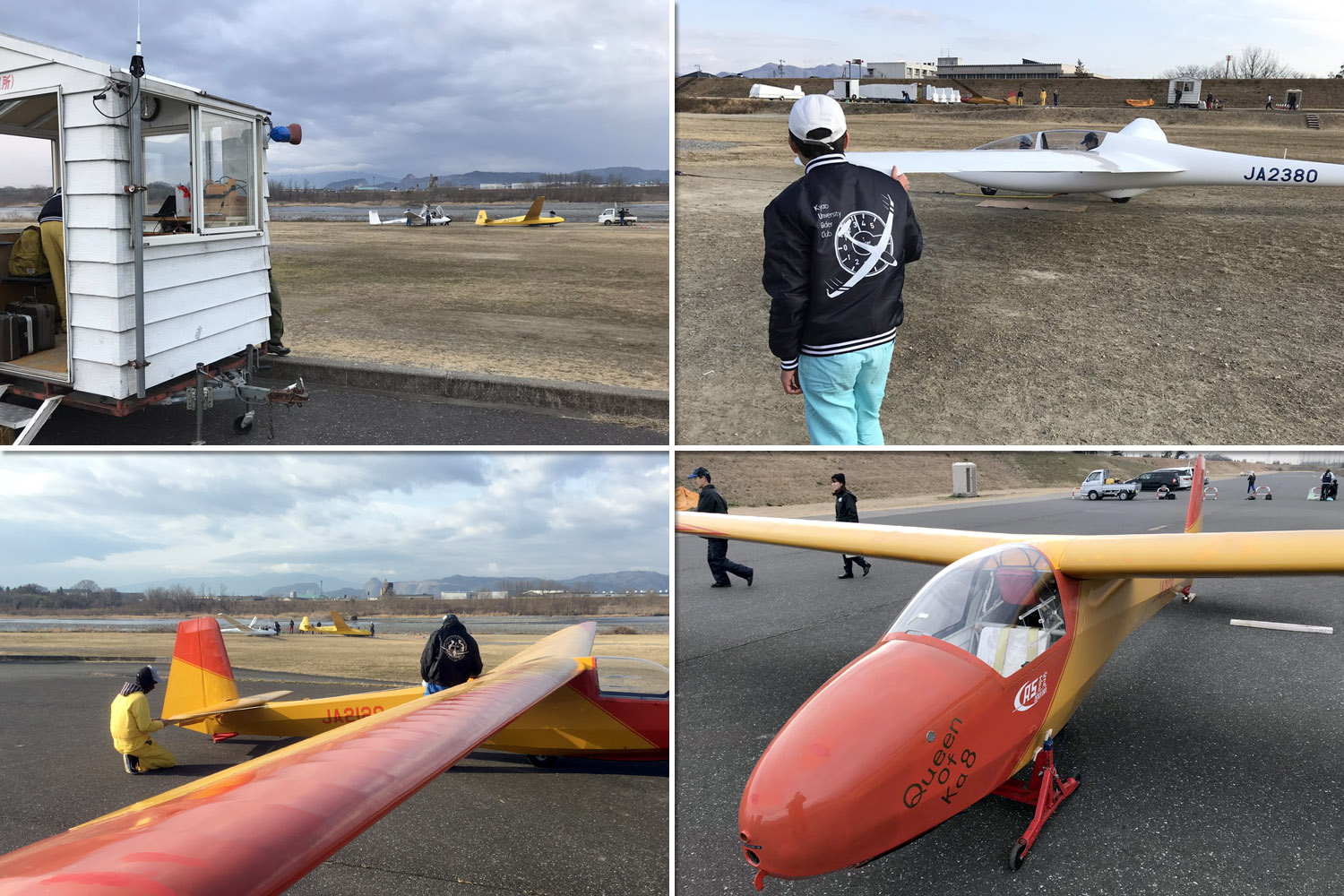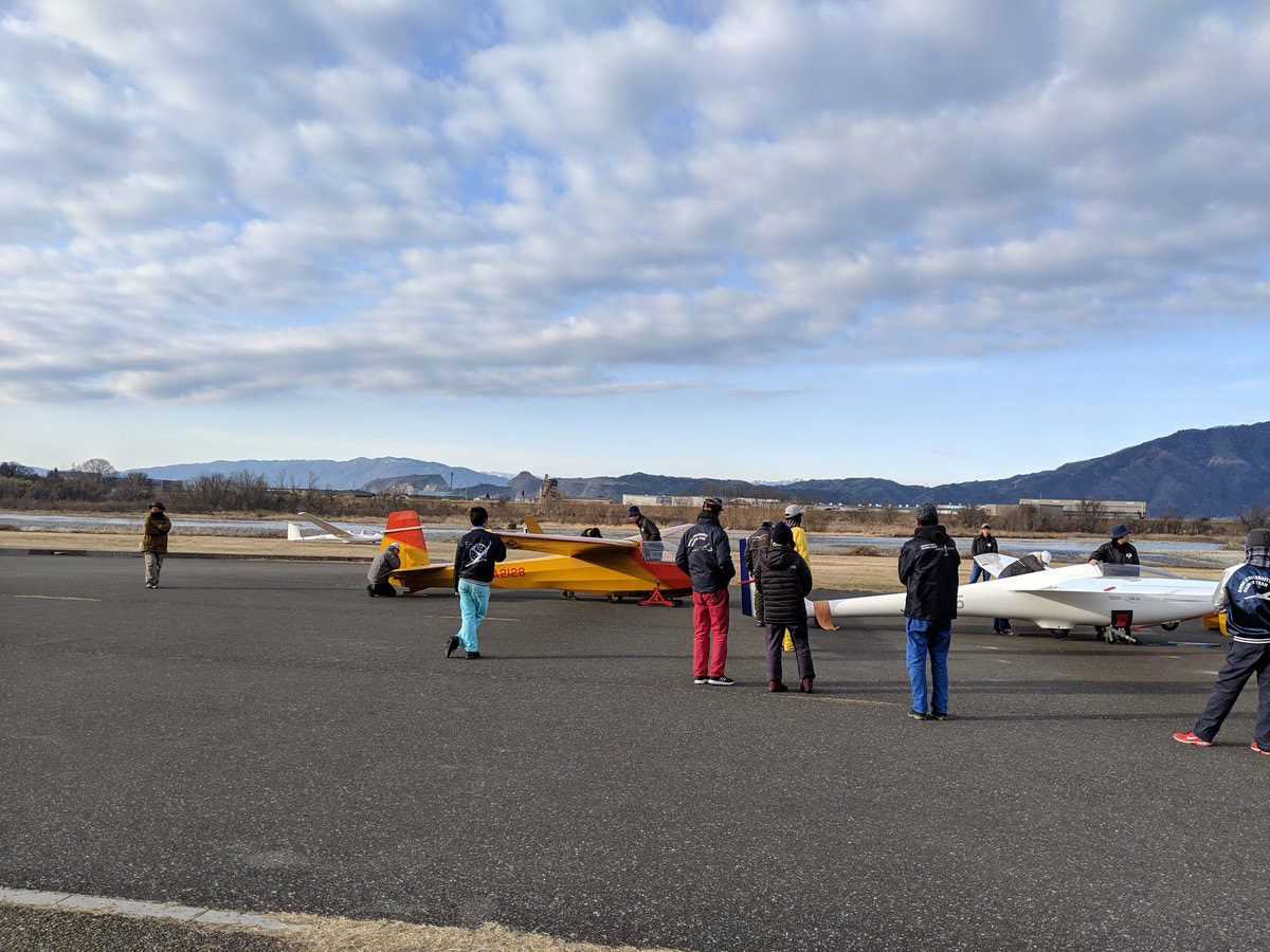 OGC と京都大学・大阪大学・神戸大学の合同運航 2 日目は予報より強めの北西風が朝から終日吹き続け、寒い一日になりました。 昨日耐空検査を終えた K8 から K13・K23 に阪大 K21 と、シュライハ―社製 4 機をラインアップ。 ・・・・ 写真は学生のツイートから転載 ・・・・