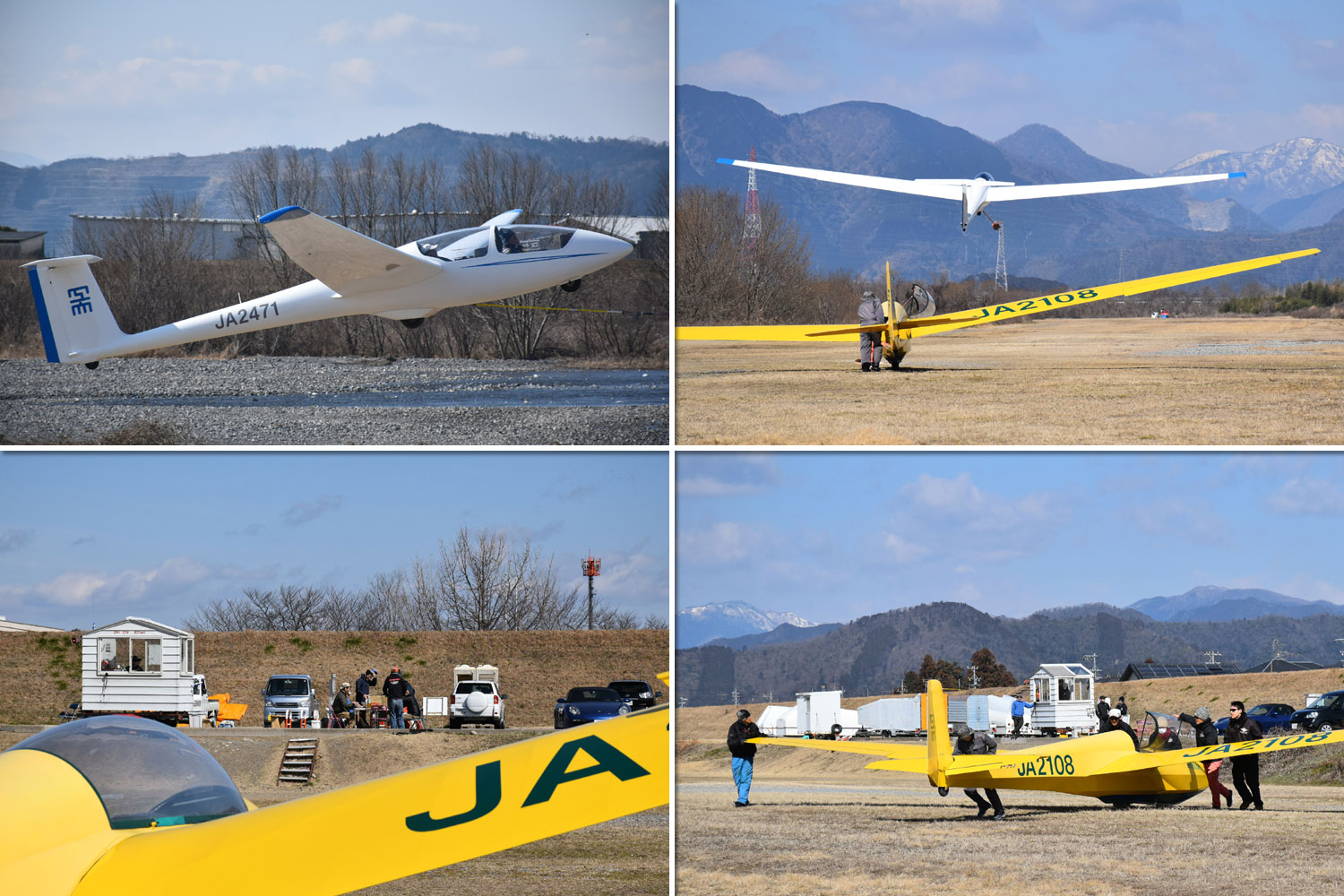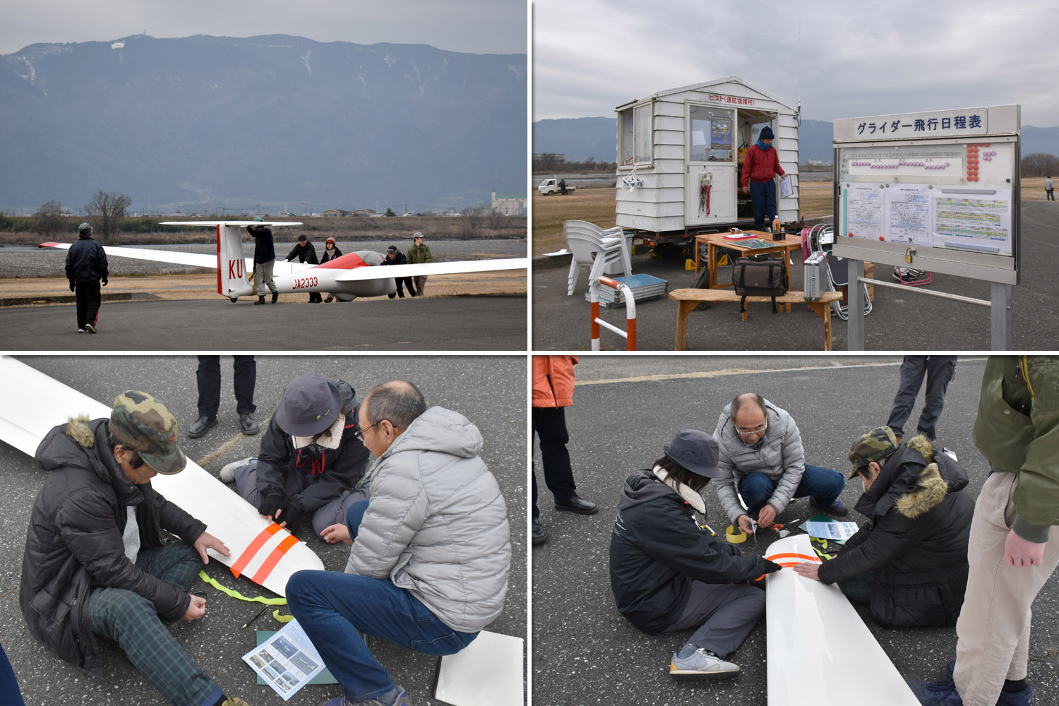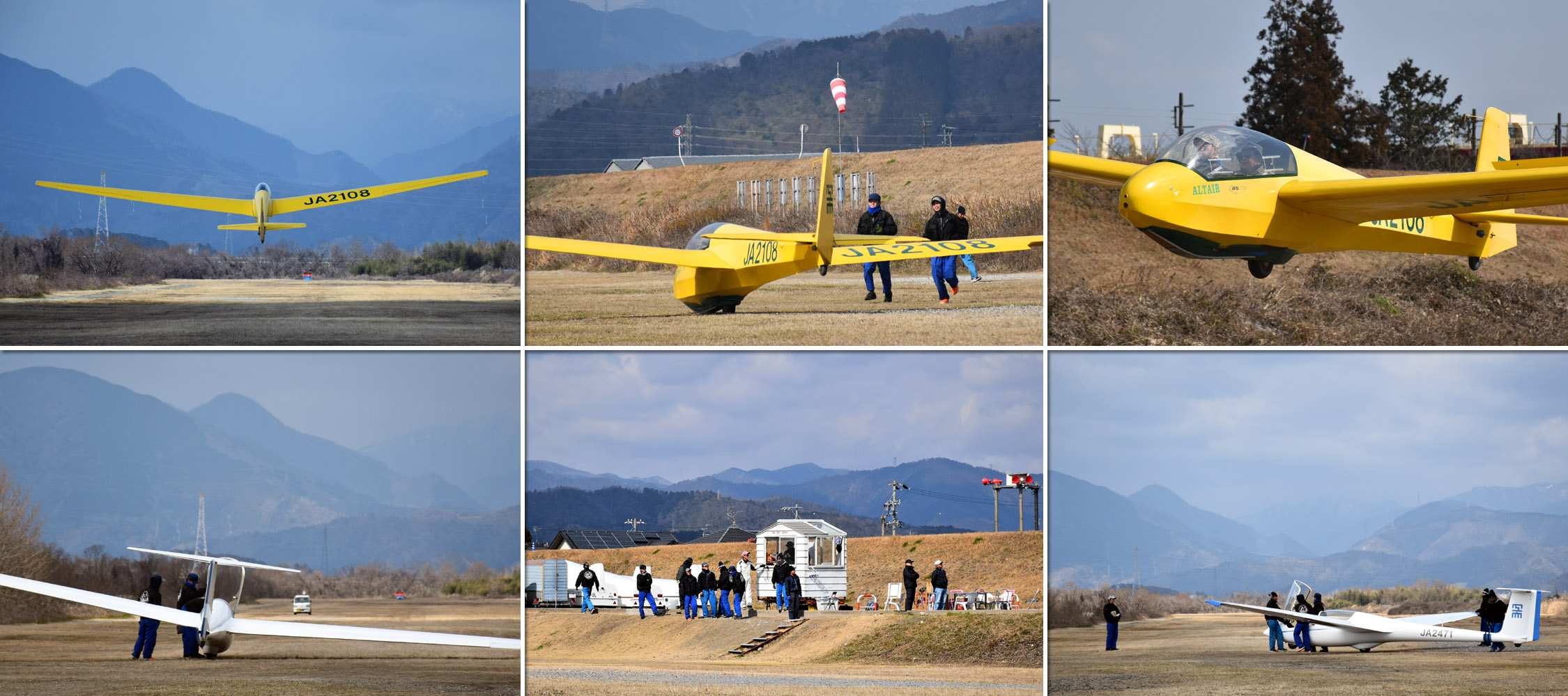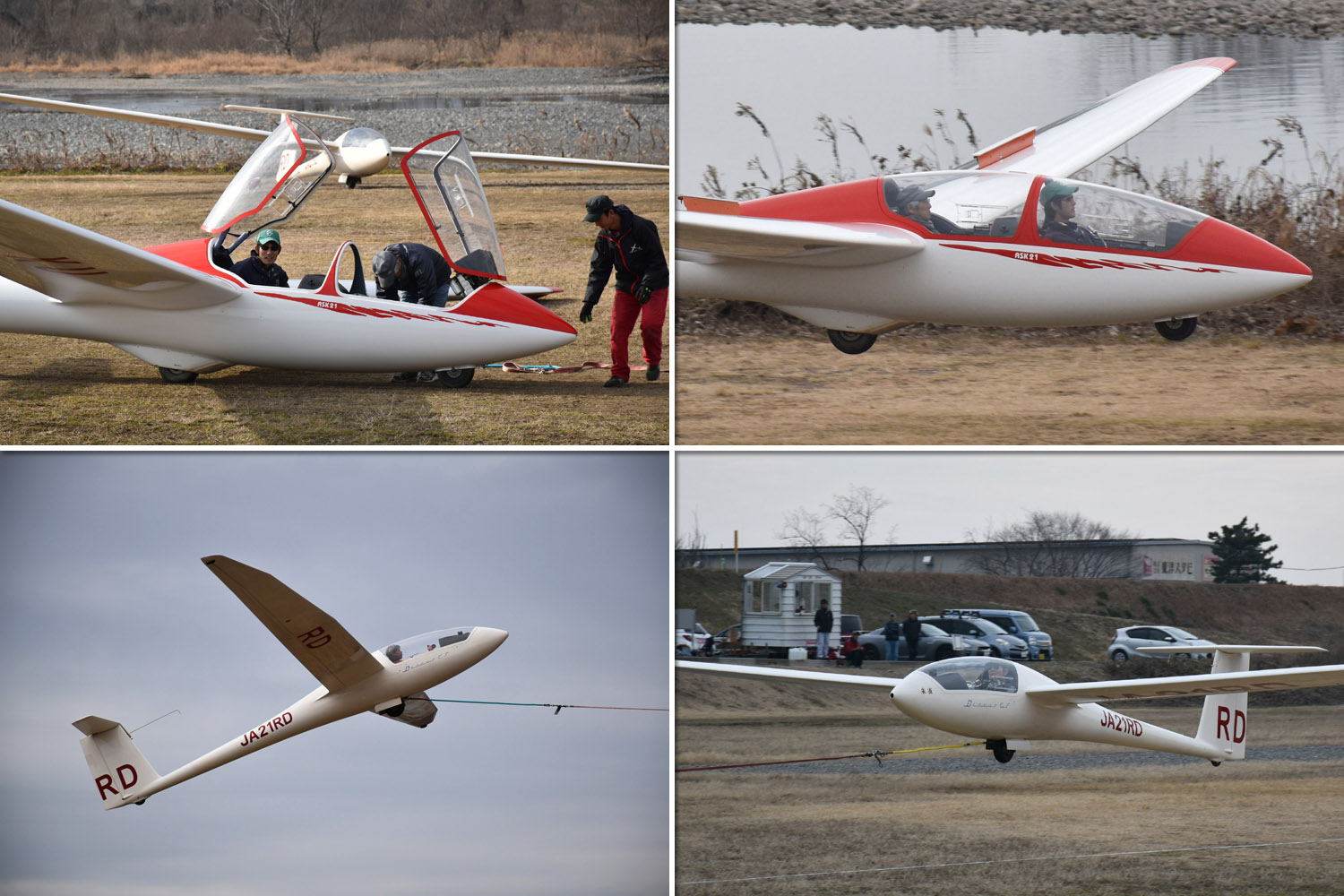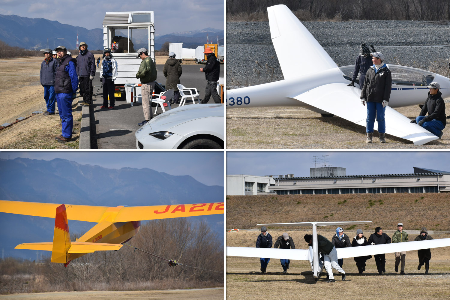 OGC と京都大学・大阪大学・神戸大学の合同運航 2 日目は予報より強めの北西風が朝から終日吹き続け、寒い一日になりました。 昨日耐空検査を終えた K8 から K13・K23 に阪大 K21 と、シュライハ―社製 4 機をラインアップ。 ・・・・ 写真は学生のツイートから転載 ・・・・