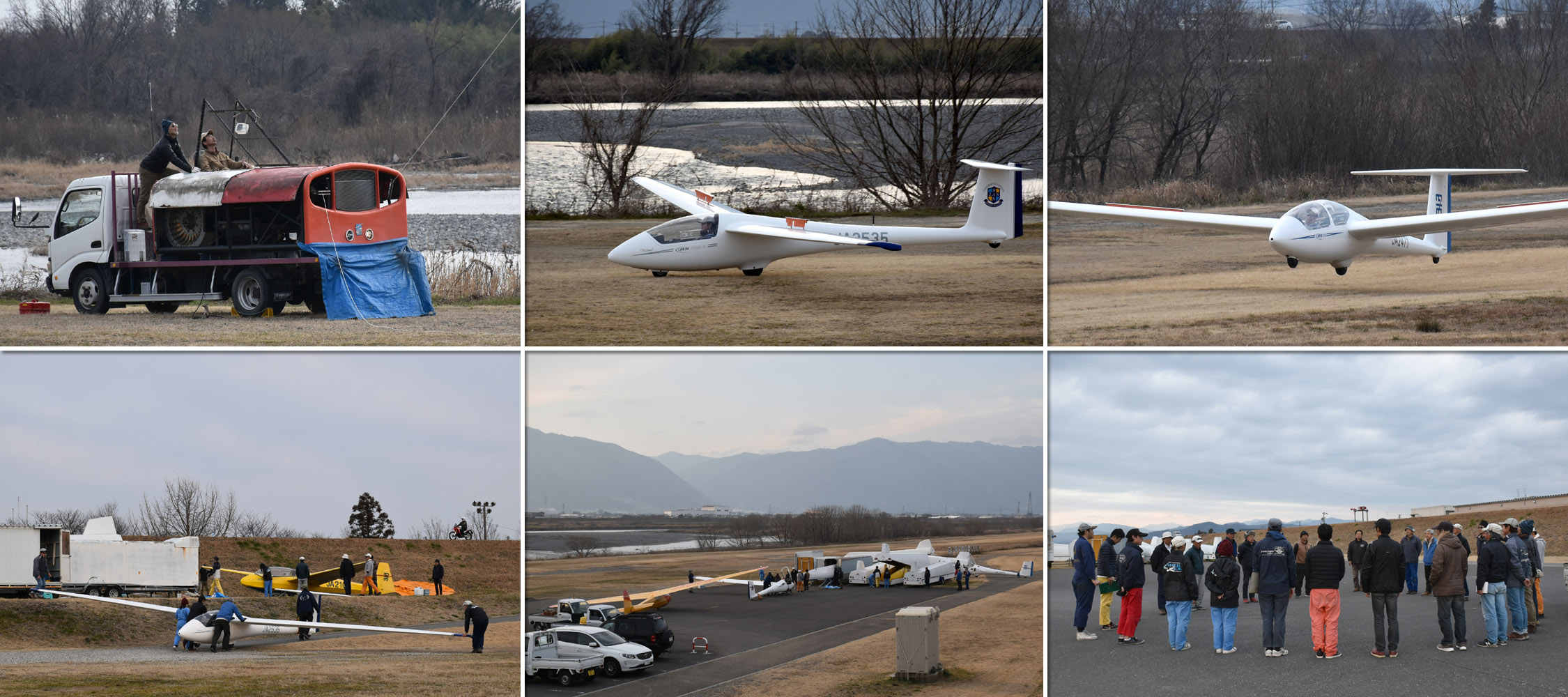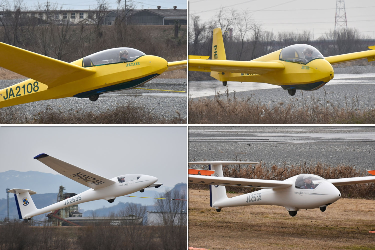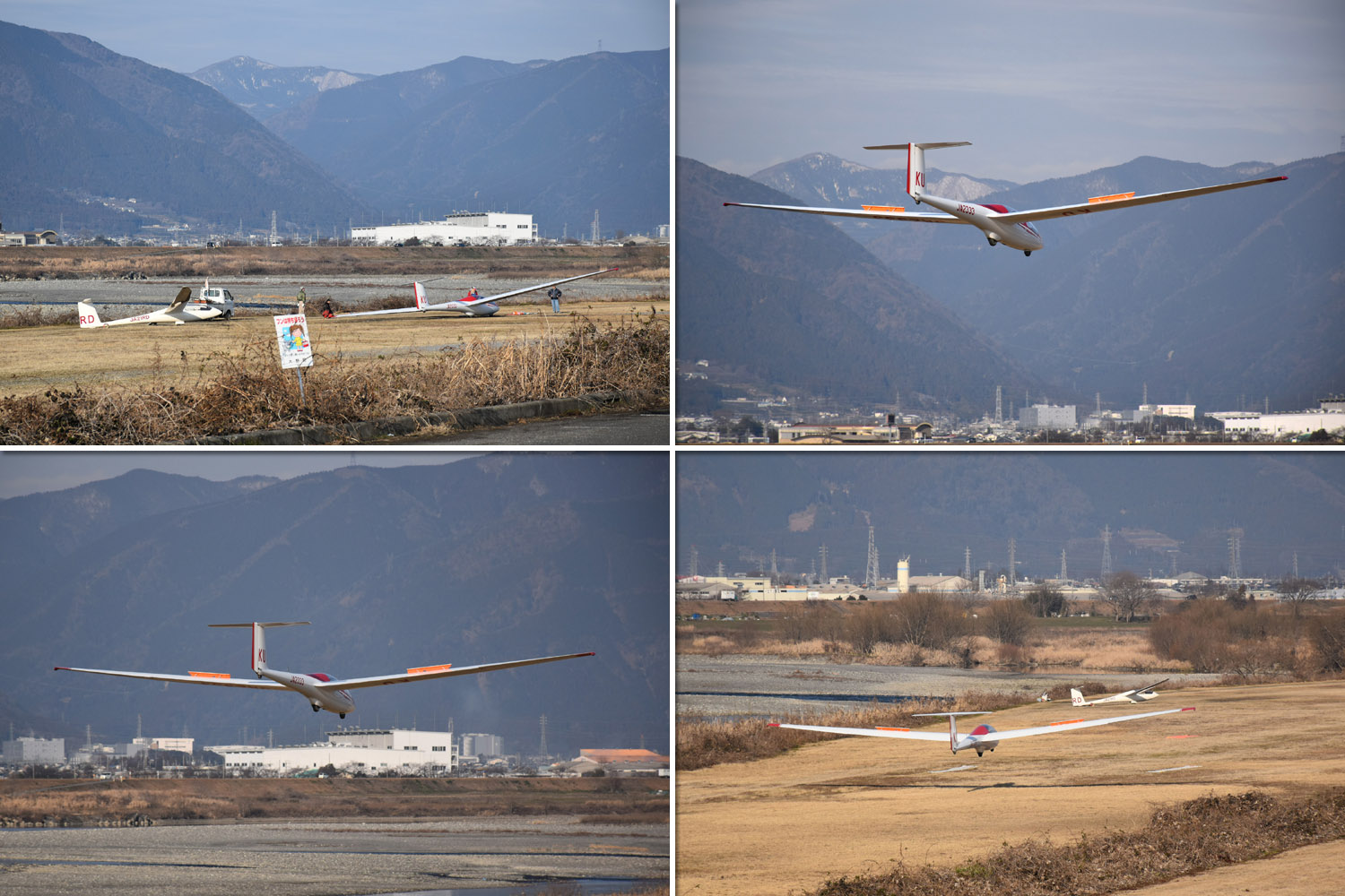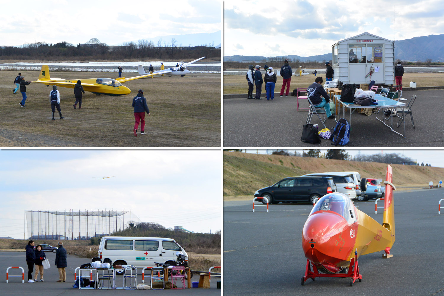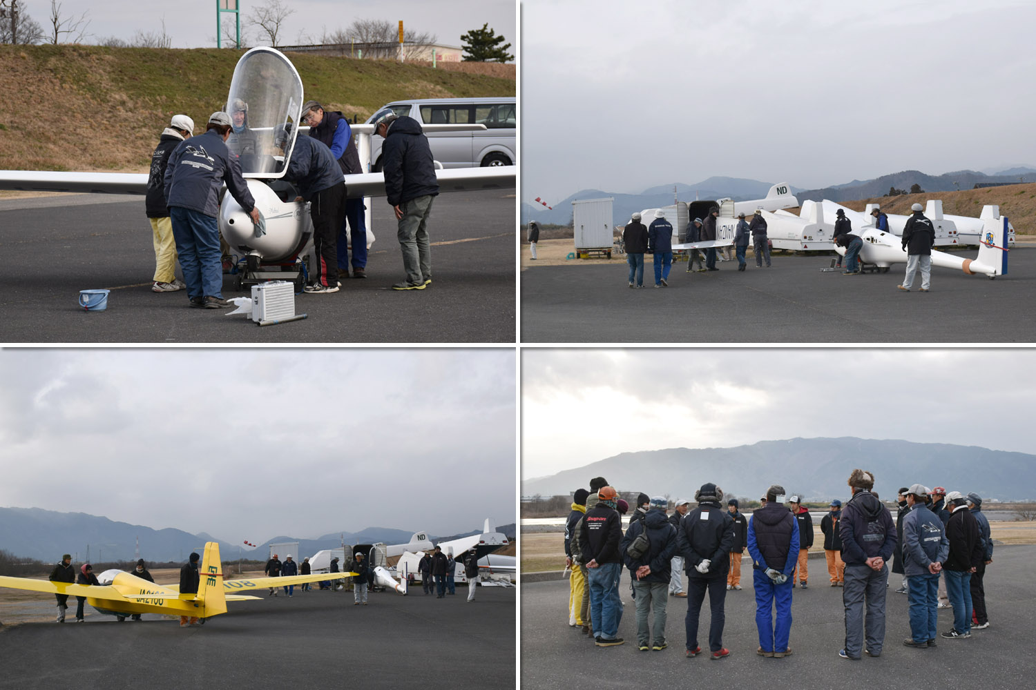 OGC と京都大学・大阪大学・神戸大学の合同運航 2 日目は予報より強めの北西風が朝から終日吹き続け、寒い一日になりました。 昨日耐空検査を終えた K8 から K13・K23 に阪大 K21 と、シュライハ―社製 4 機をラインアップ。 ・・・・ 写真は学生のツイートから転載 ・・・・