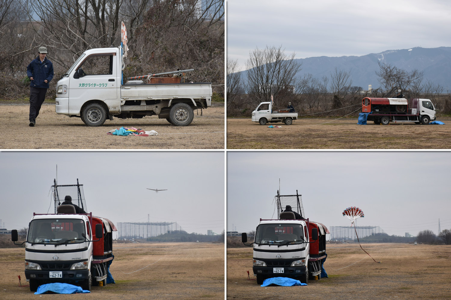OGC と関西学院大学の合同運航最終日は ASK21 と ASK13 の 2 機体制で 13 時頃には訓練終了して撤収作業に入ることしました。 曇り空ながら静穏の中、8:14 から運航開始、10 名の人員の中、学生もテキパキを動き、30 発を飛ばし、13:24 に最終発航としました。