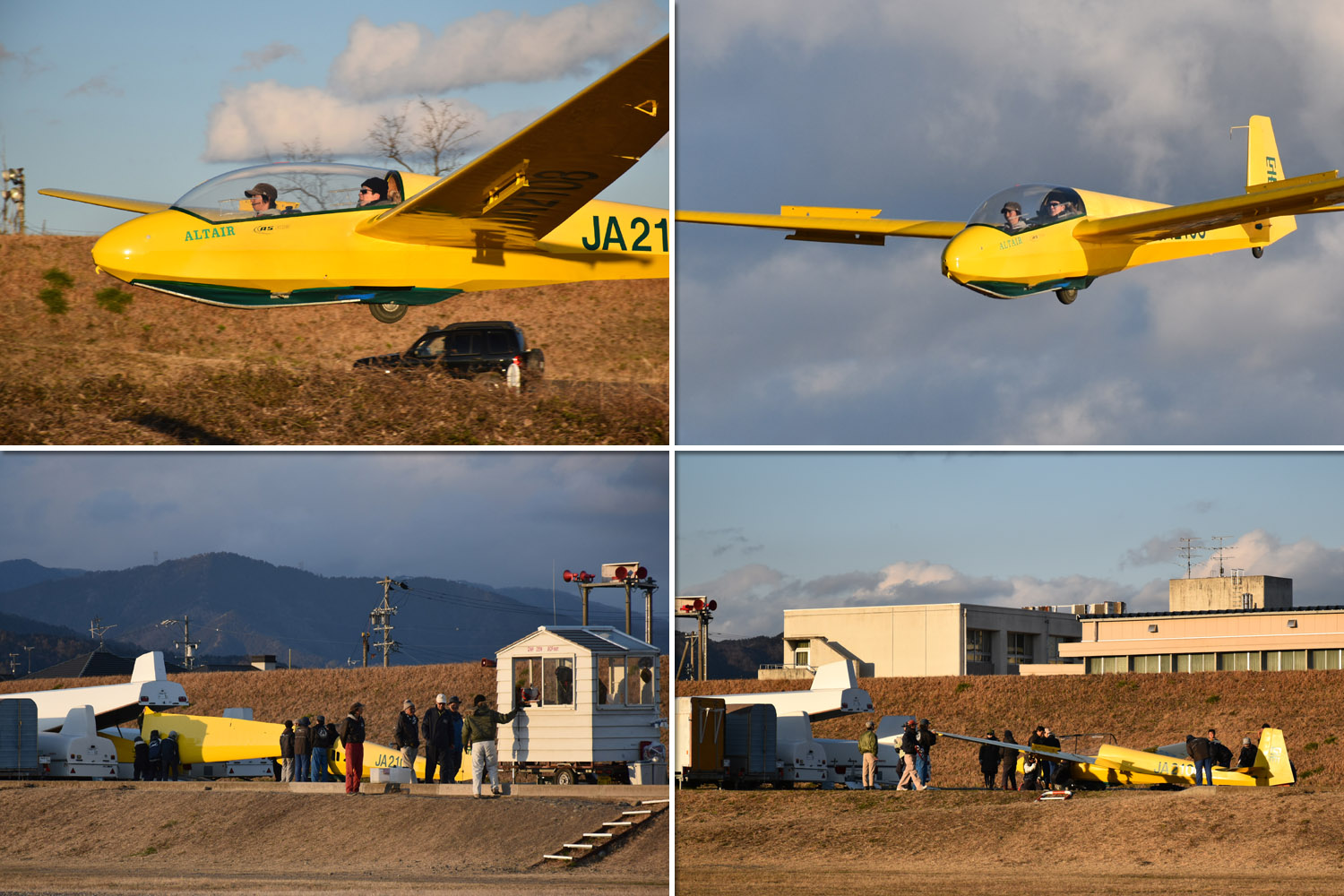地上で機体を分解格納すると、次の機に着陸して分解格納 ・・・・ の繰り返しで最終着陸は、1 時間 5 分飛行の ASK21 (阪大21)、総発航数は 44 発でした。
