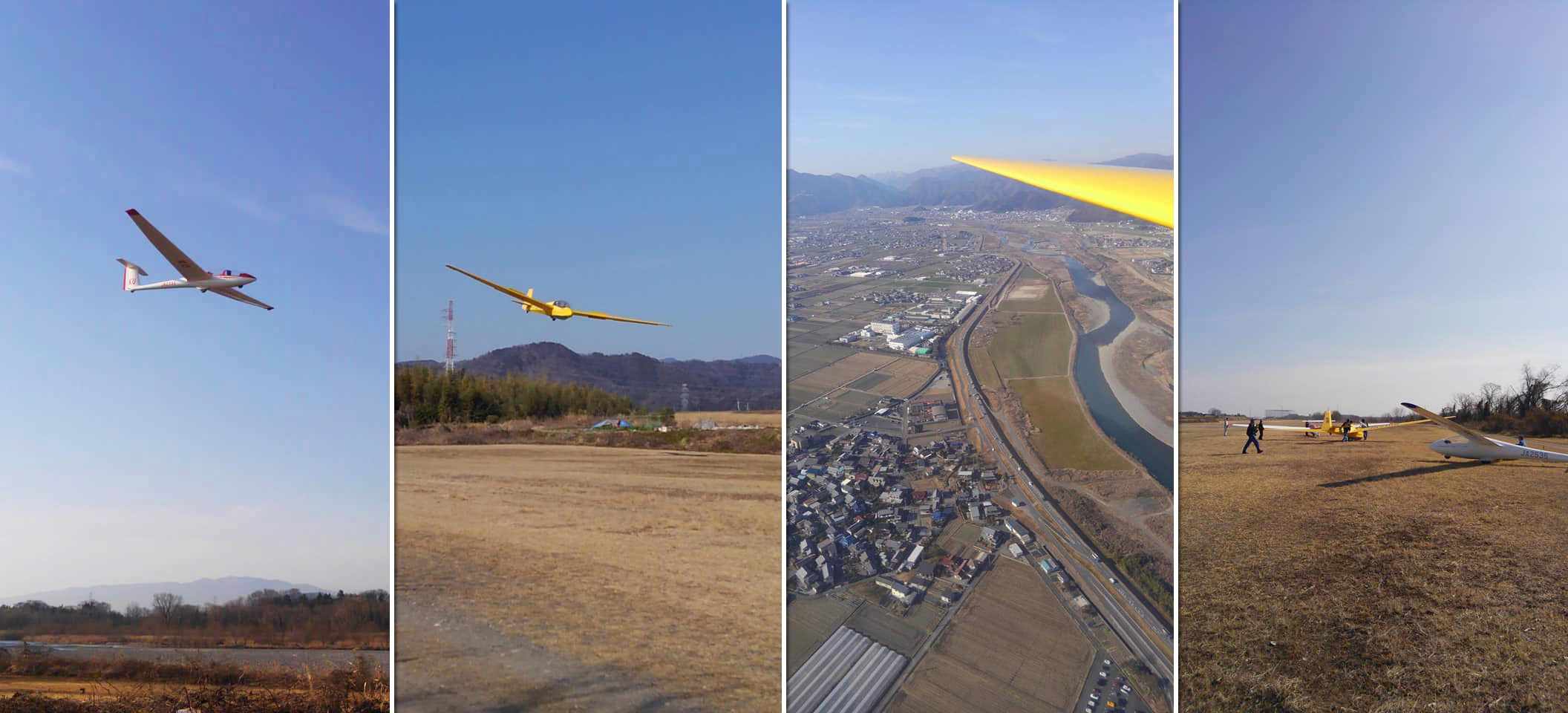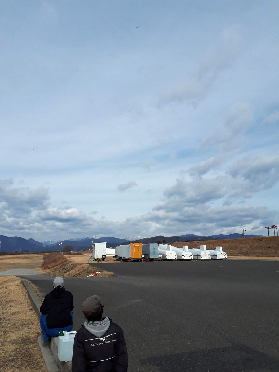 午後は 13:30 過ぎに風が若干弱まったのを確認し、松村教官が大工大・辻中君とチェックフライトに出陣して 58 分後に着陸。 ここからがビッグデイのスタートとなり、続く 3 フライトが全て 60 分の帰れコールでの滞空となり、続く 2 フライトも 20 分超えとなりました。