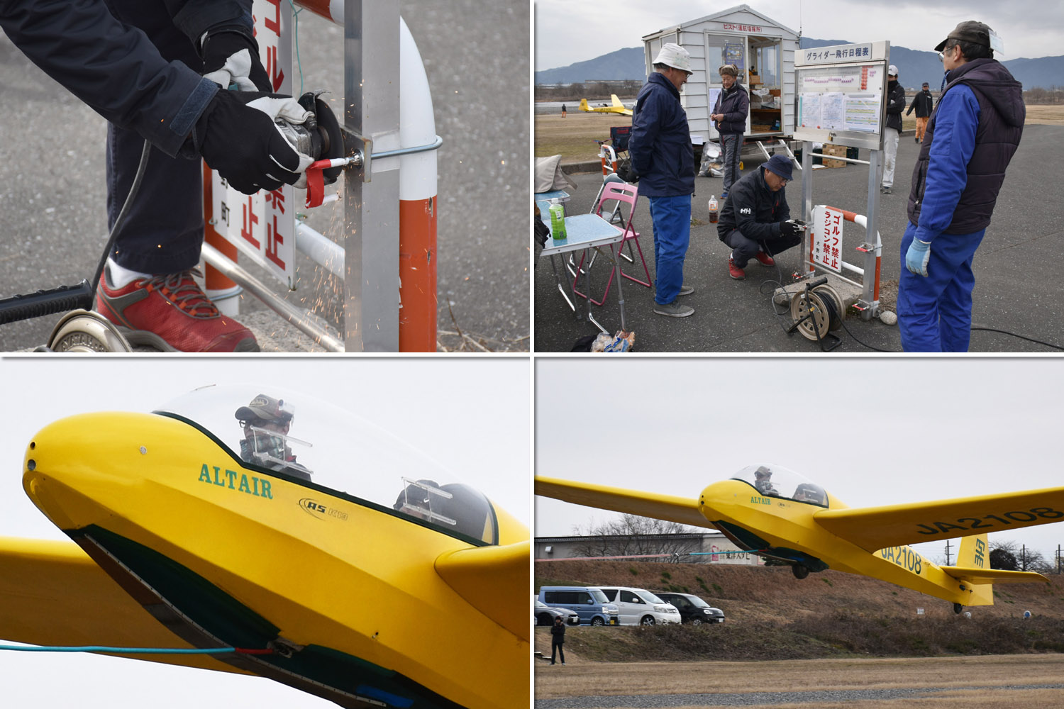 大阪府立大学・大阪工業大学合宿+OGC の運航初日は、学生 18 名と OGC 会員たち 4 名が参加。 複座機 2 機、ASK21 (JA2333)、ASK13 (JA2108)で飛行開始 +大工大の ASK21 (JA2471) の耐空検査(合格)、ASK23 (JA2535) も組み立てて一時 4 機の豪華さ。