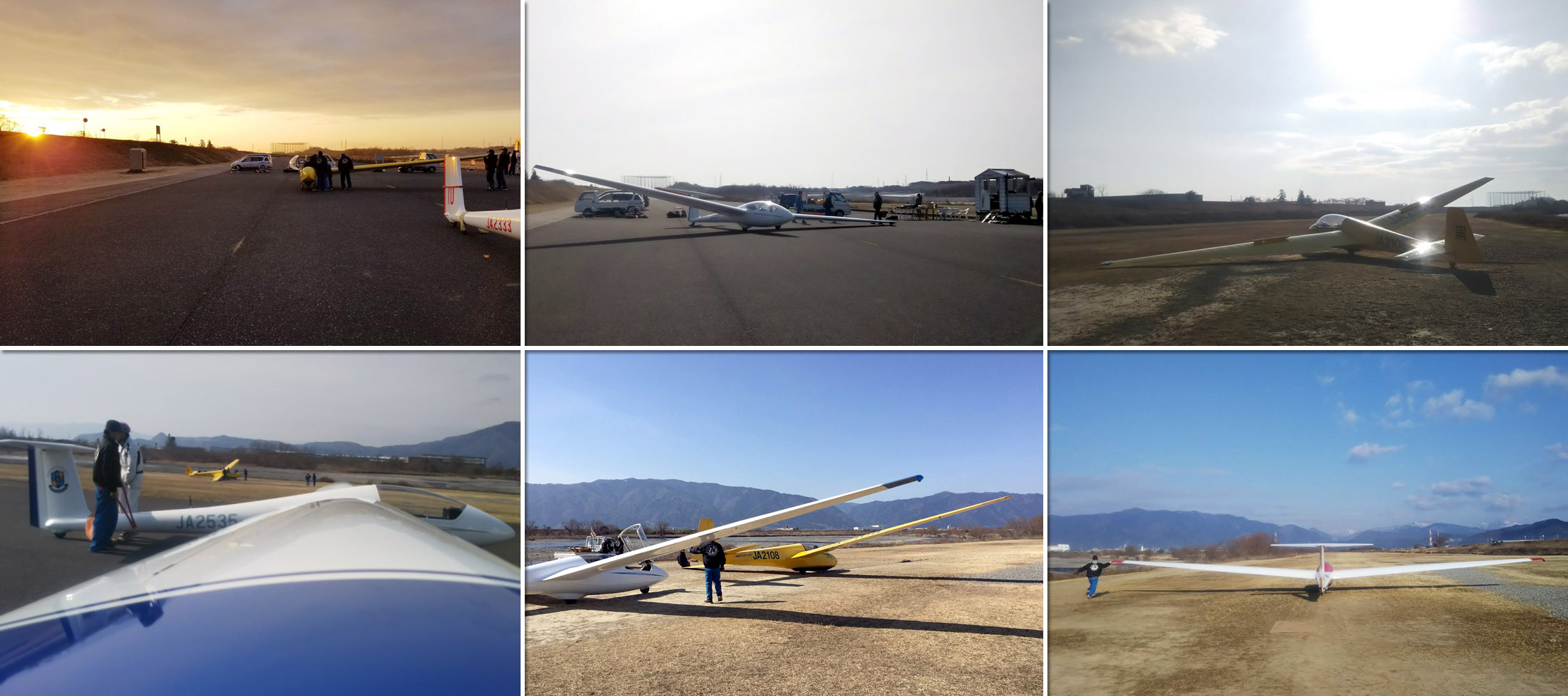 使用機体は、昨日より 1 機増やし複座機 3 機、ASK21 (京大2333)・(阪大2380)・ASK13 (2108)、単座機は ASK23 (2535)、K8b (2128) の 5 機を準備。