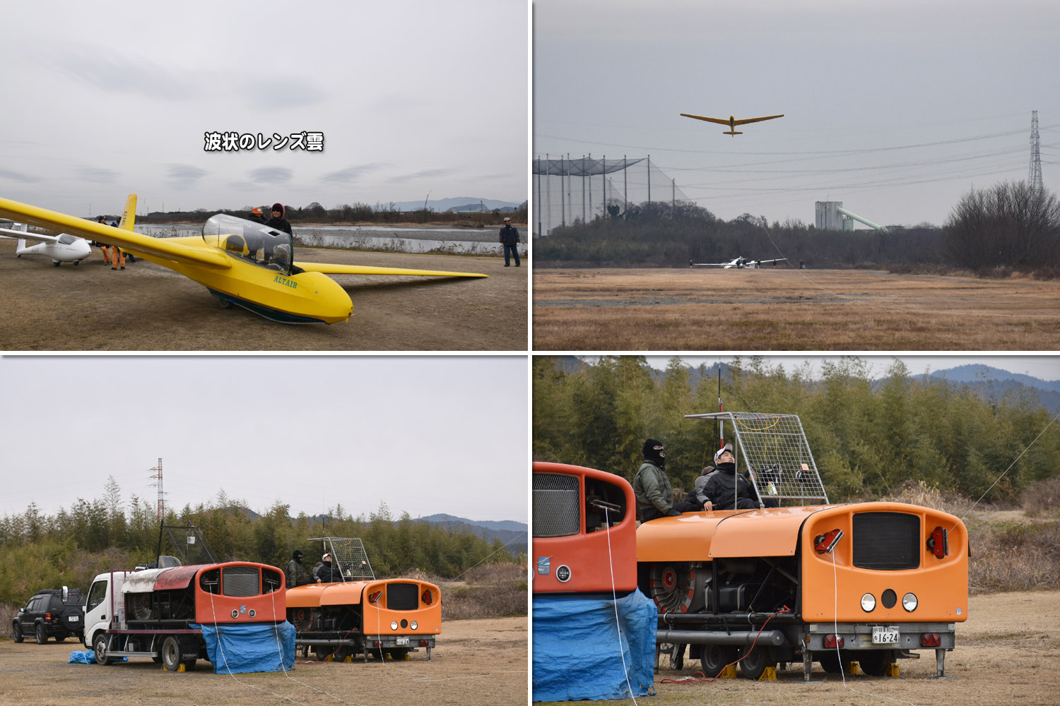 複座は JA2333 、単座は立命 Discus の 2 機体制での運航で総回数 30 発 まったくの静穏で基礎練習日和のバッタ状態でした。 成果としては、谷一会員 (京大OB) の特定操縦技能審査が無事に終わった事でした。