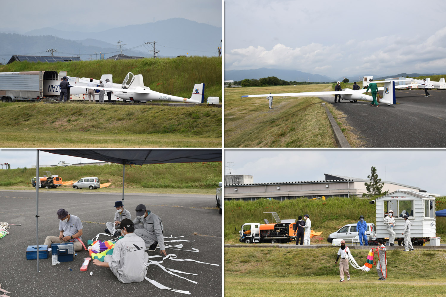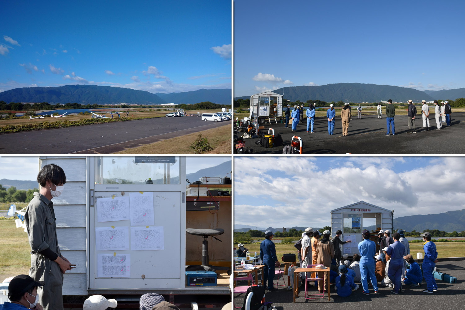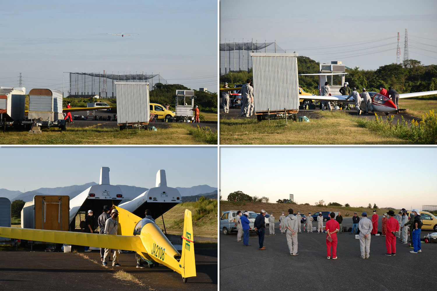OGC 11名と学生 23名の合同運航、名古屋大学をはじめとする学生たちは大学から宿泊許可がおりていないため、7 時半過ぎに大野滑空場に集合。
