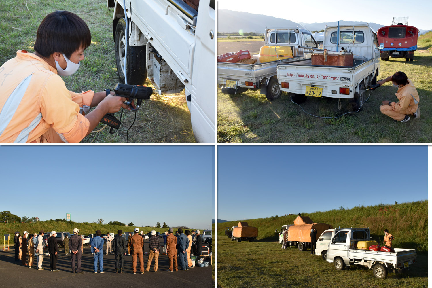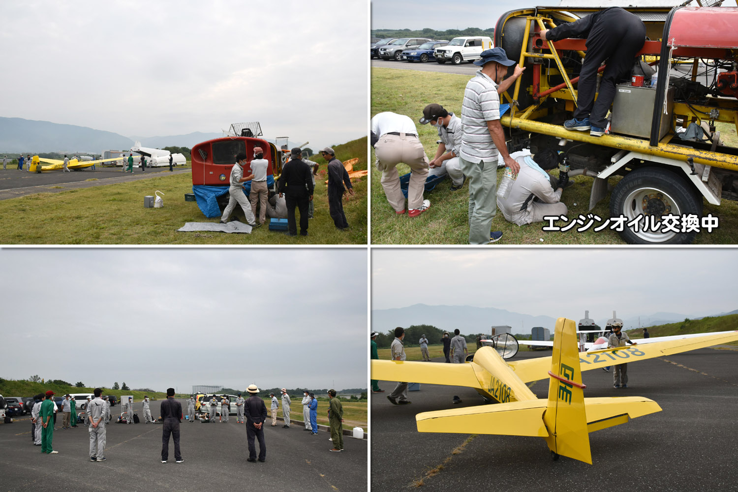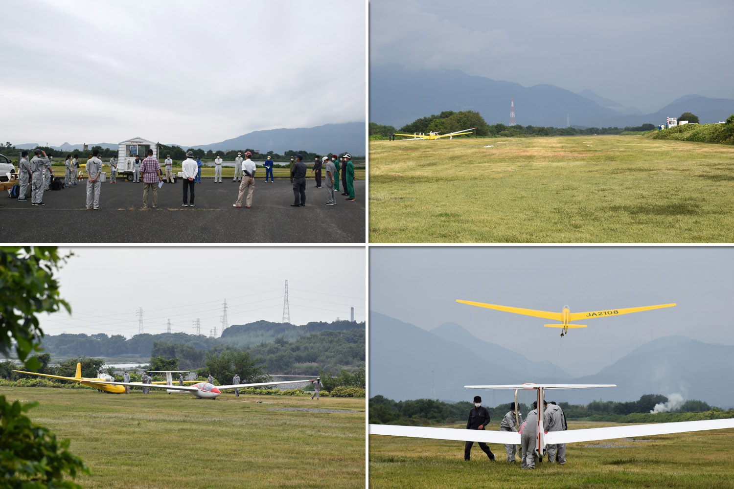 OGC 11名と学生 23名の合同運航、名古屋大学をはじめとする学生たちは大学から宿泊許可がおりていないため、7 時半過ぎに大野滑空場に集合。