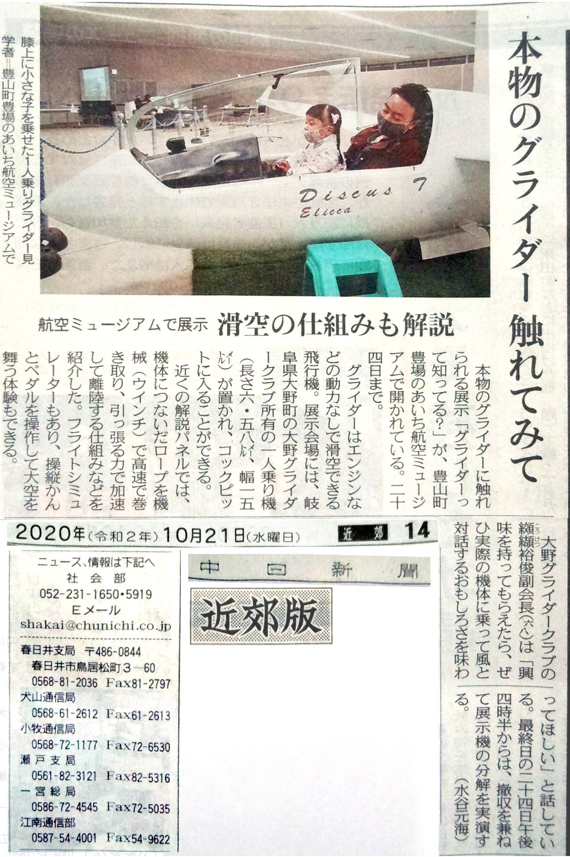 中日新聞の近郊版で紹介されました。 2020年10月21日