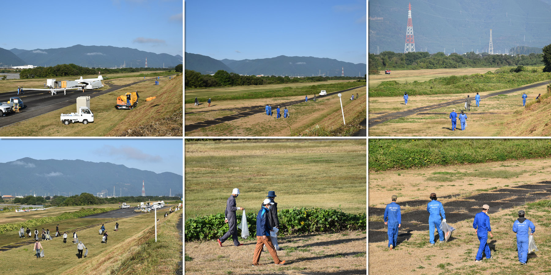 飛行の準備をしながら、恒例の揖斐川河川敷の 河川一斉清掃・クリーン大作戦 に参加しました。