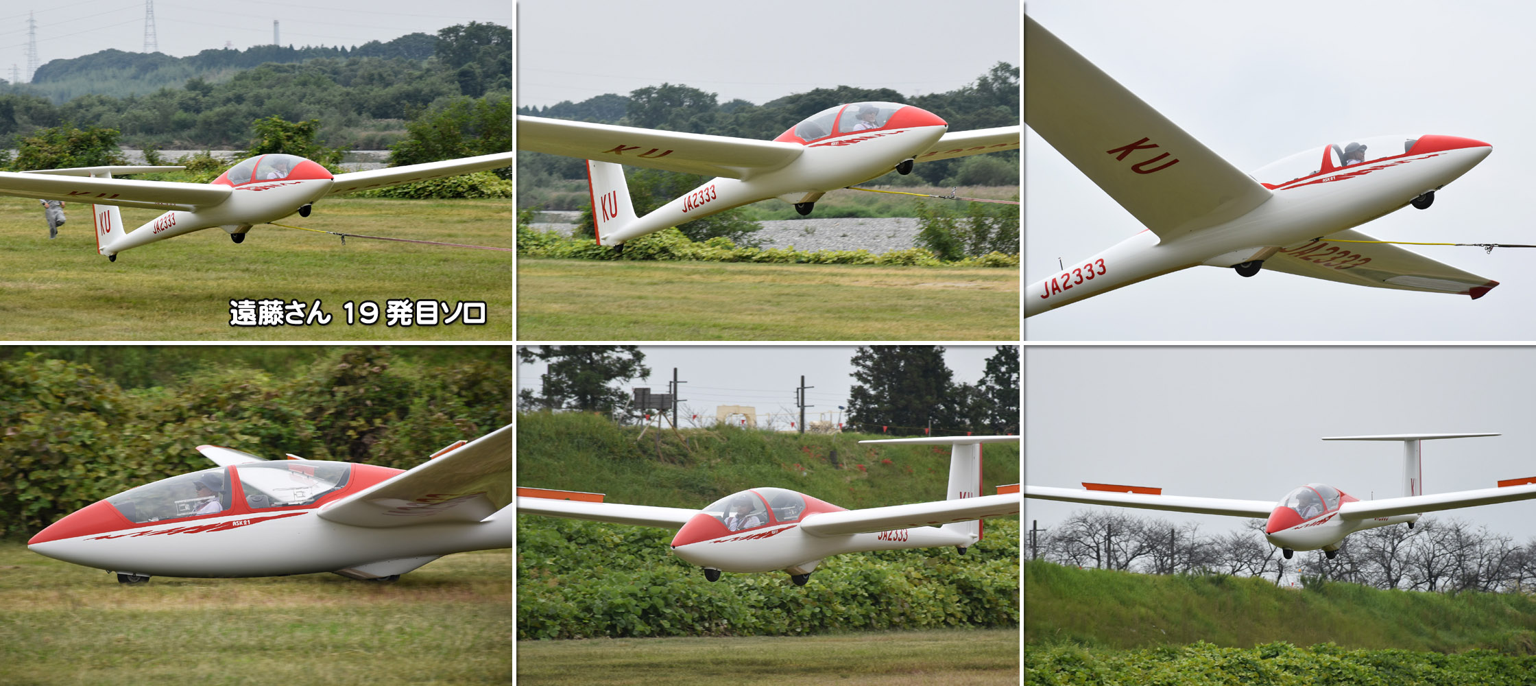 5年前に 体験搭乗 をしてからグライダーを始めた遠藤会員が 19発目のソロ達成