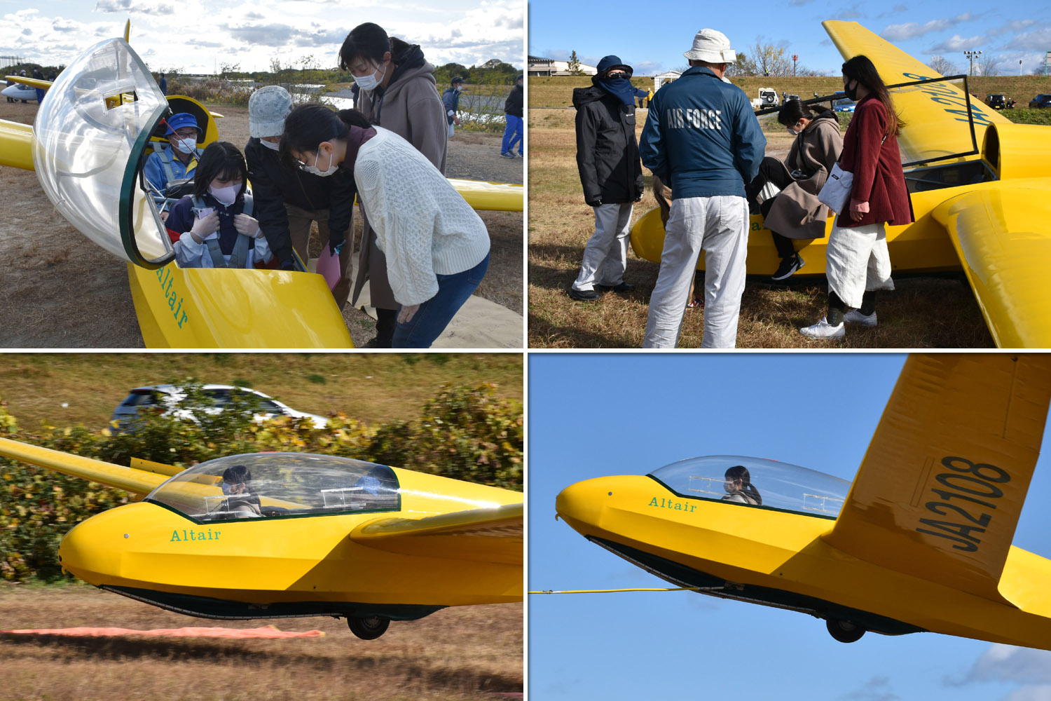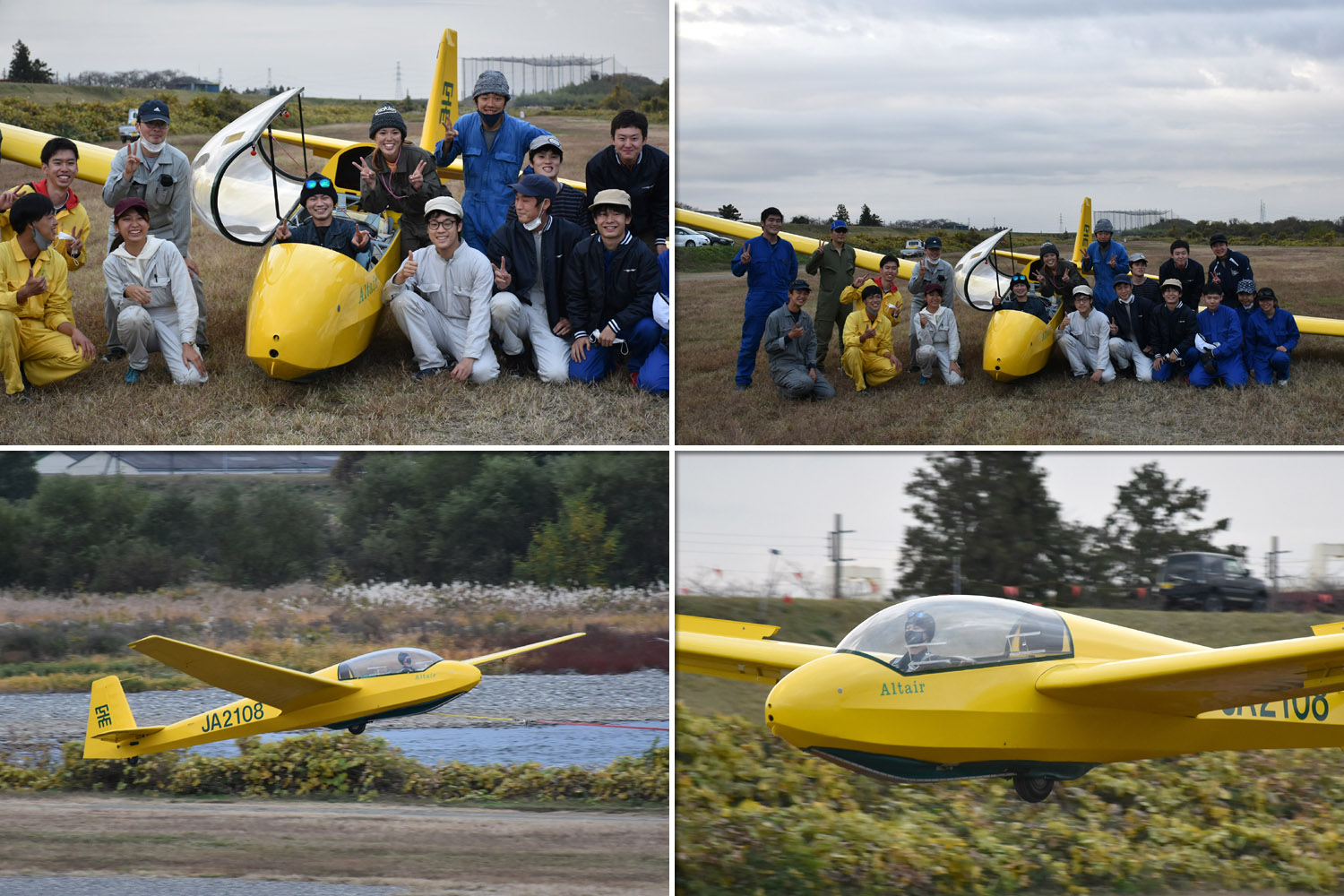今日は、一日中雲一つない小春日和のなか、OGC 13名+名古屋工業大、名古屋大、南山大、岐阜大、関西大、大阪工業大の総勢 30数名での参加により、JA2108、JA2333 の 2機体制での運航でした。 (JA2535 は耐空検査前の整備作業中で、石戸整備士が担当)