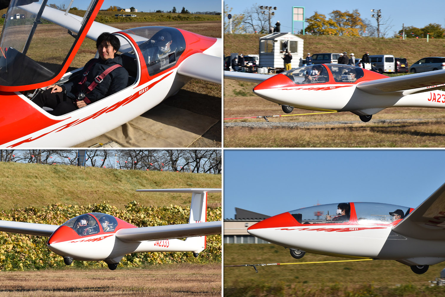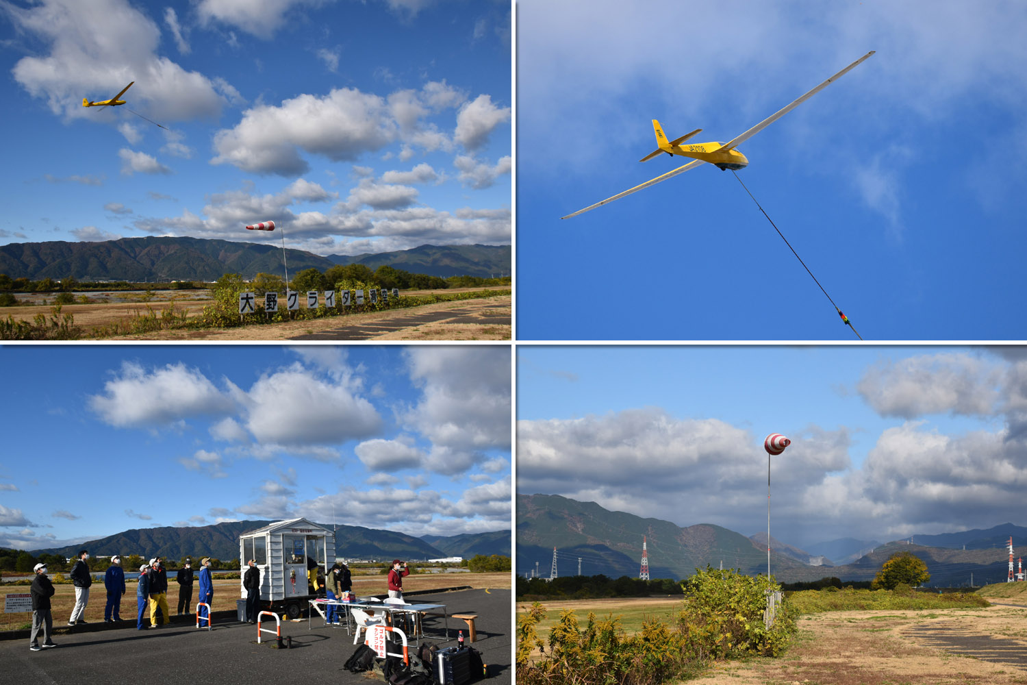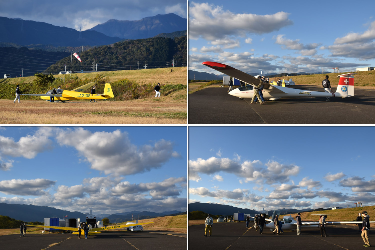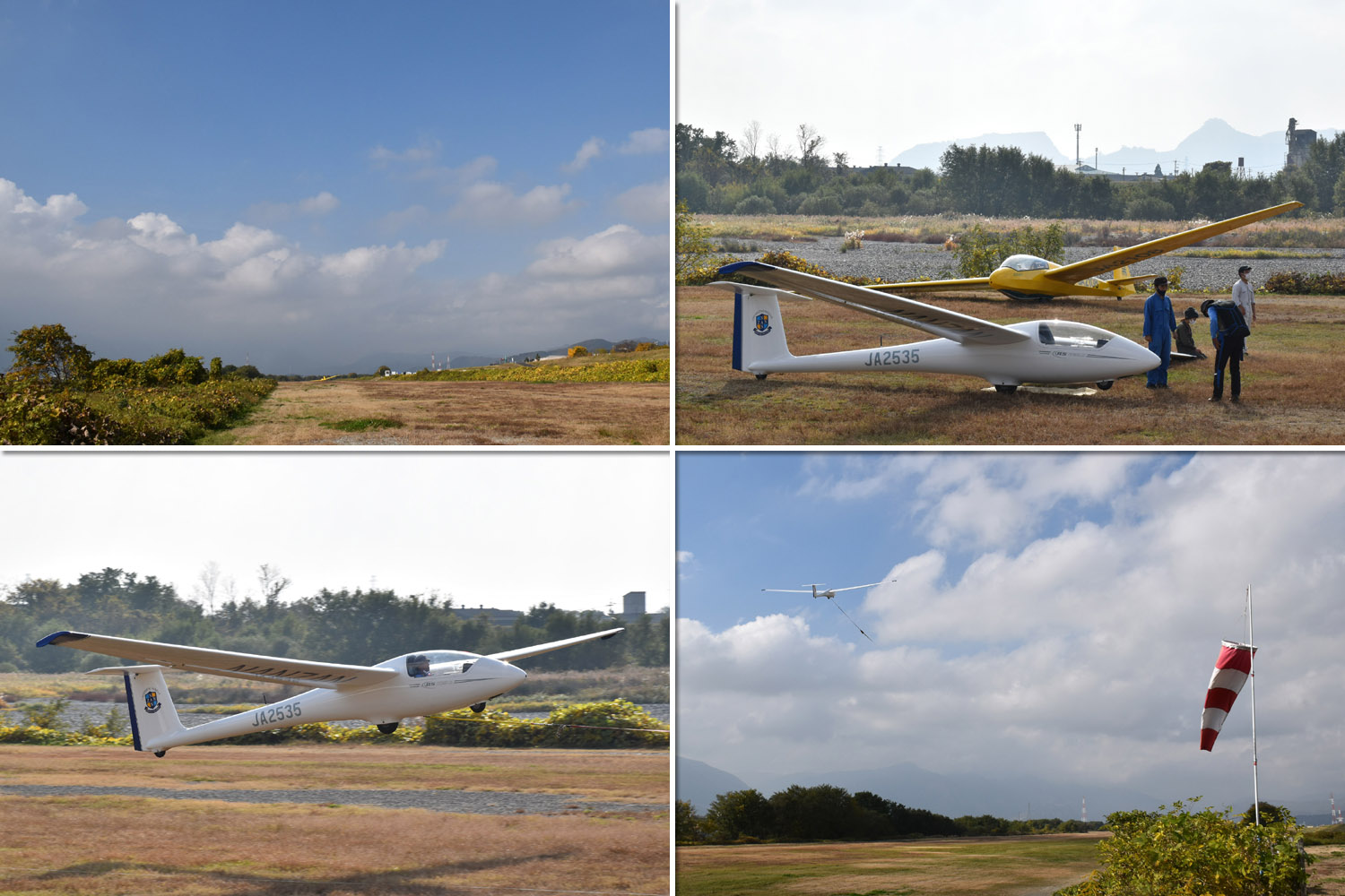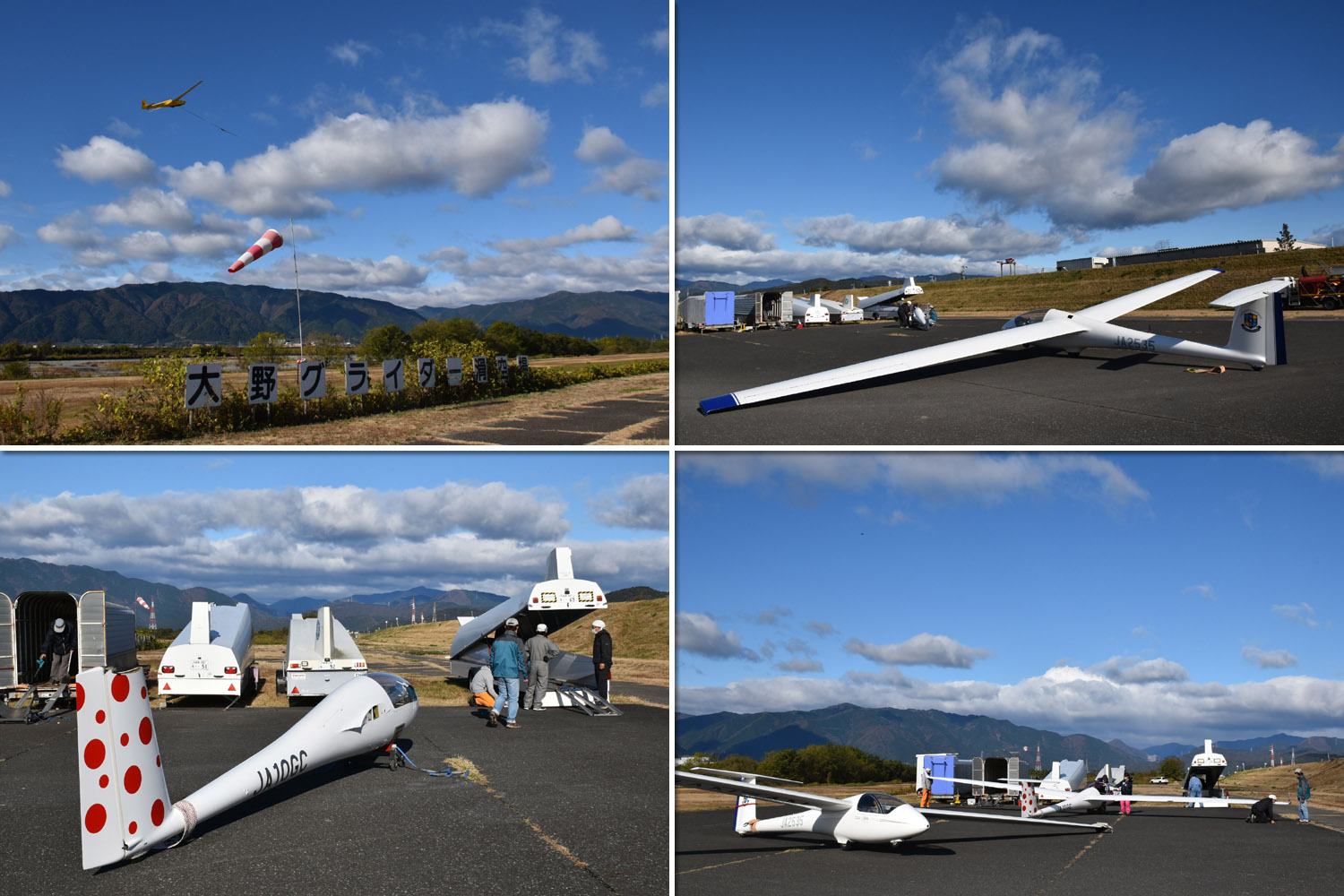 大野はちょうどいい正対風 (段々と強くなりましたが) の中、日差しも快く練習日和となりました。 複座は JA2108 と JA30GC、単座は JA2535 と JA10GC と揃えて条件が良くなるのを待ちます。