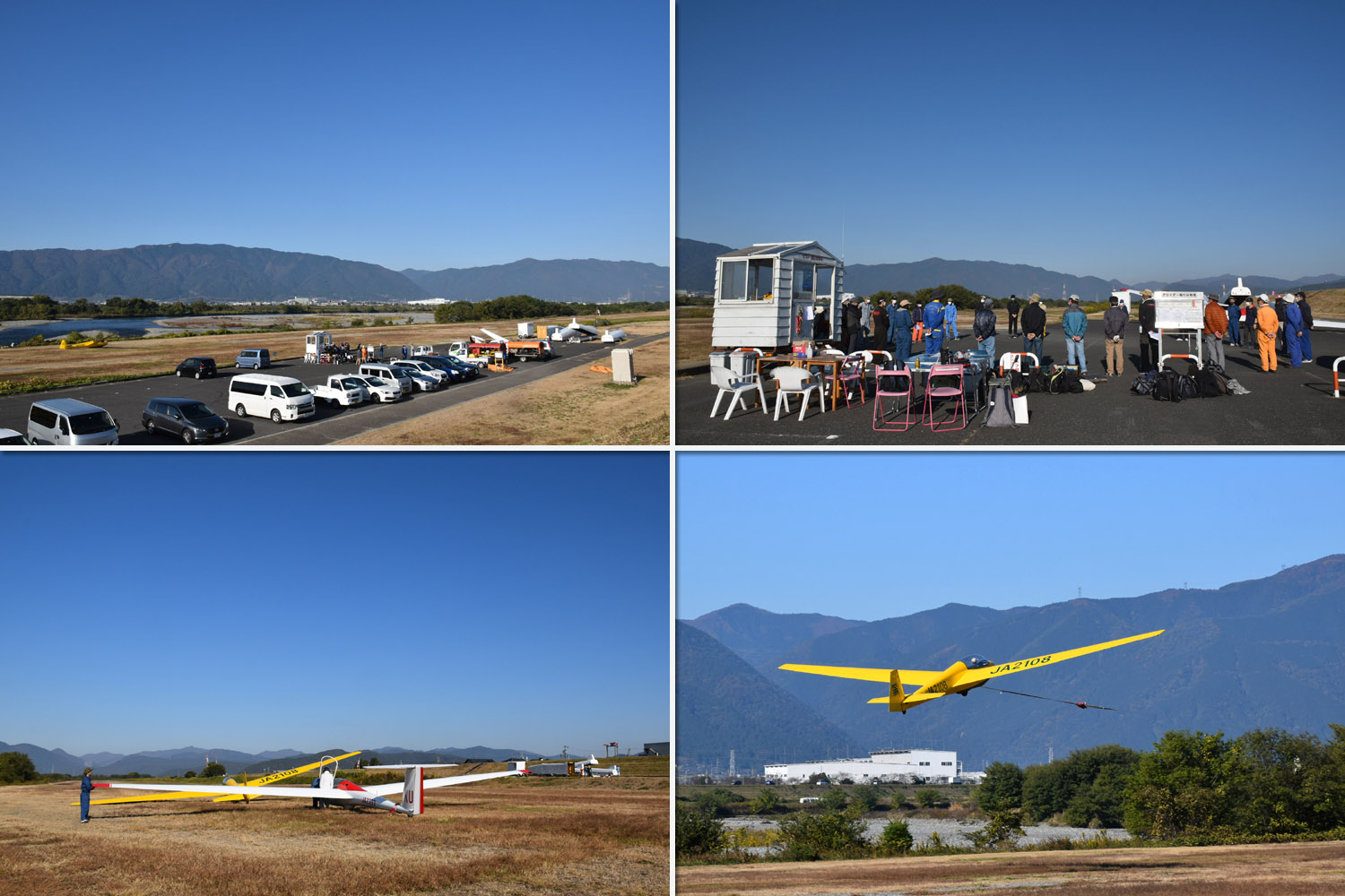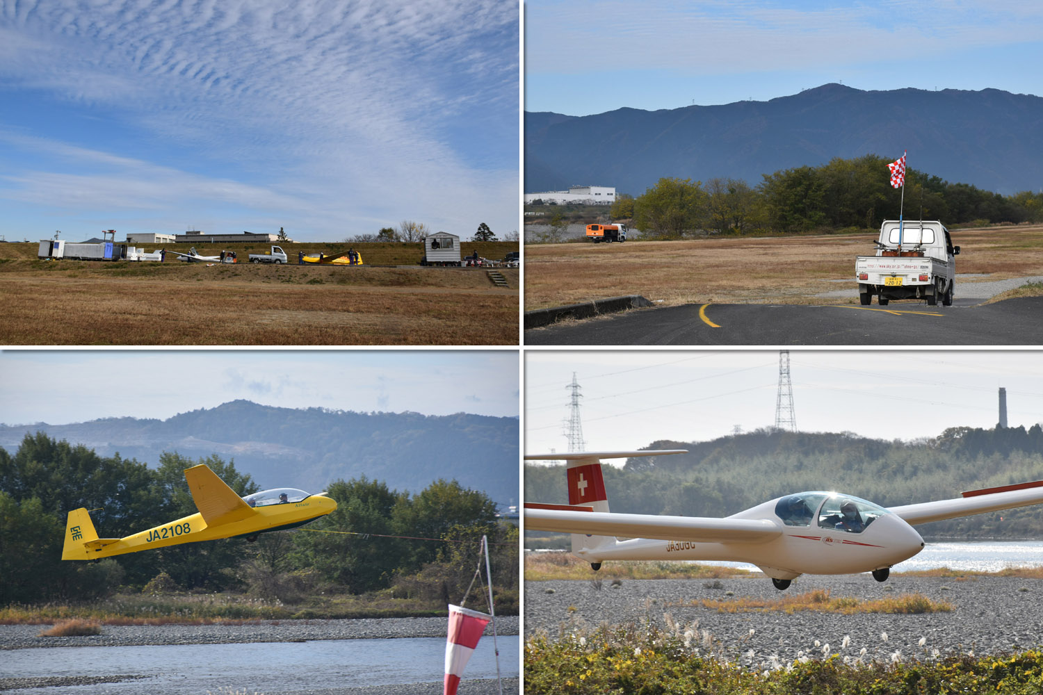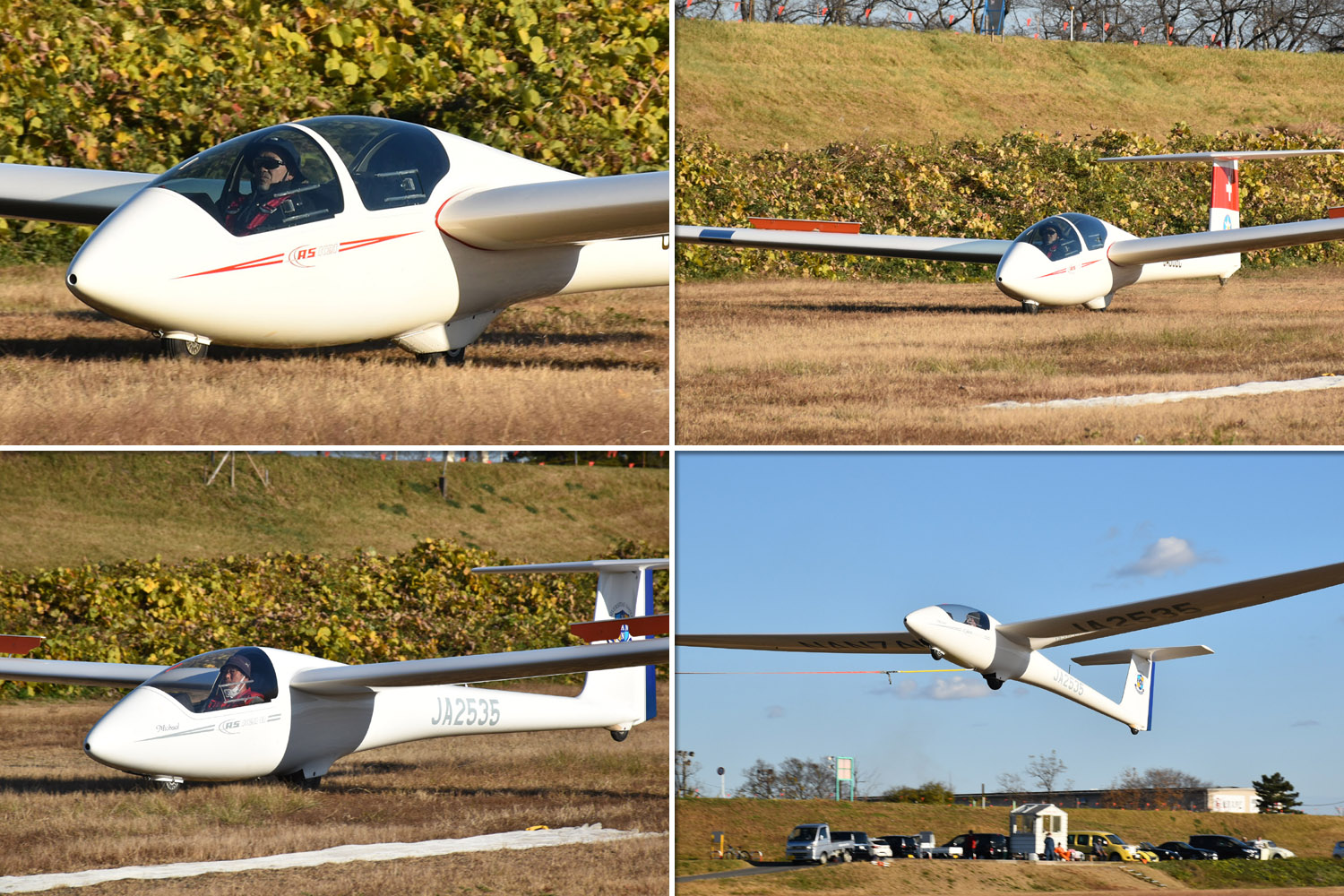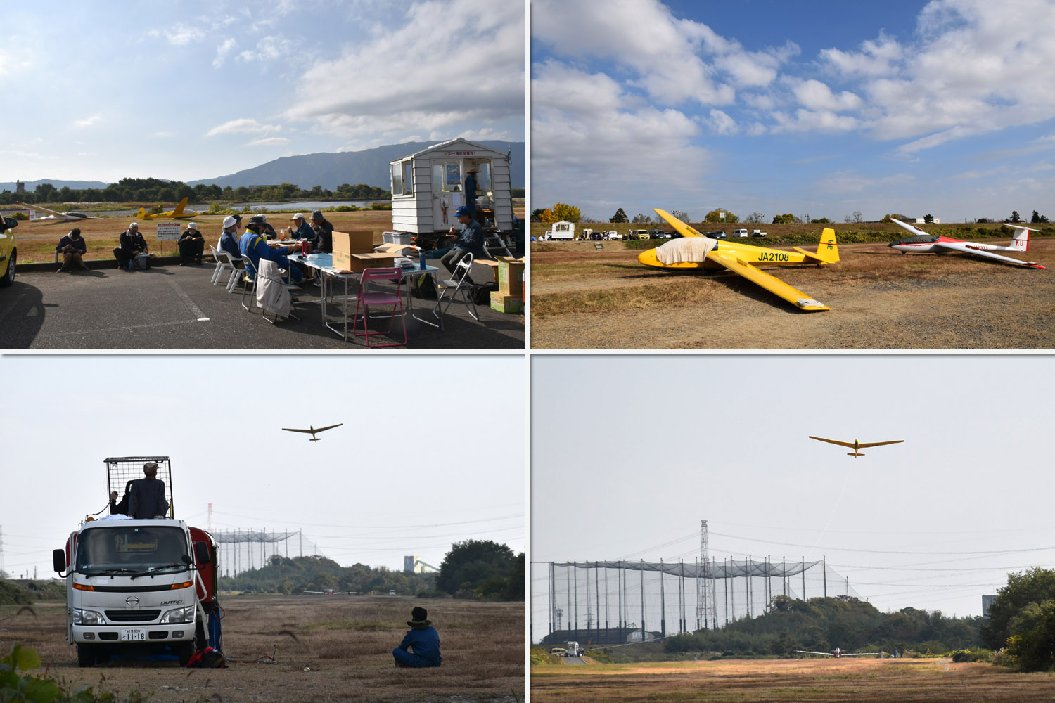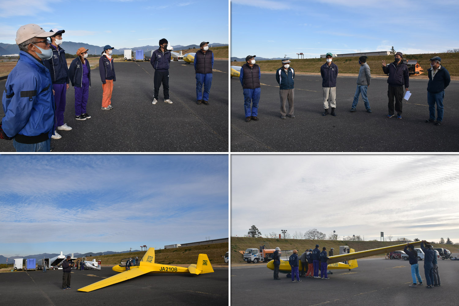 大野はちょうどいい正対風 (段々と強くなりましたが) の中、日差しも快く練習日和となりました。 複座は JA2108 と JA30GC、単座は JA2535 と JA10GC と揃えて条件が良くなるのを待ちます。