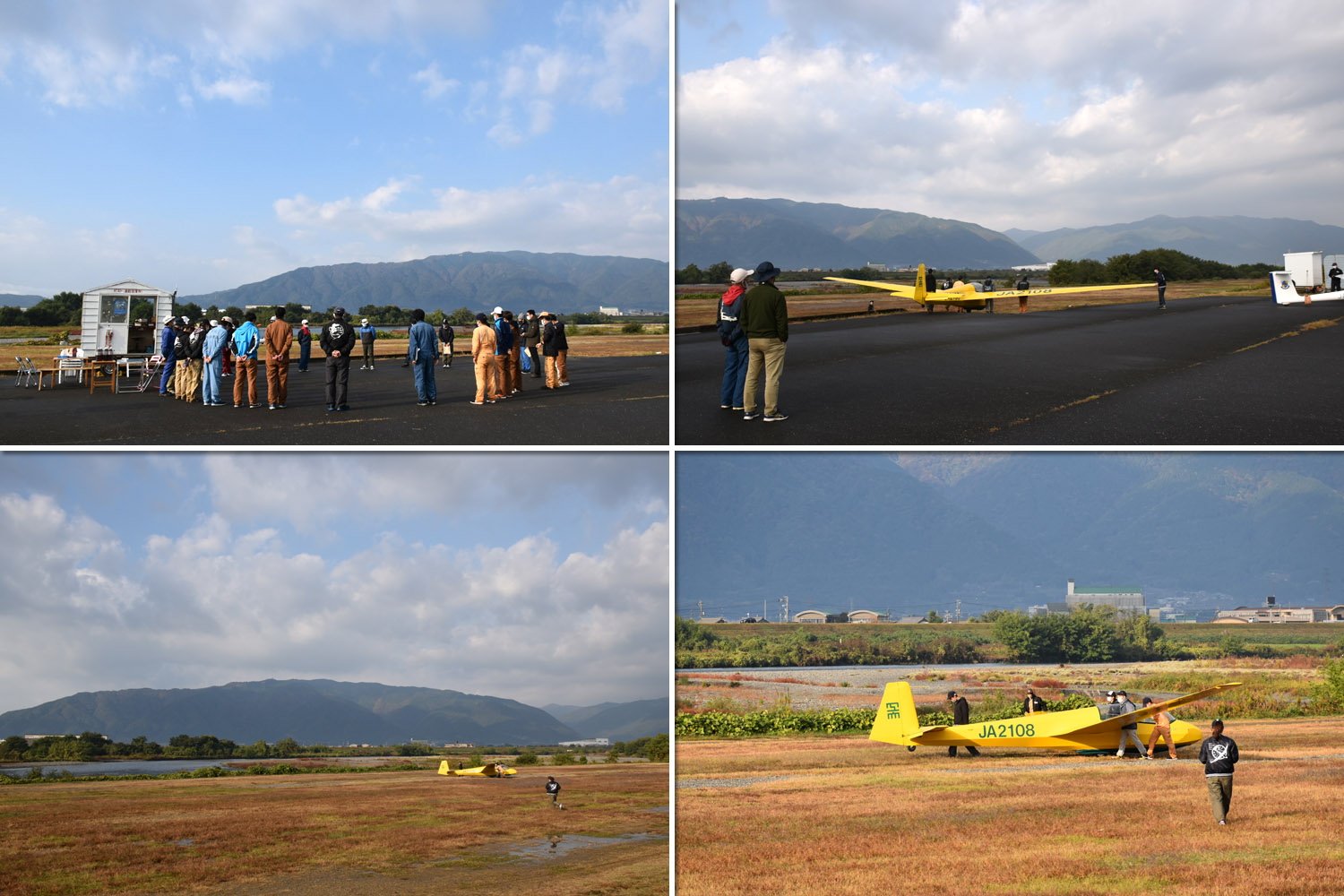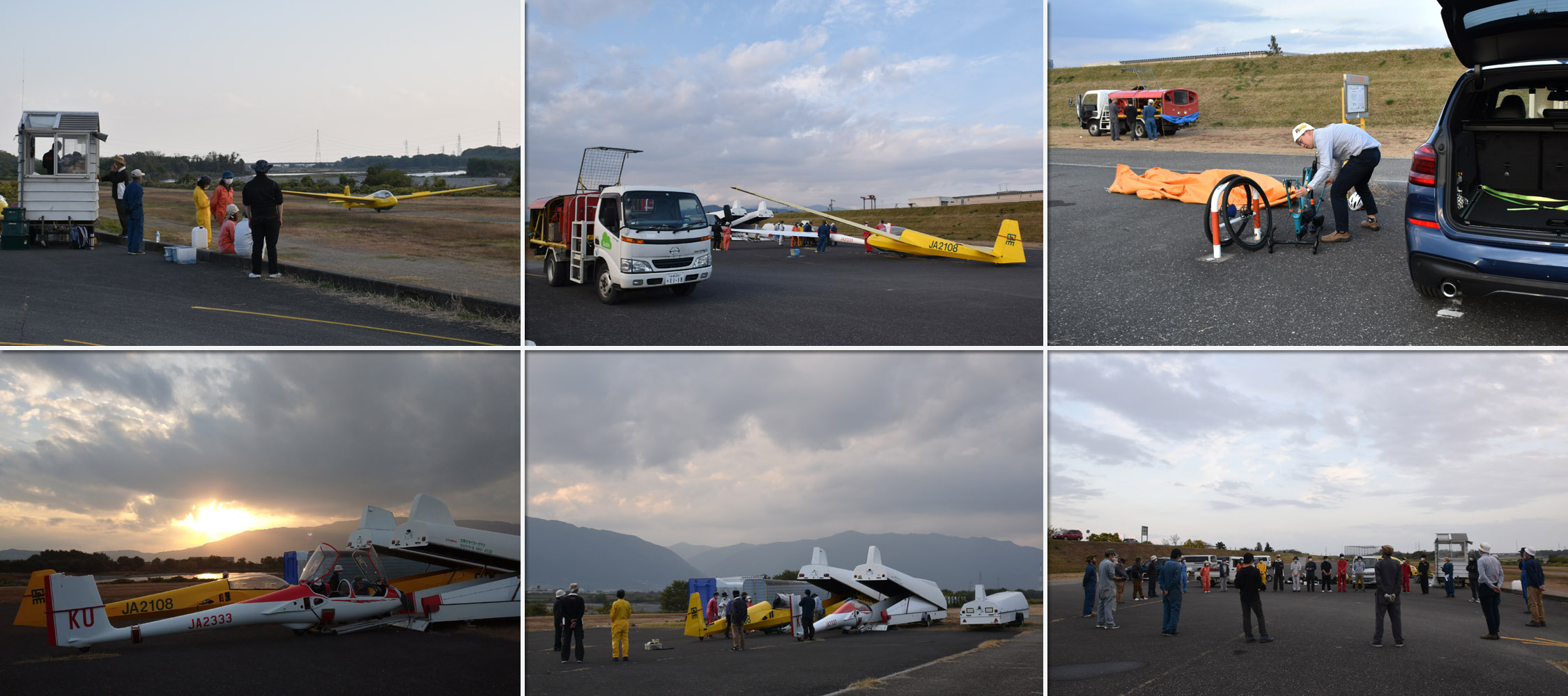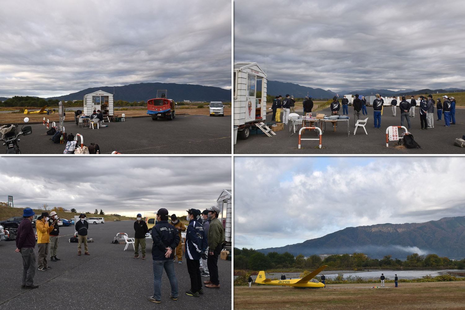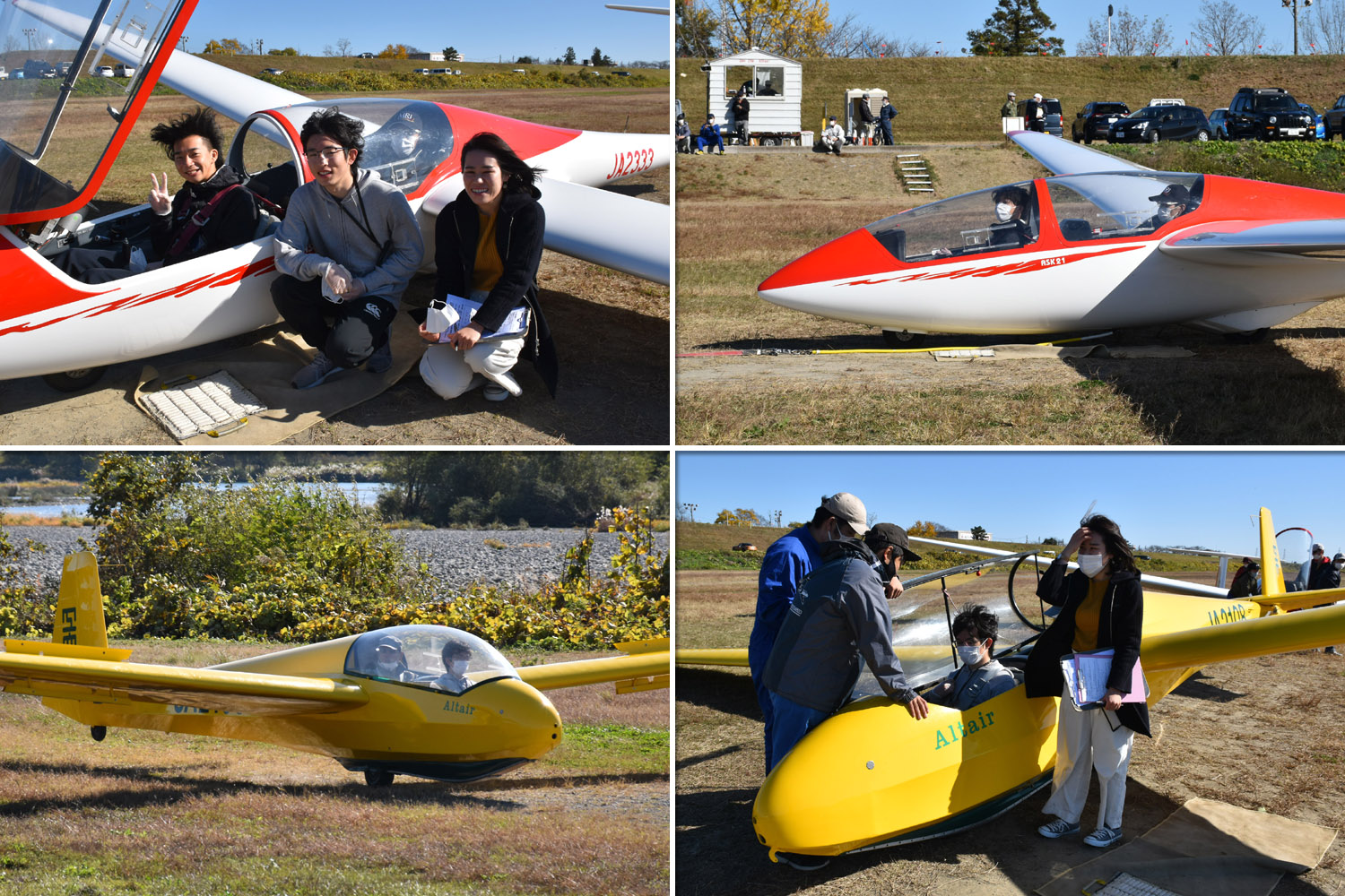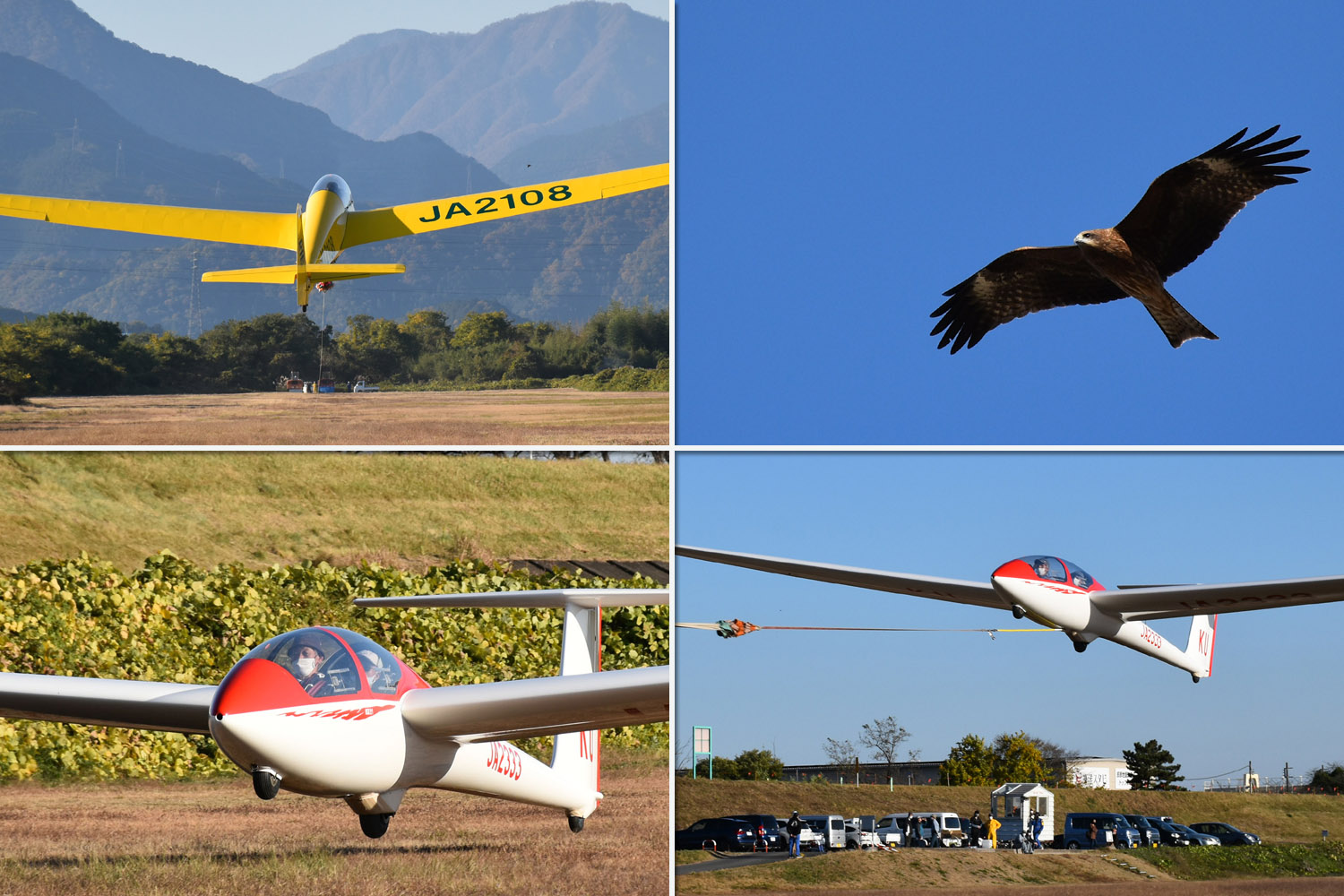 大野はちょうどいい正対風 (段々と強くなりましたが) の中、日差しも快く練習日和となりました。 複座は JA2108 と JA30GC、単座は JA2535 と JA10GC と揃えて条件が良くなるのを待ちます。