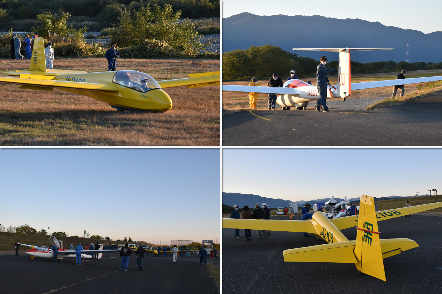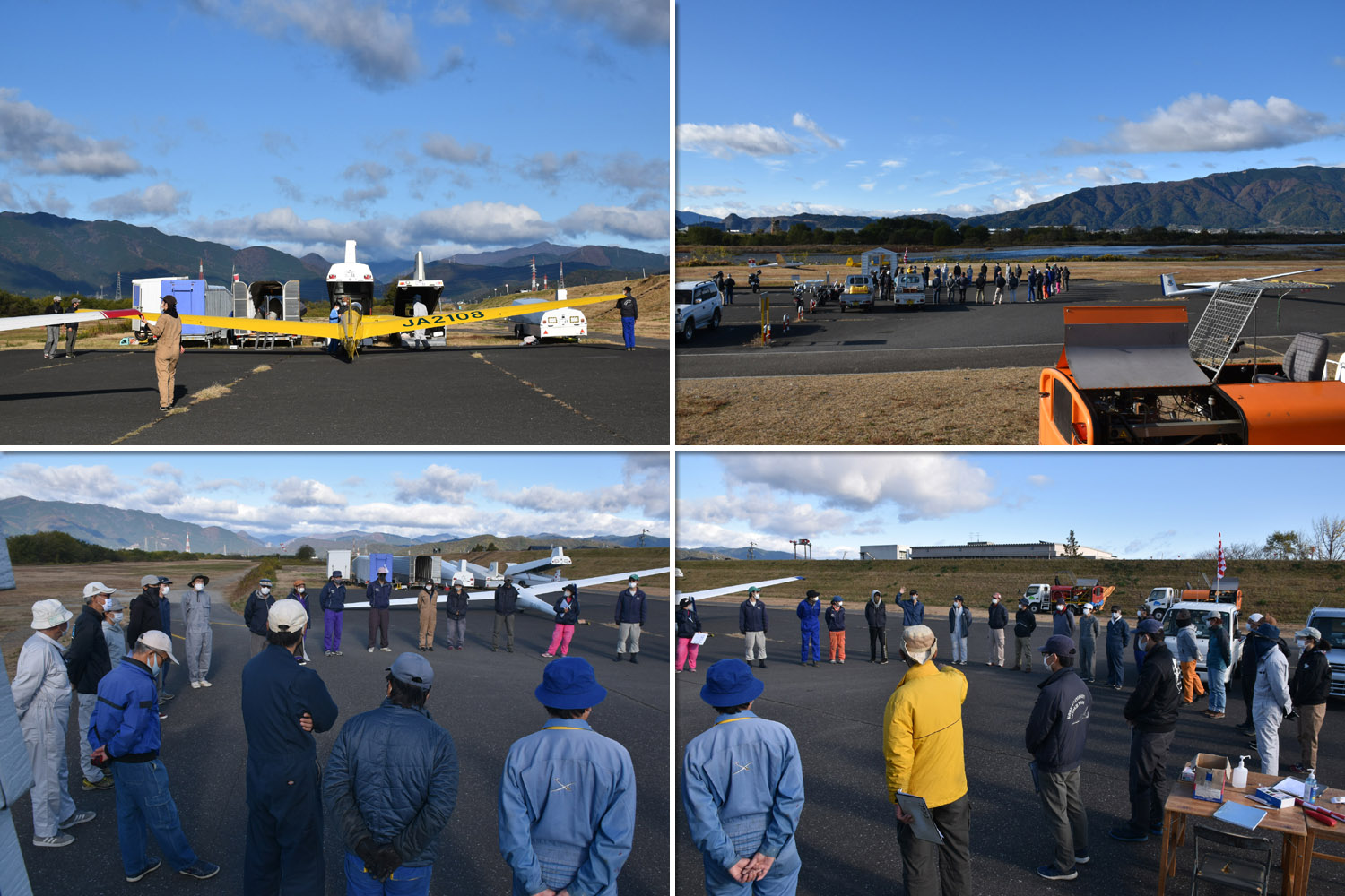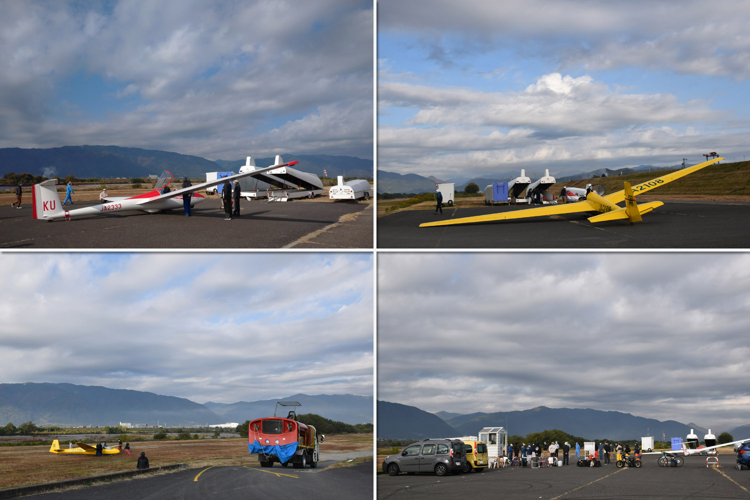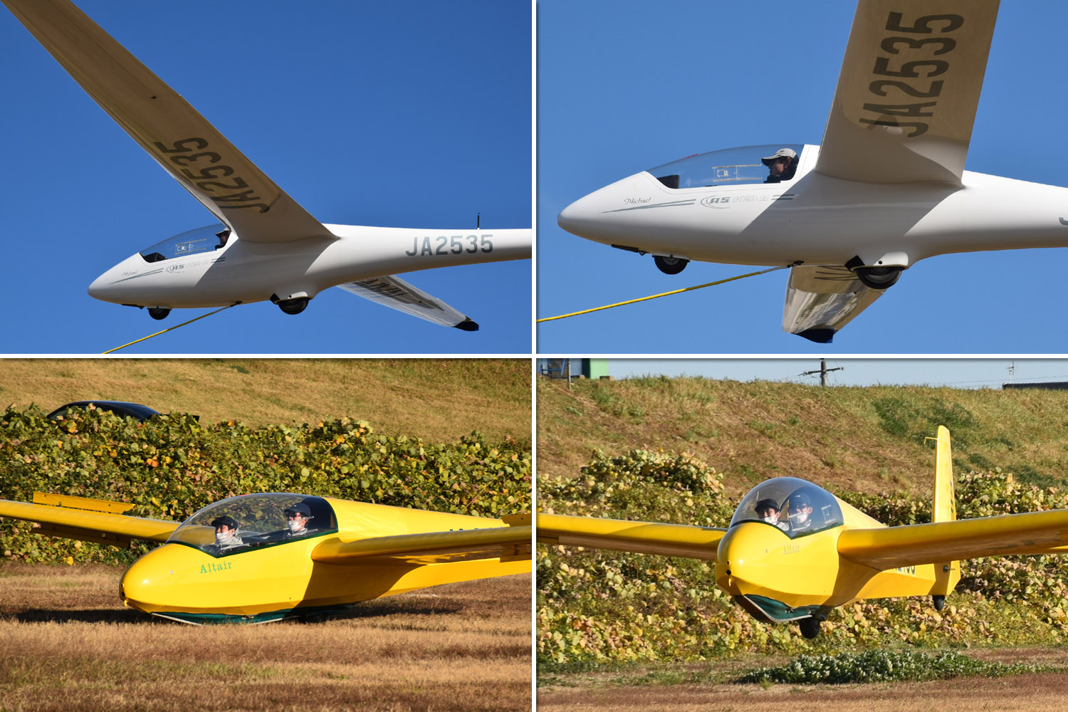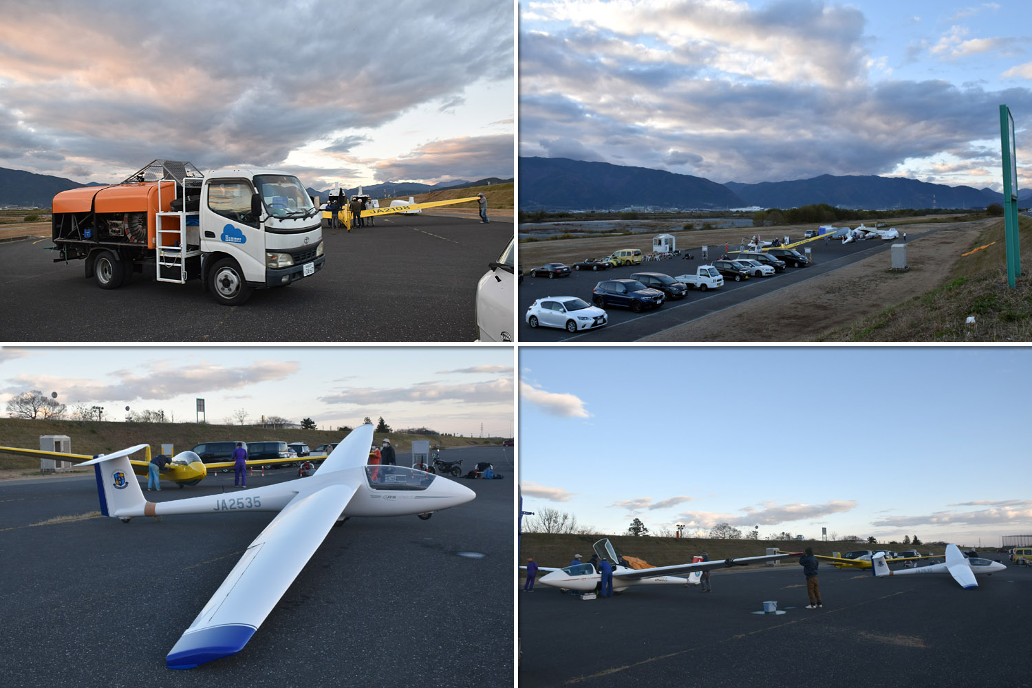 大野はちょうどいい正対風 (段々と強くなりましたが) の中、日差しも快く練習日和となりました。 複座は JA2108 と JA30GC、単座は JA2535 と JA10GC と揃えて条件が良くなるのを待ちます。