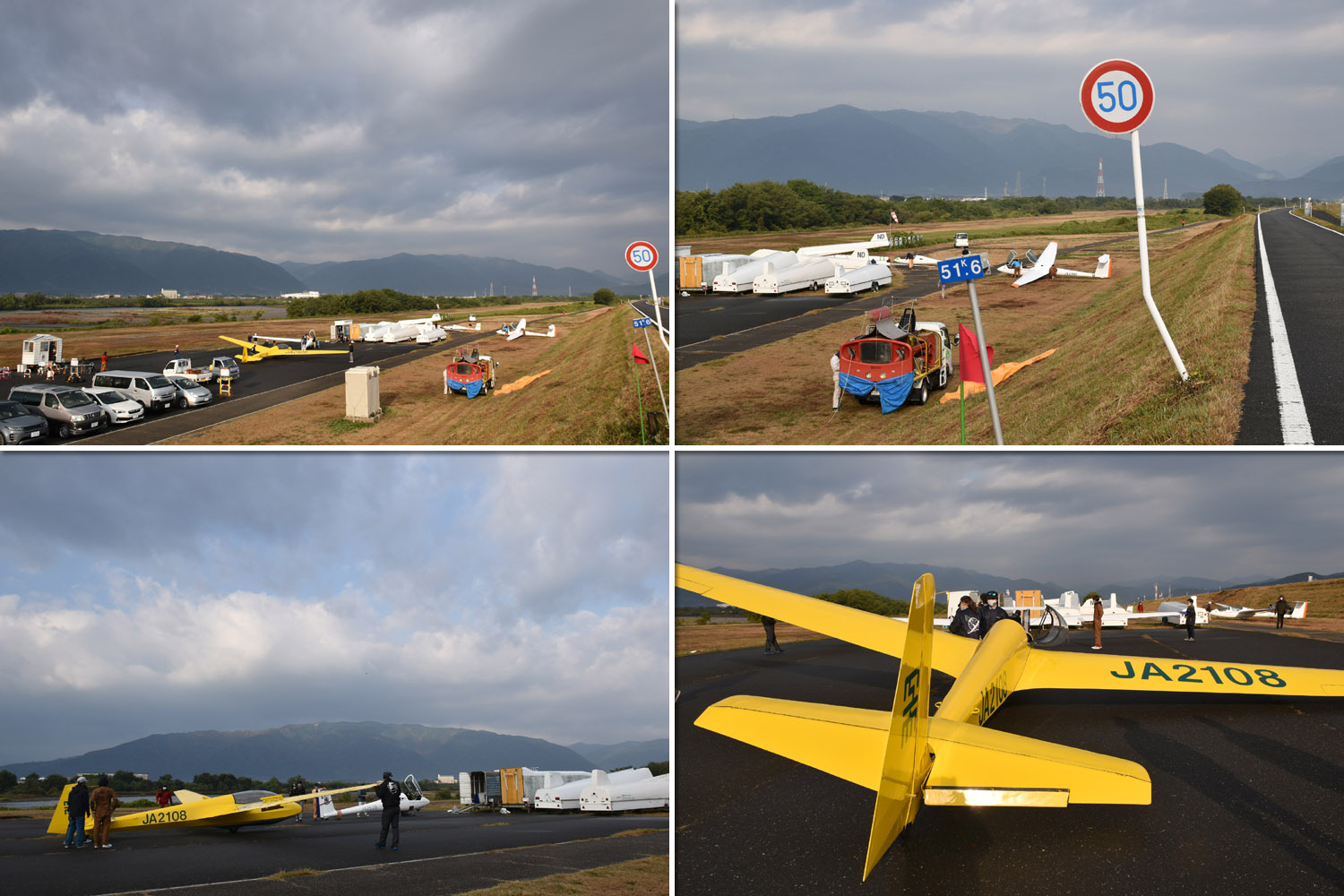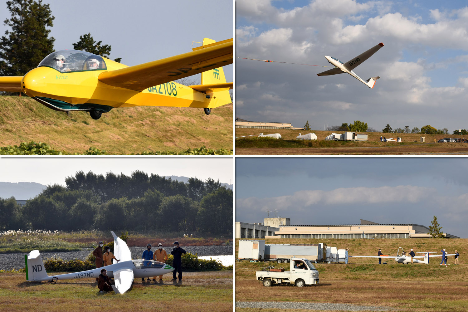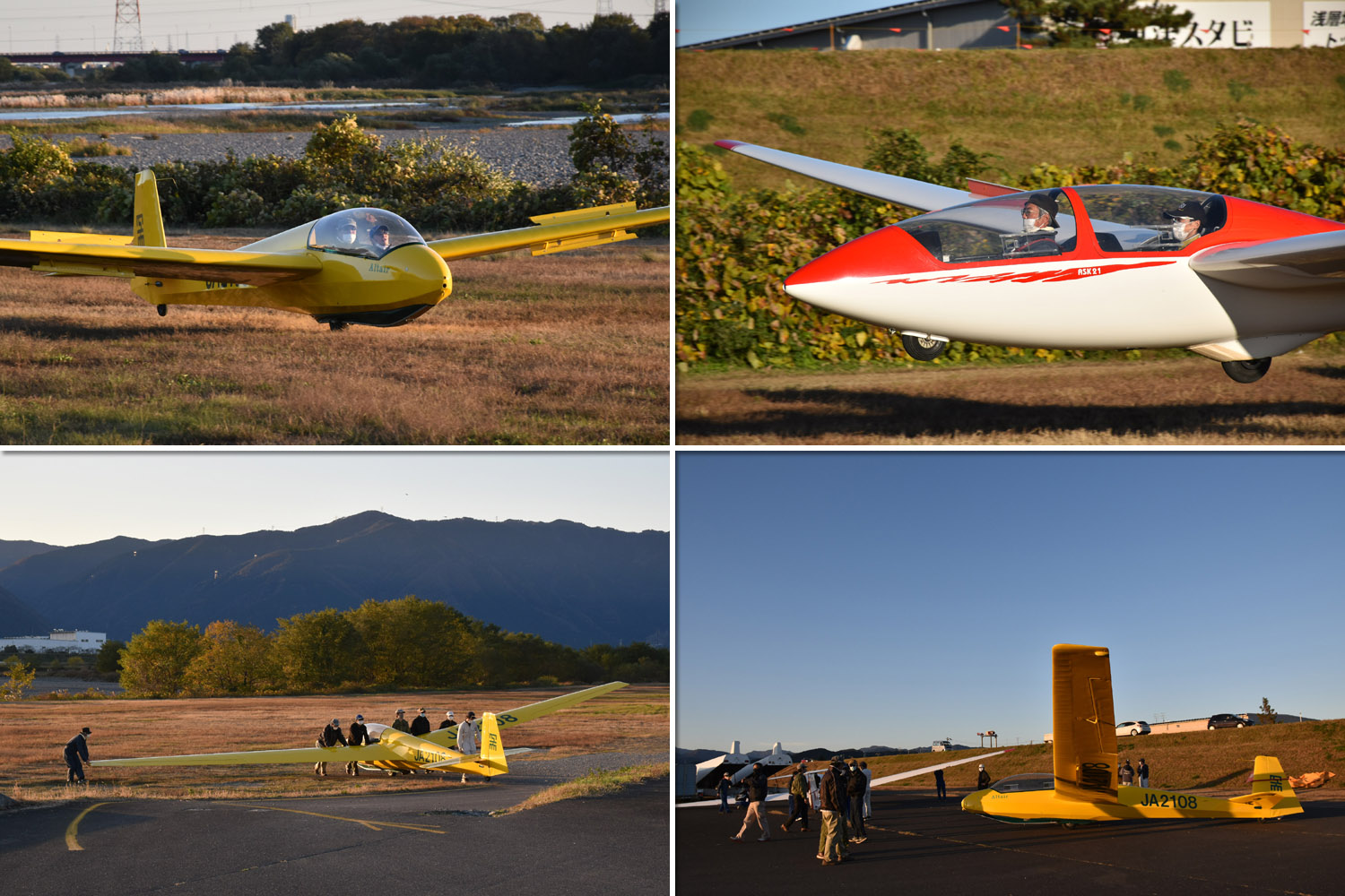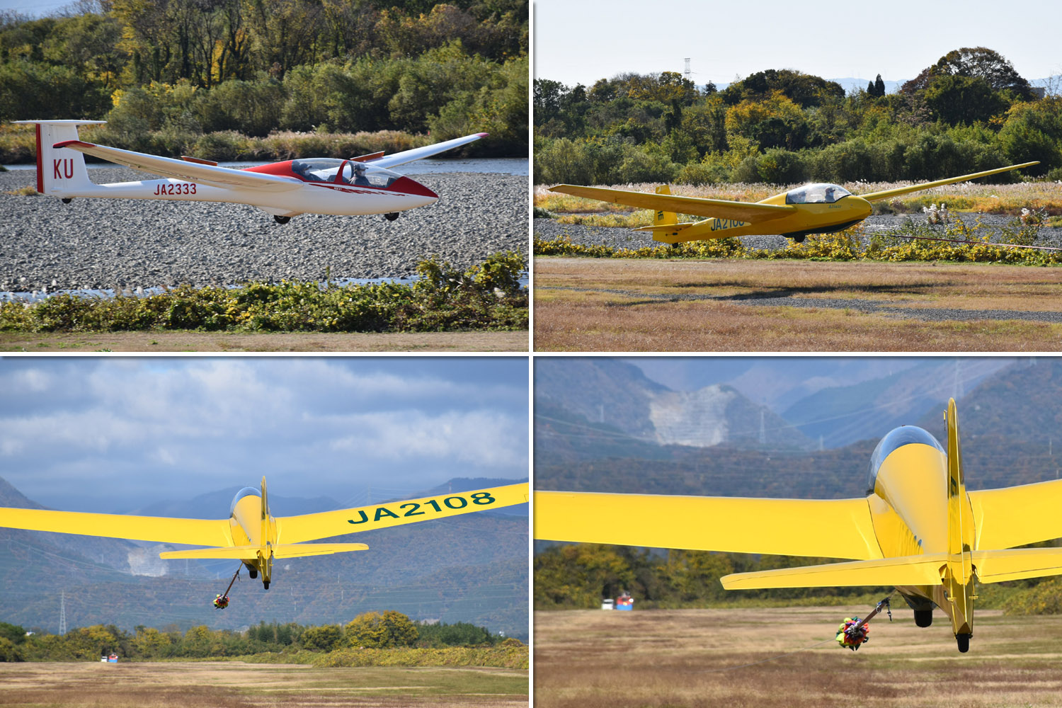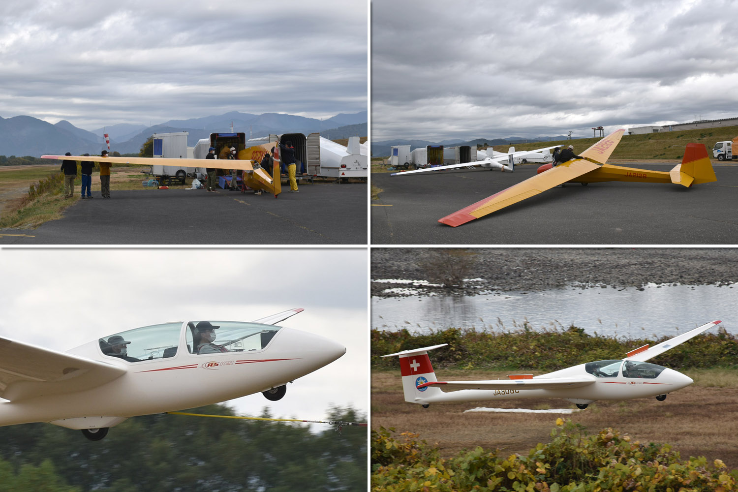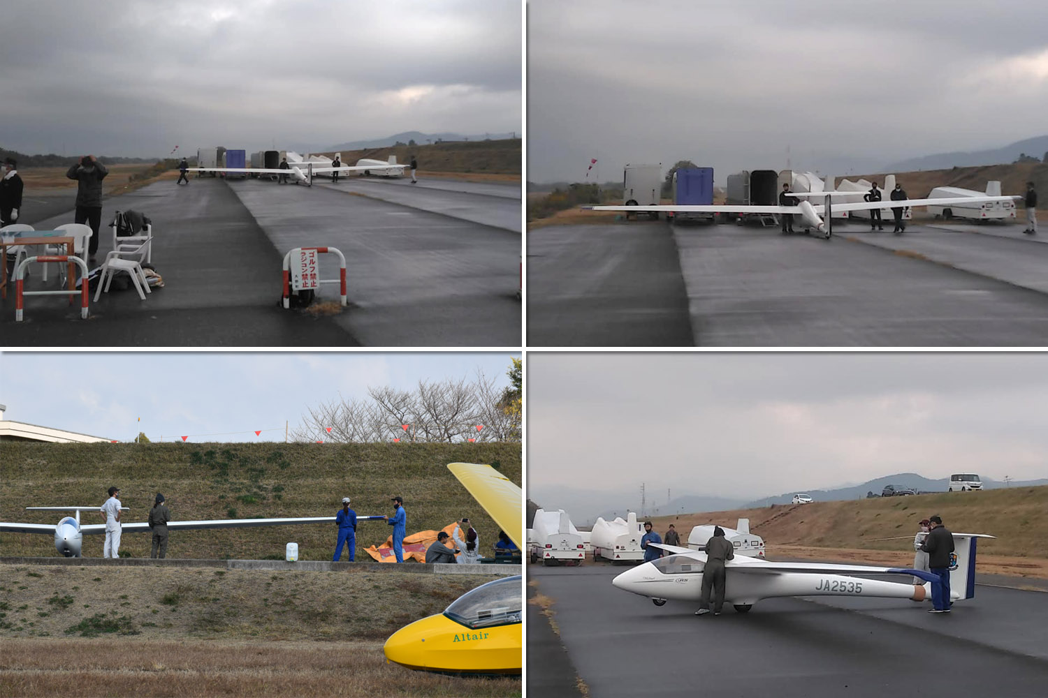 大野はちょうどいい正対風 (段々と強くなりましたが) の中、日差しも快く練習日和となりました。 複座は JA2108 と JA30GC、単座は JA2535 と JA10GC と揃えて条件が良くなるのを待ちます。
