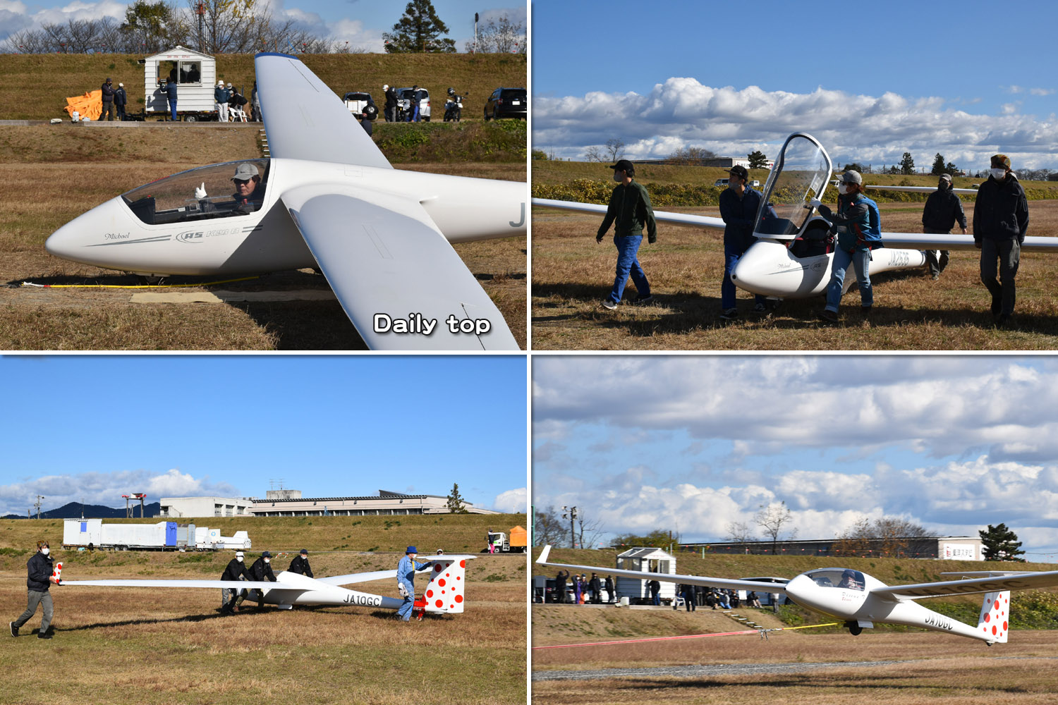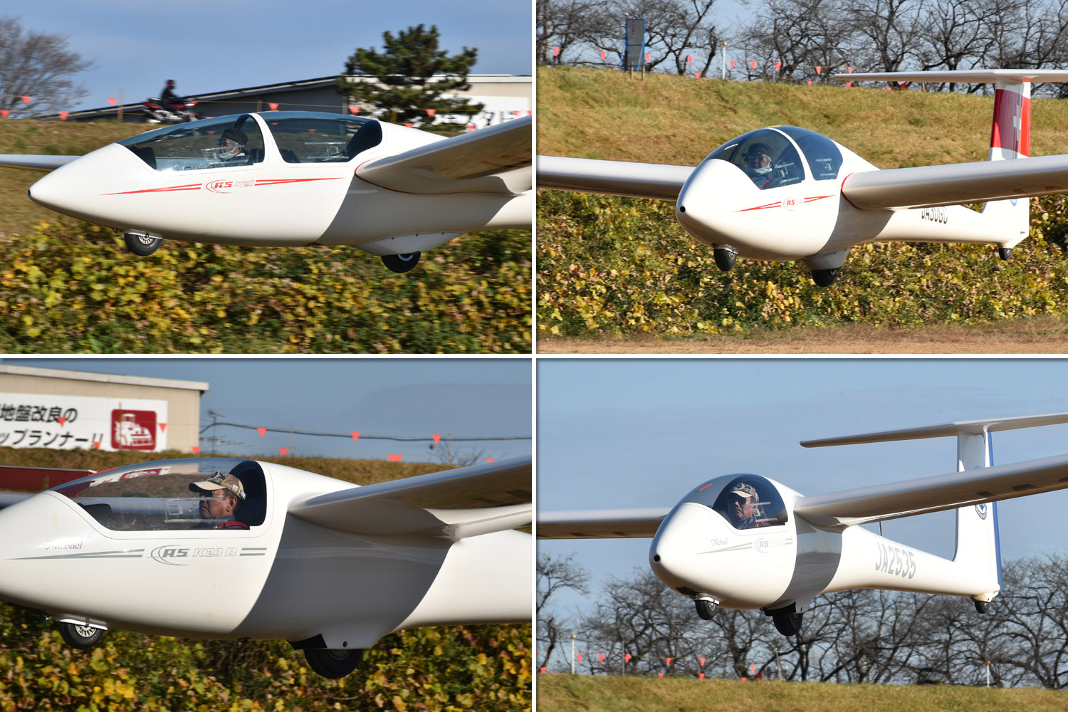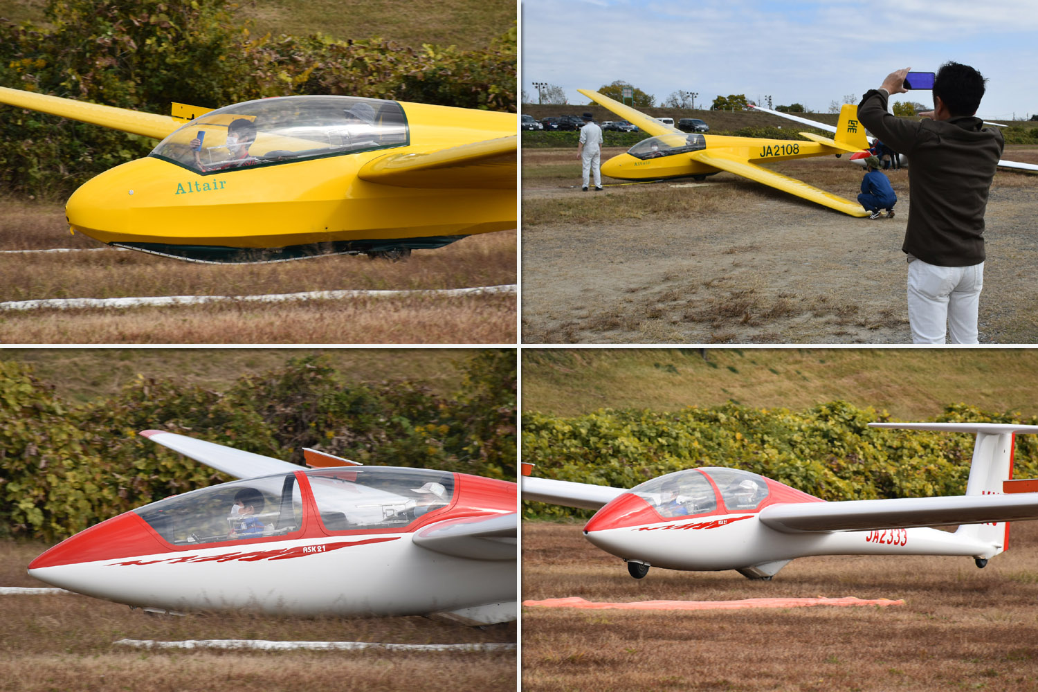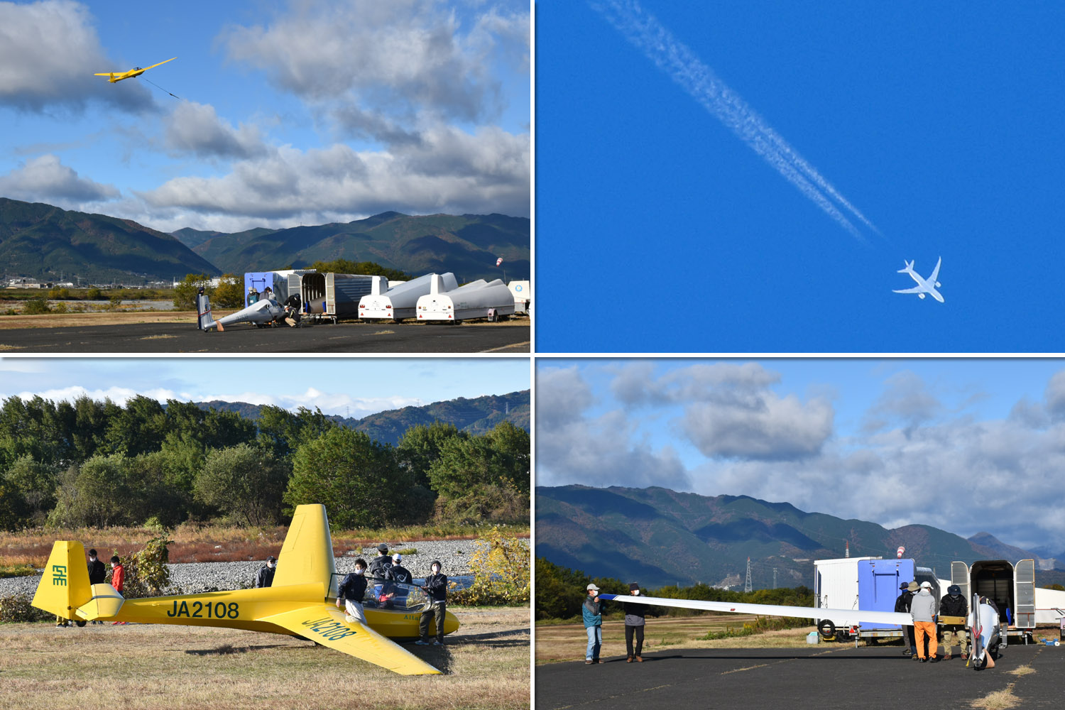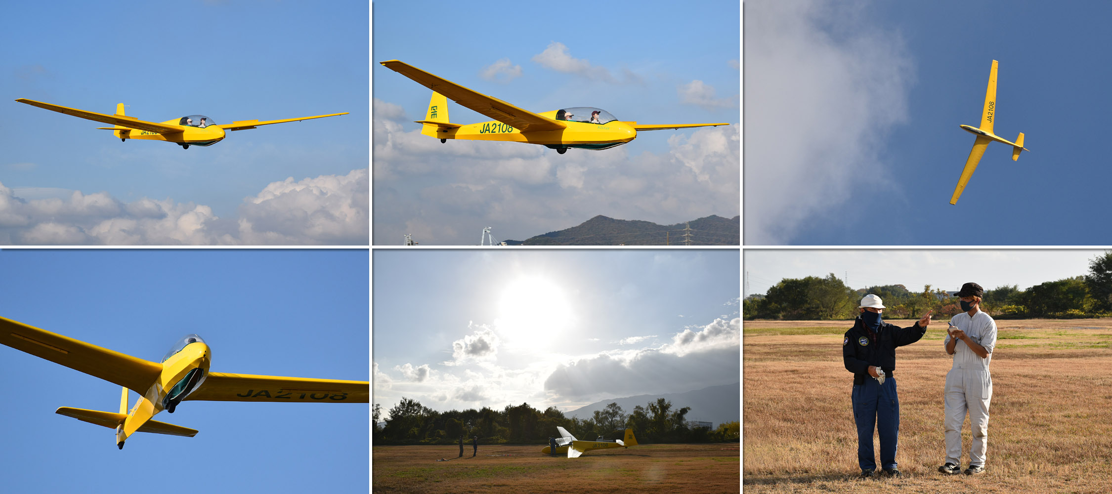 大野はちょうどいい正対風 (段々と強くなりましたが) の中、日差しも快く練習日和となりました。 複座は JA2108 と JA30GC、単座は JA2535 と JA10GC と揃えて条件が良くなるのを待ちます。