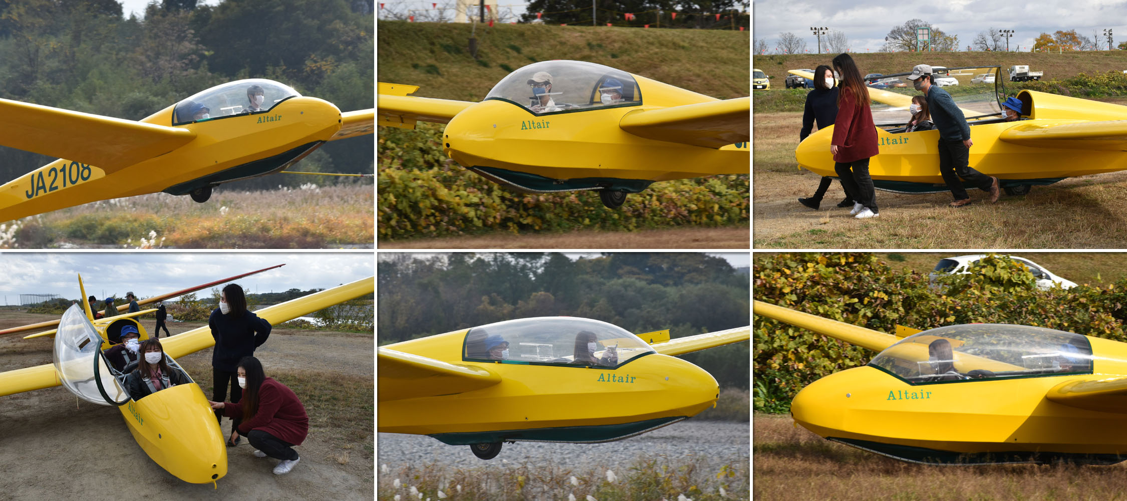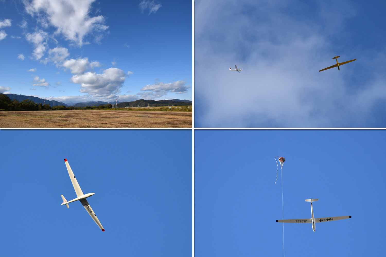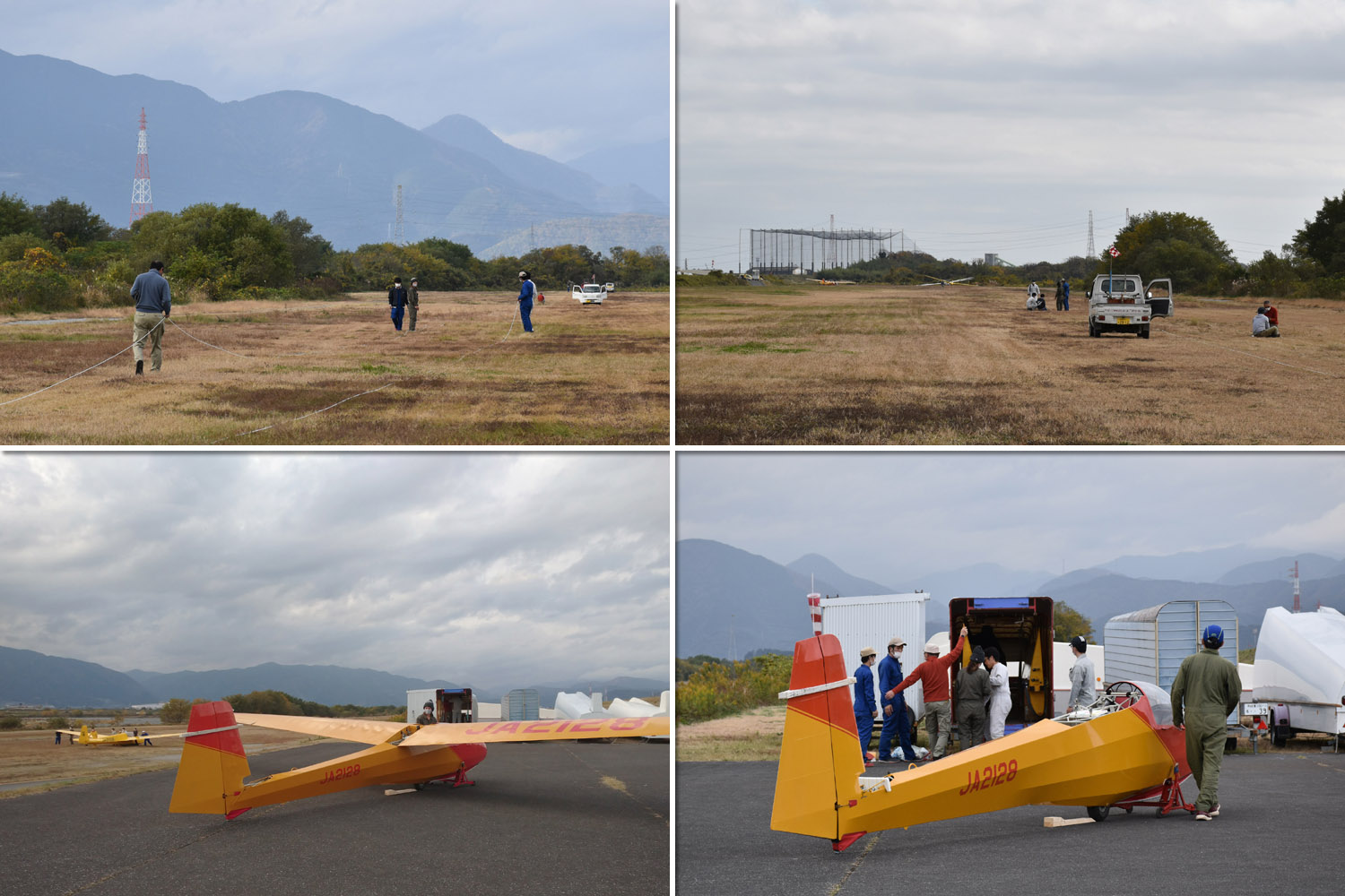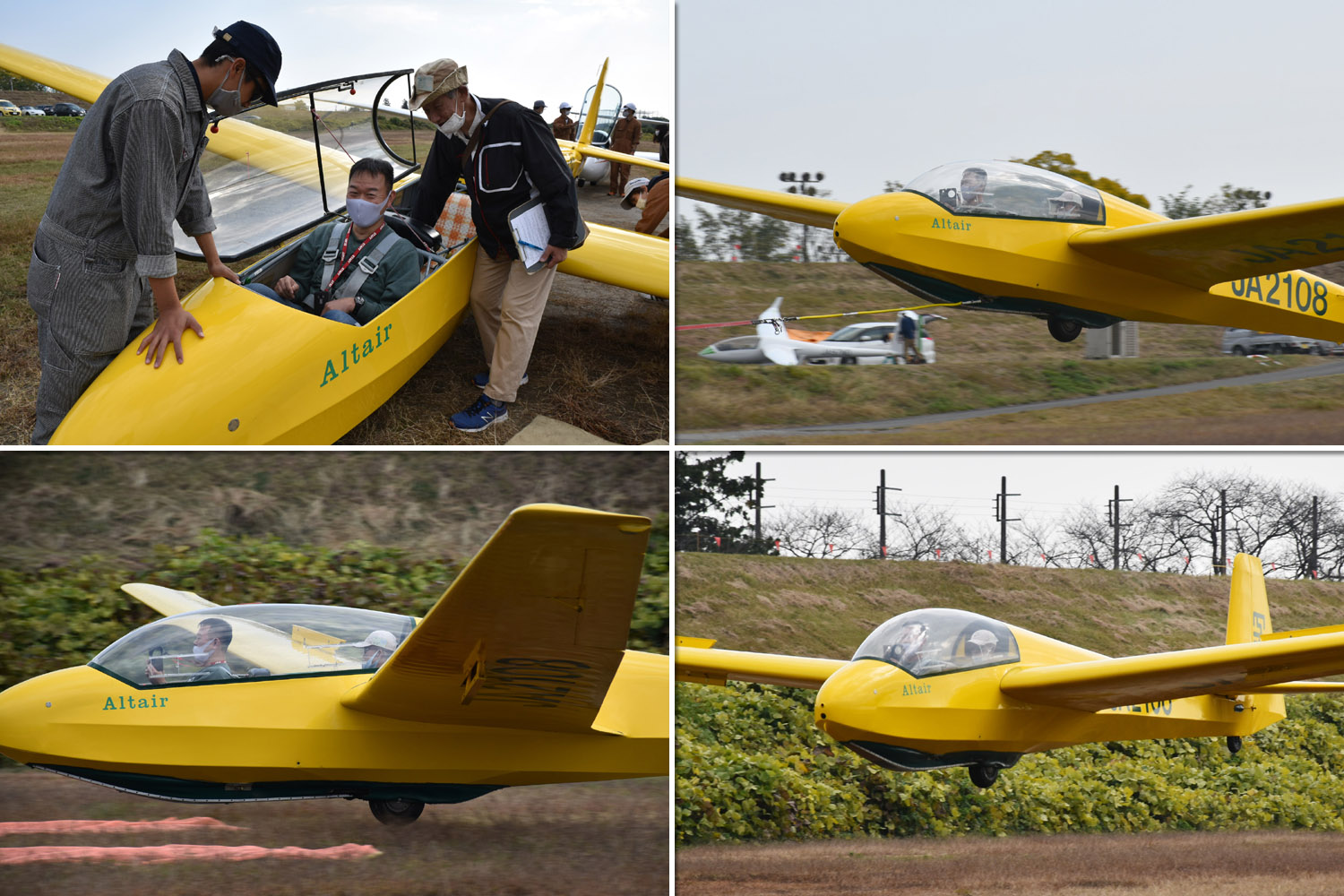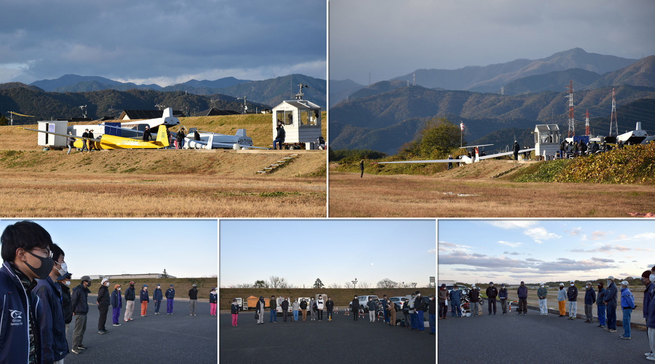 大野はちょうどいい正対風 (段々と強くなりましたが) の中、日差しも快く練習日和となりました。 複座は JA2108 と JA30GC、単座は JA2535 と JA10GC と揃えて条件が良くなるのを待ちます。