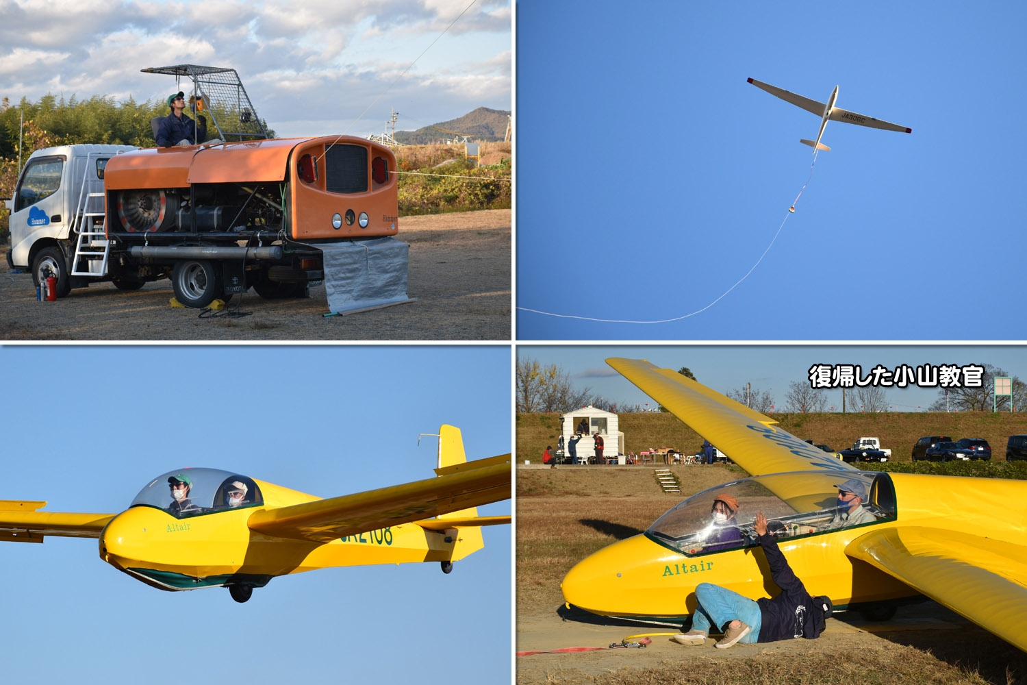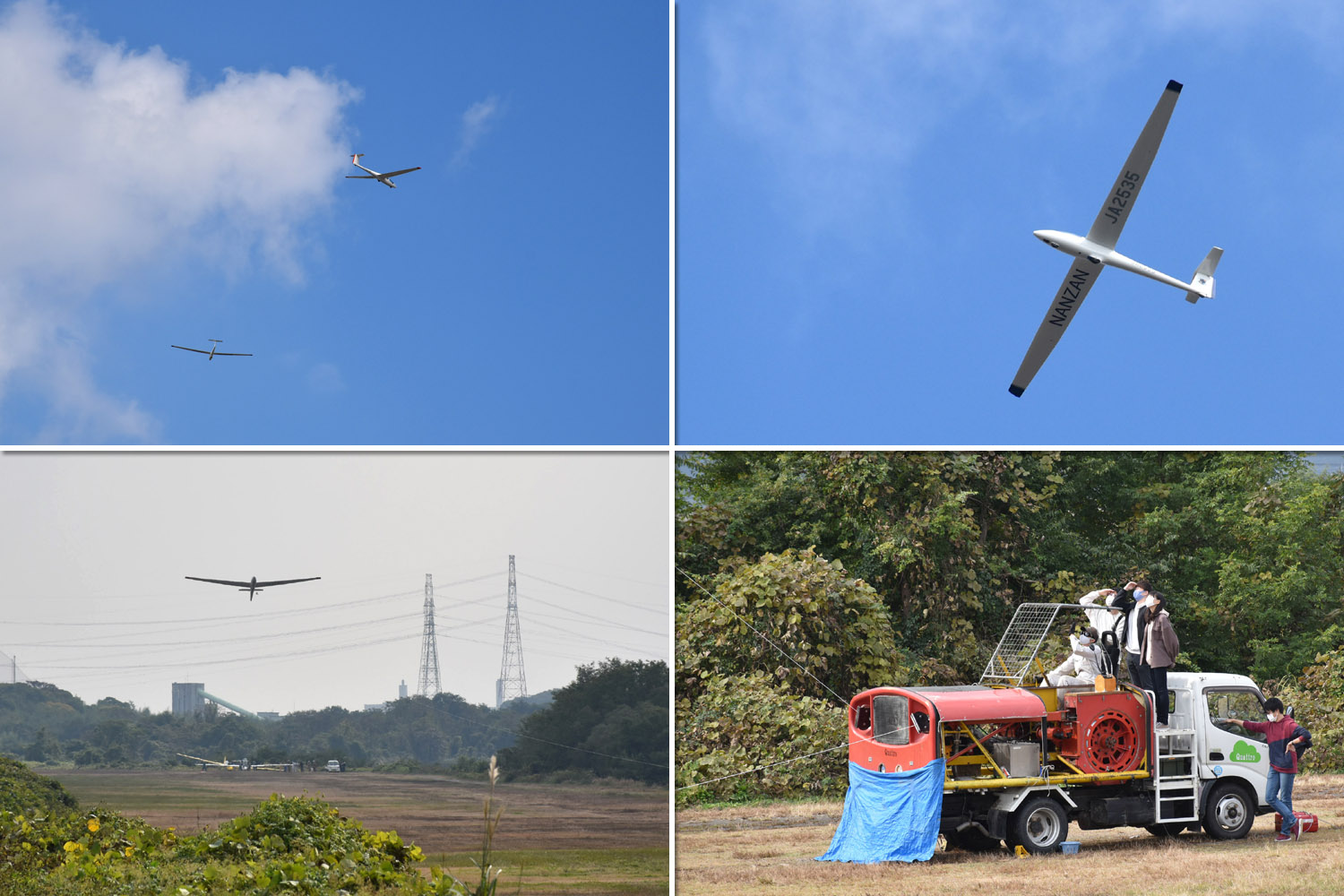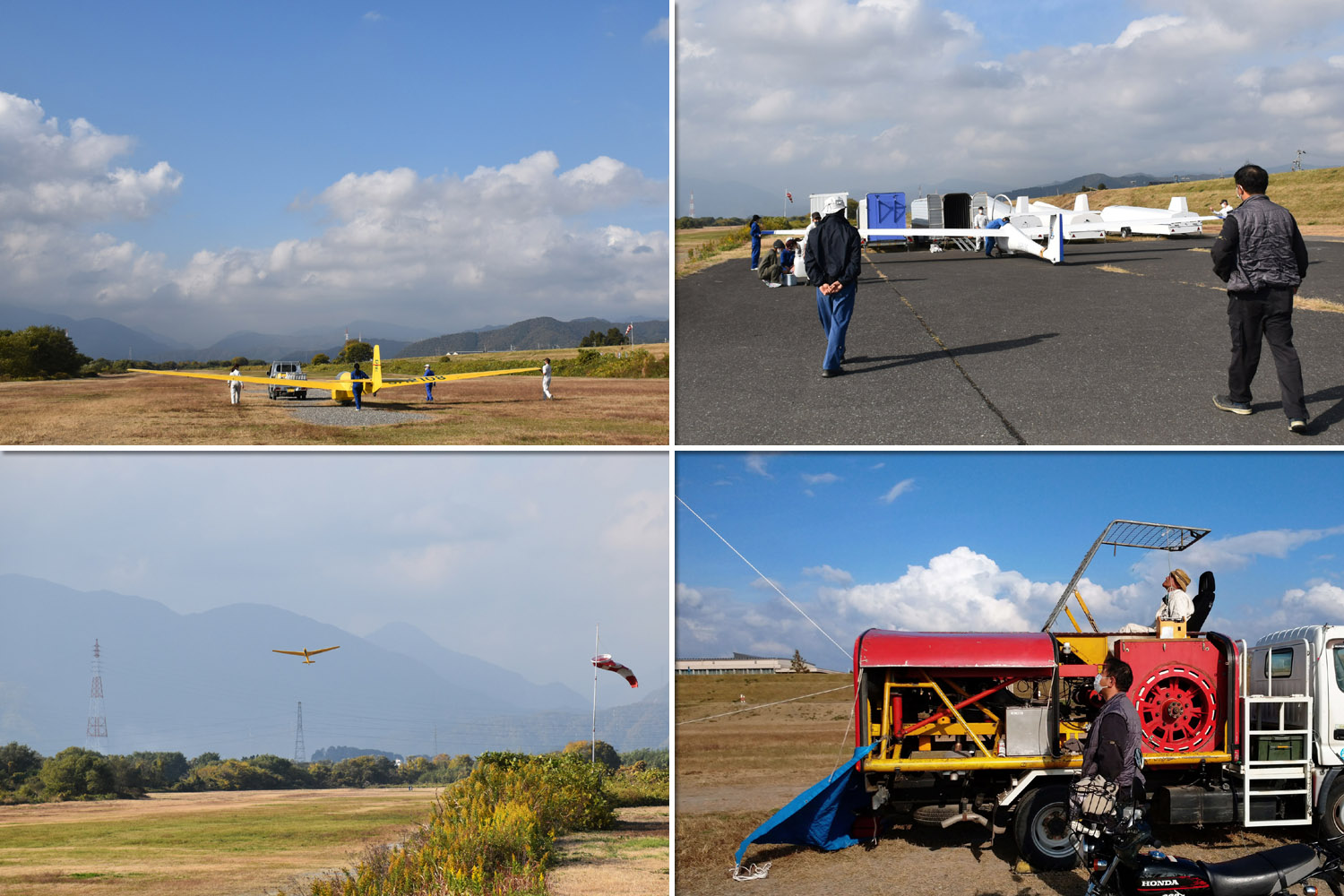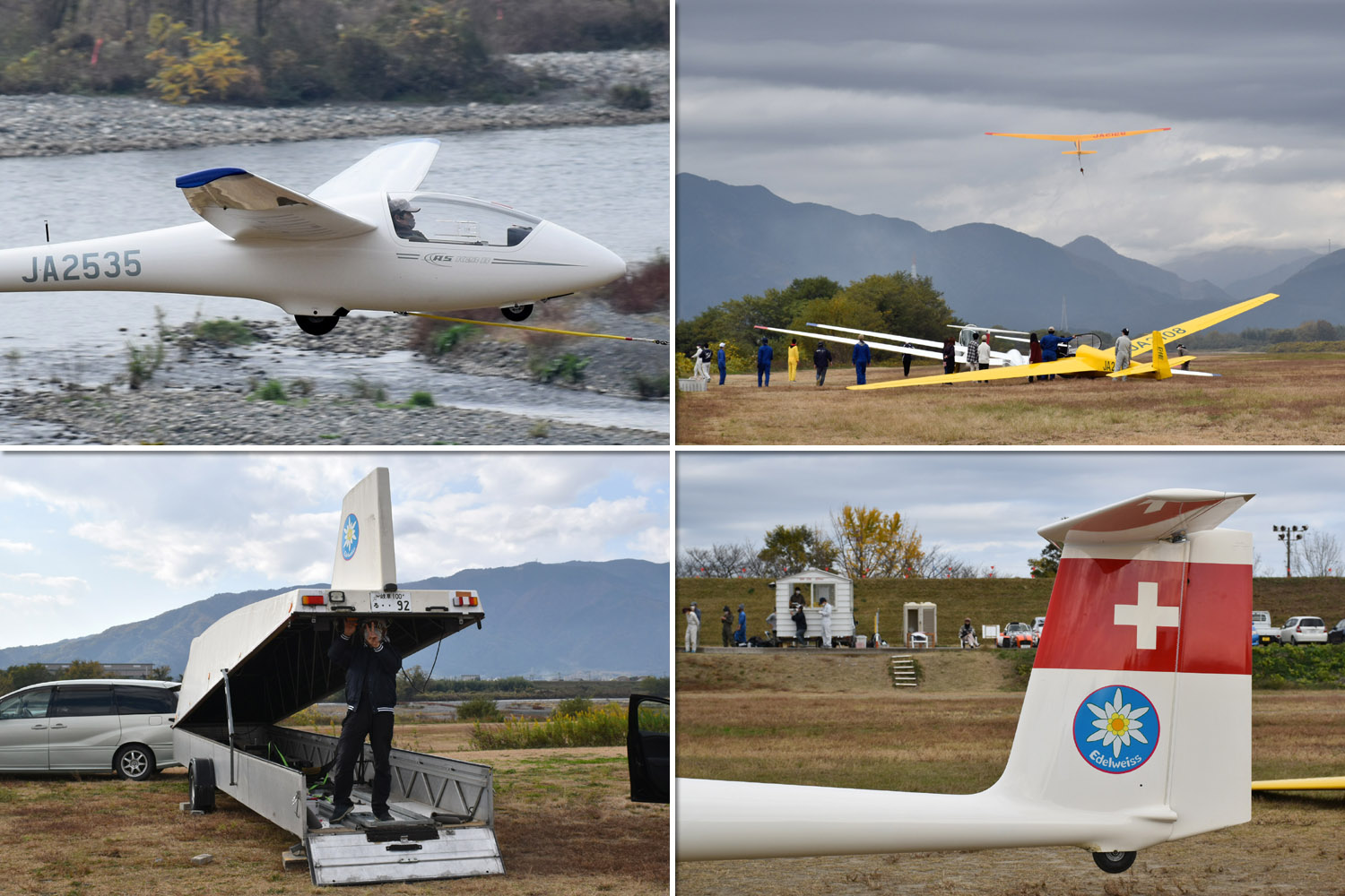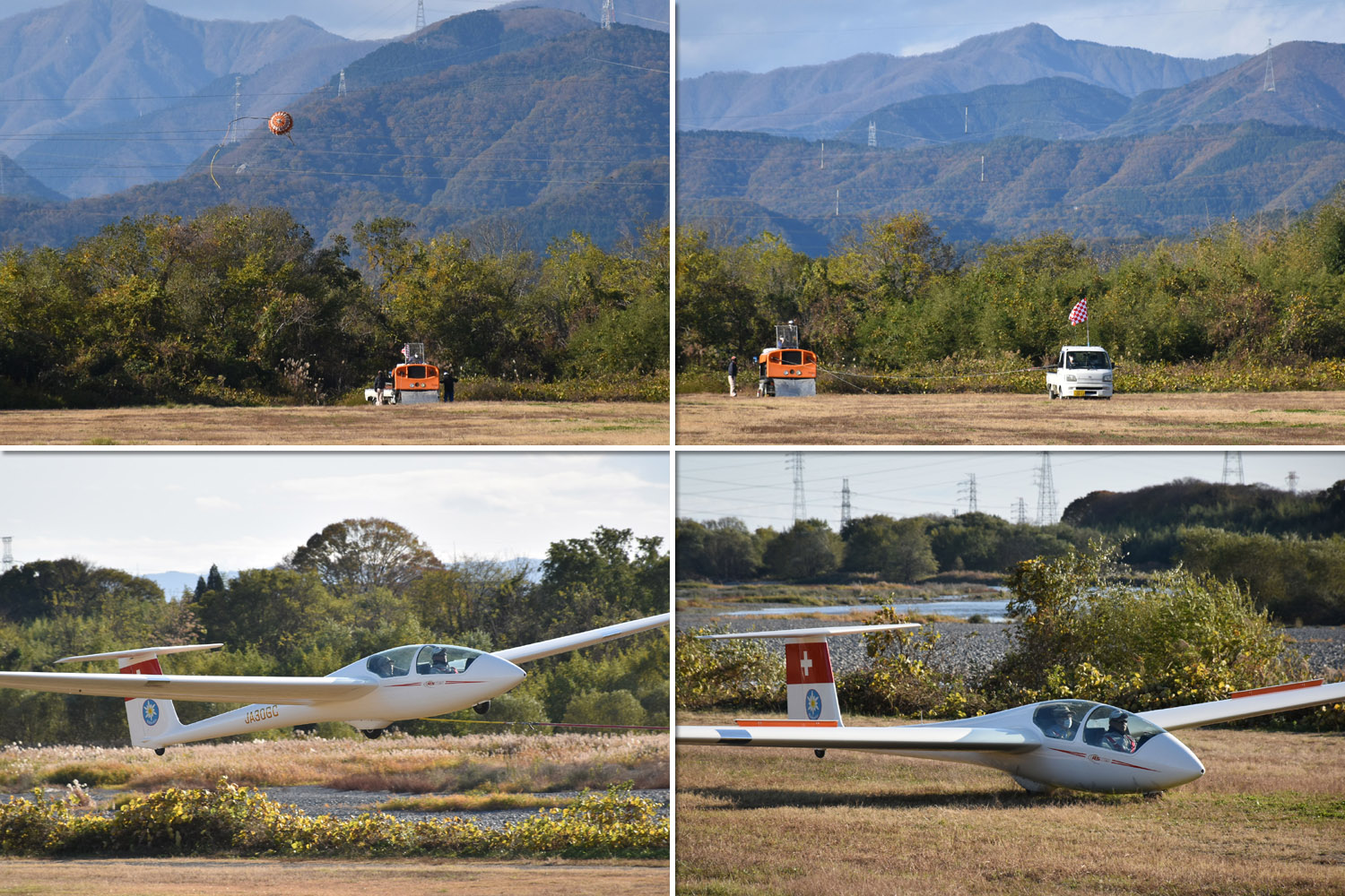 大野はちょうどいい正対風 (段々と強くなりましたが) の中、日差しも快く練習日和となりました。 複座は JA2108 と JA30GC、単座は JA2535 と JA10GC と揃えて条件が良くなるのを待ちます。