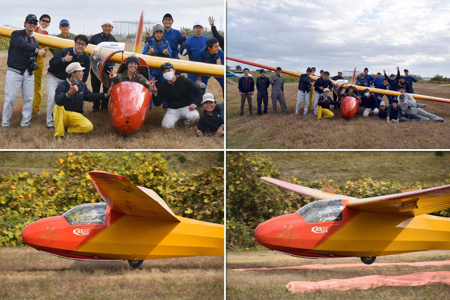 参加者のソロは 19発、その中には 京大・西さん (2年生) が 初単座 (K8b/JA2128) 達成。