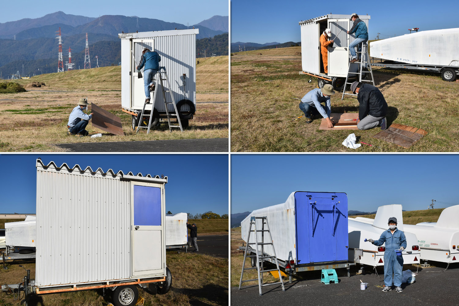 なお、空き時間を活用し、劣化が顕著となってきた JA2128 のハウトレ扉の塗装と、機材庫扉のベニヤ板の取替を OGC メンバーで行いました。
