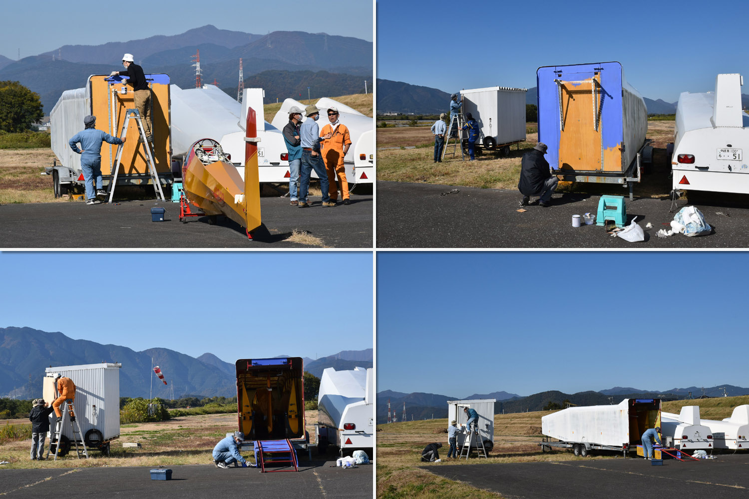 準備した機体は 複座 2機 (名大 21と 108)、単座 2機 (名大 Discus と 535)、8:50 には 1発目があがる、素早い準備でした。