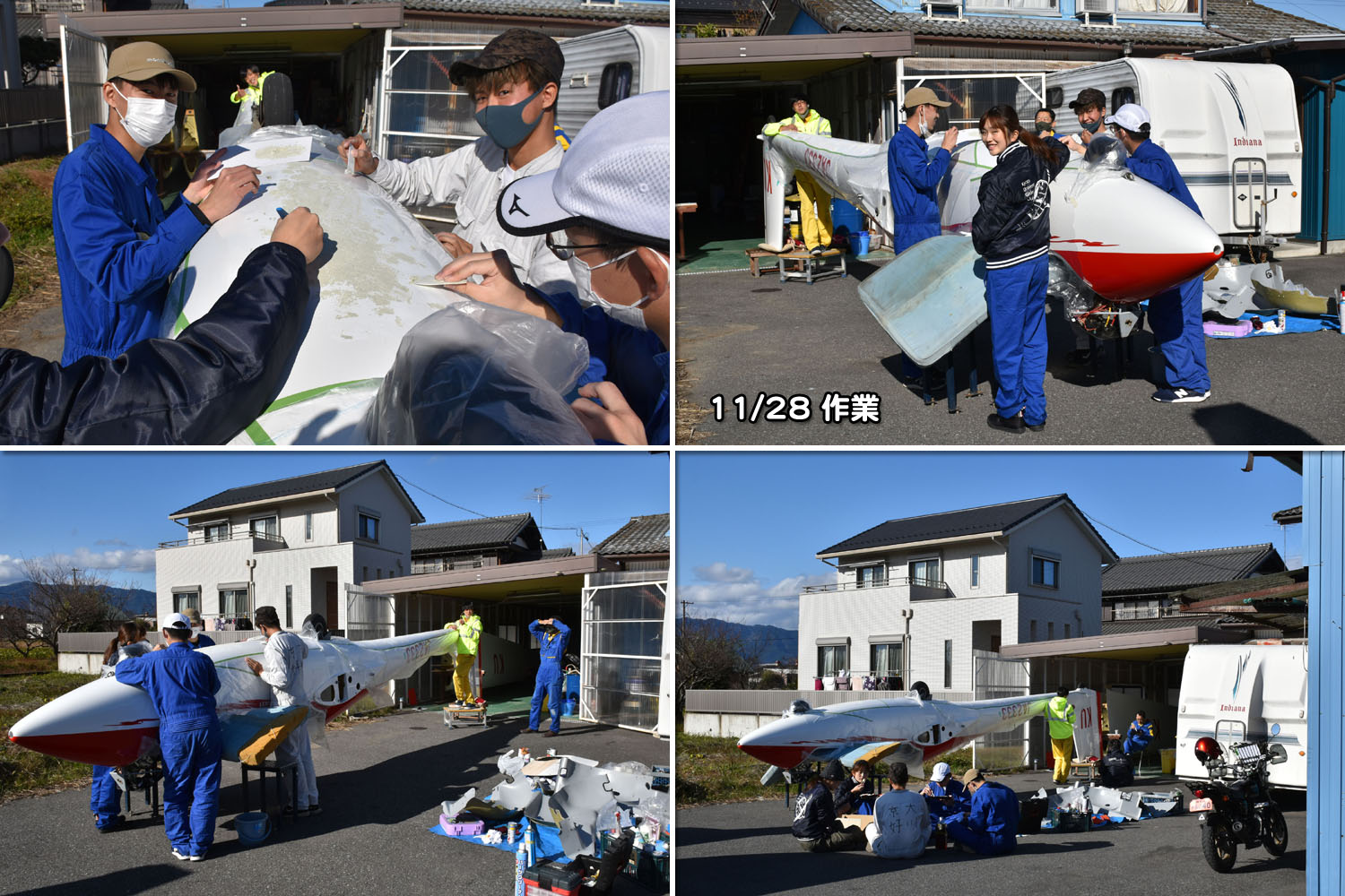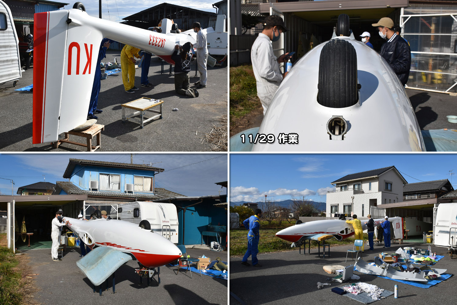 八木宿舎では京都大学の学生たちが JA2333 の整備を昨日から続けています。