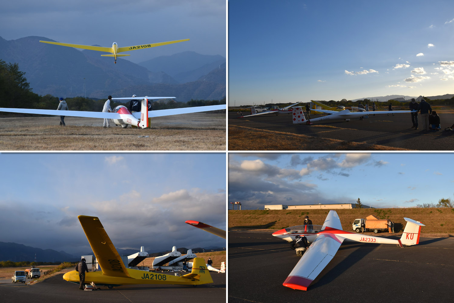 した。 OGC メンバー 7名(教官 4名、ウインチ 1名、他 2名) と学生の合計 16名で 9:09 運航スタート。 9:30 ごろからは日帰り参加の府大生 4名が加わり 20名に。