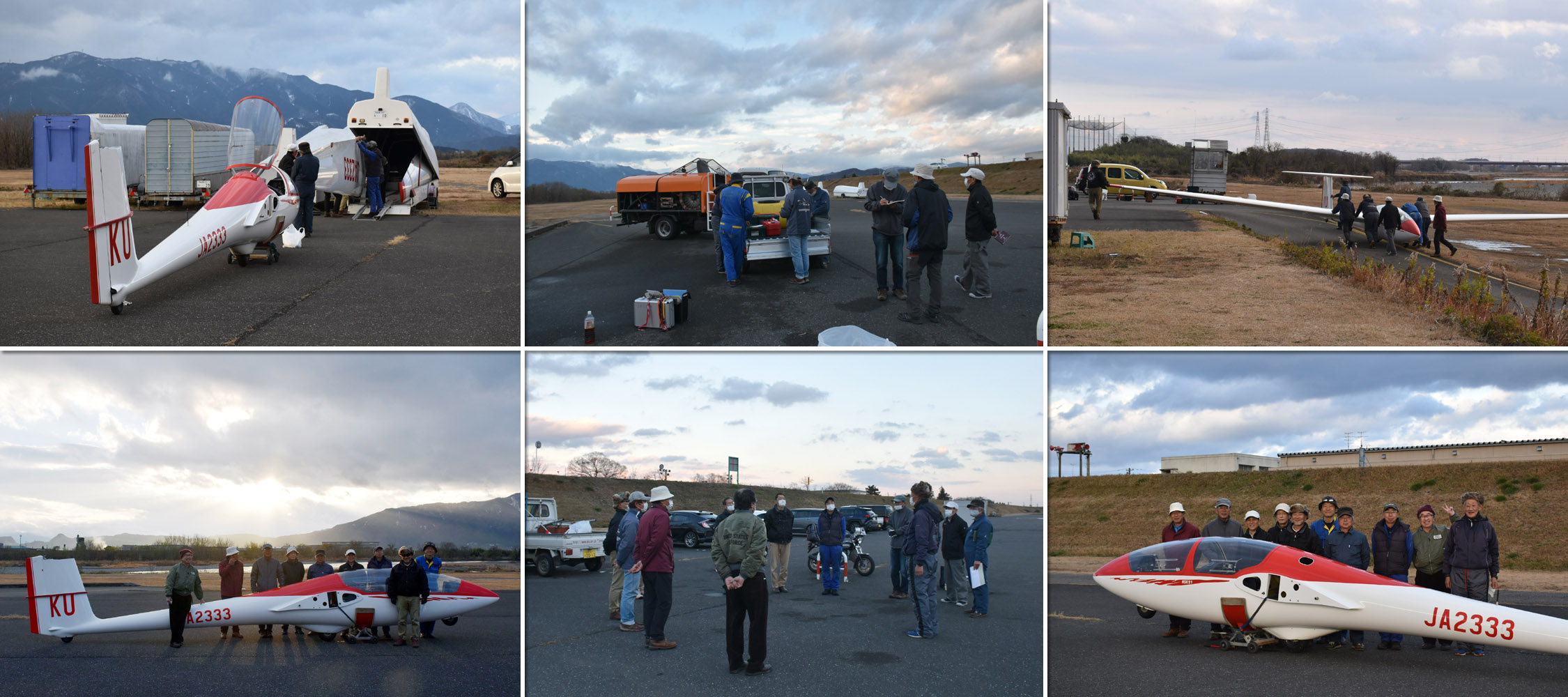 朝の集合時に急遽スケジュールを変更し、ピストカー、クラブハウス、八木宿舎+ファクトリー、中之元事務所・宿舎に分かれ、年末の掃除や整理を先に行う事にしました。 2 時間位の作業の後、幸い雨も上ったので滑空場に戻って、早々に JA2333 を組み立てたところで昼食。