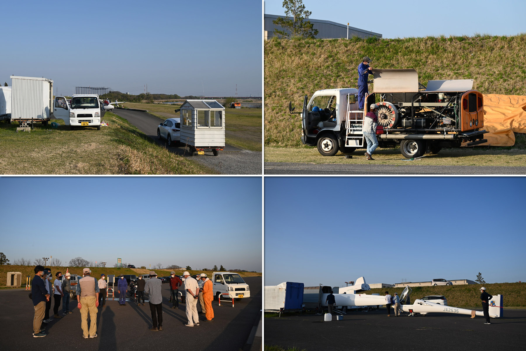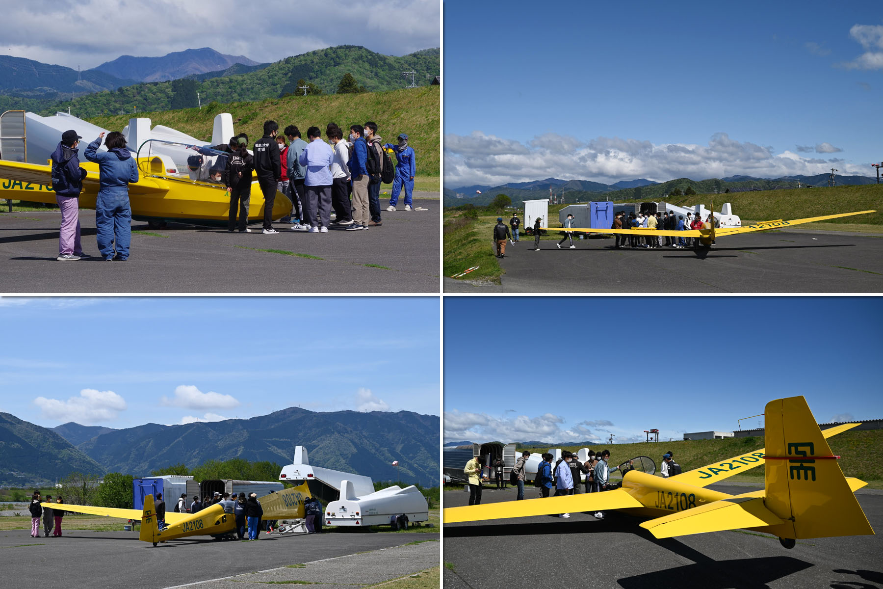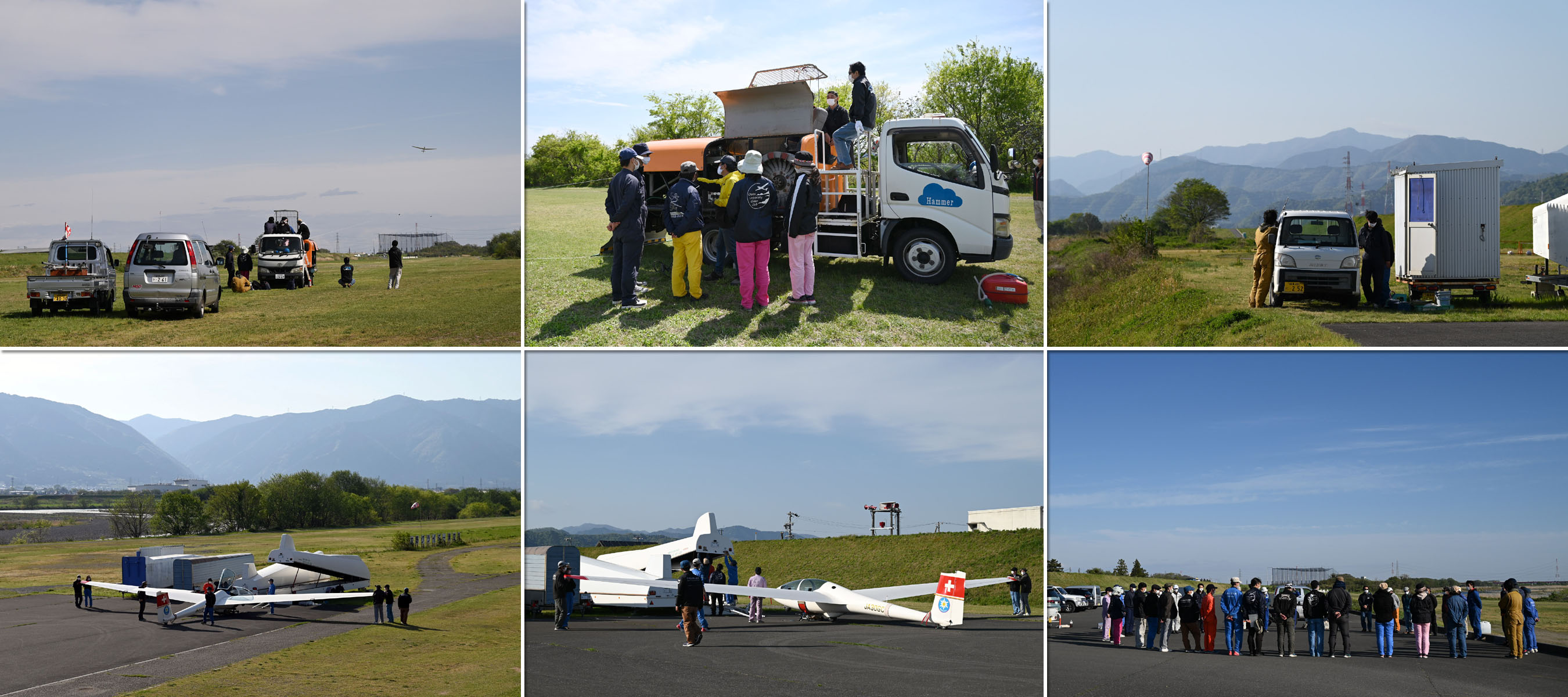 本日は木曽川滑空場が横風強風予報のため、新入生勧誘体験搭乗を大野で受け入れる事になりました。 そのため、応援学生が24名、応援教官も 4名参加して、8時30分には JA30GC、JA2108 も組み終っていました。
