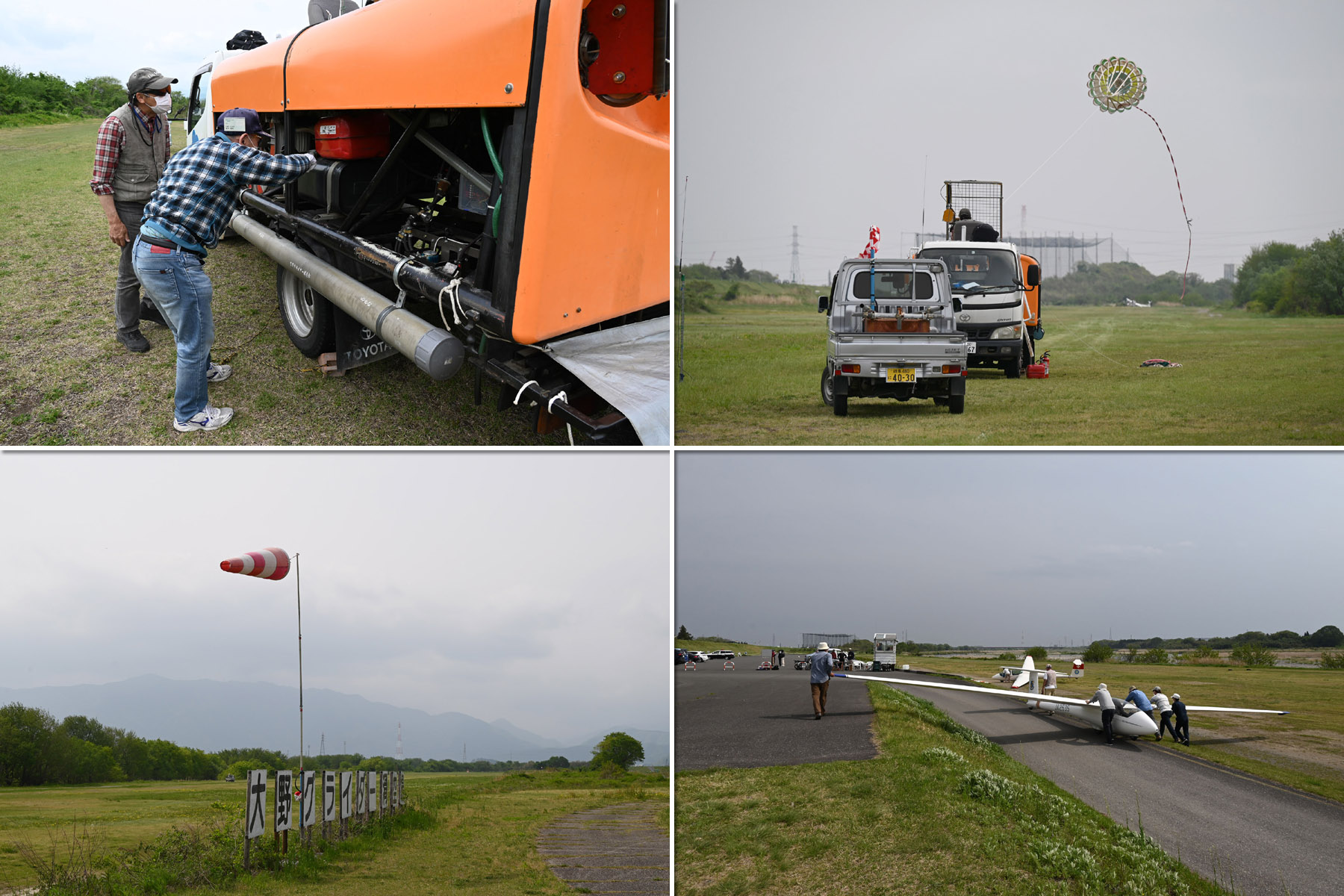 お昼過ぎまではサッカーグランド使用中のためウインチ位置を南寄りに設置。曳航索の長さは 750m、離脱高度 400m 前後で体験搭乗には程よい高さで効率よくこなすことができました。