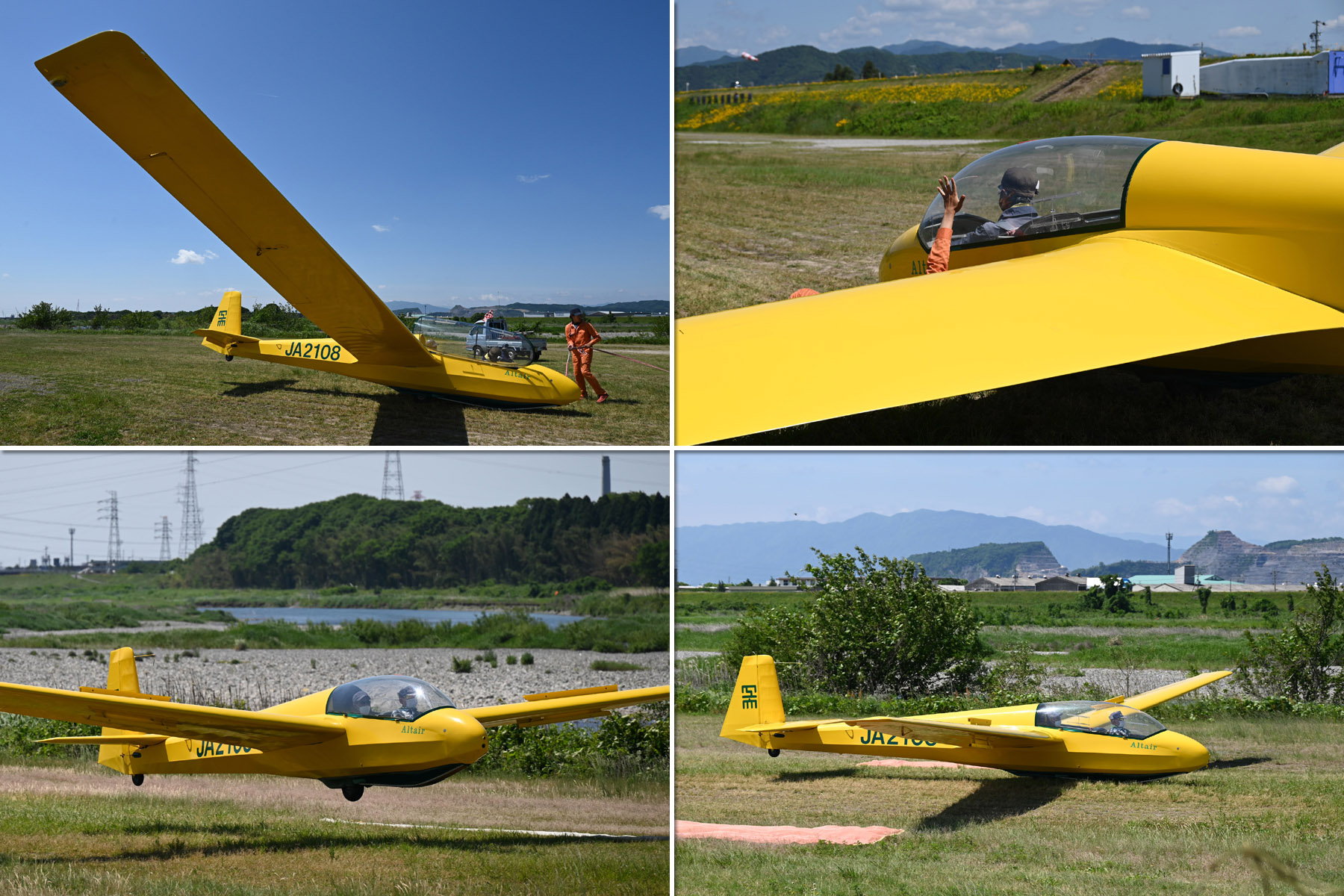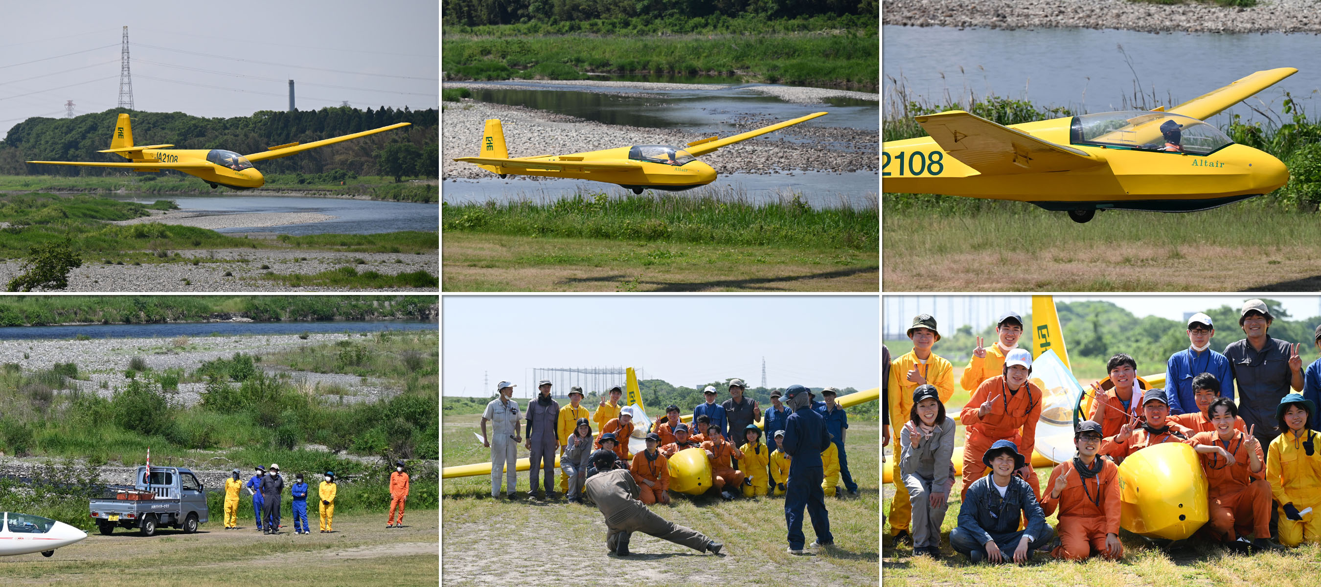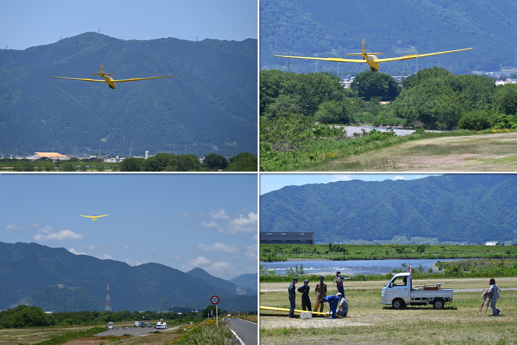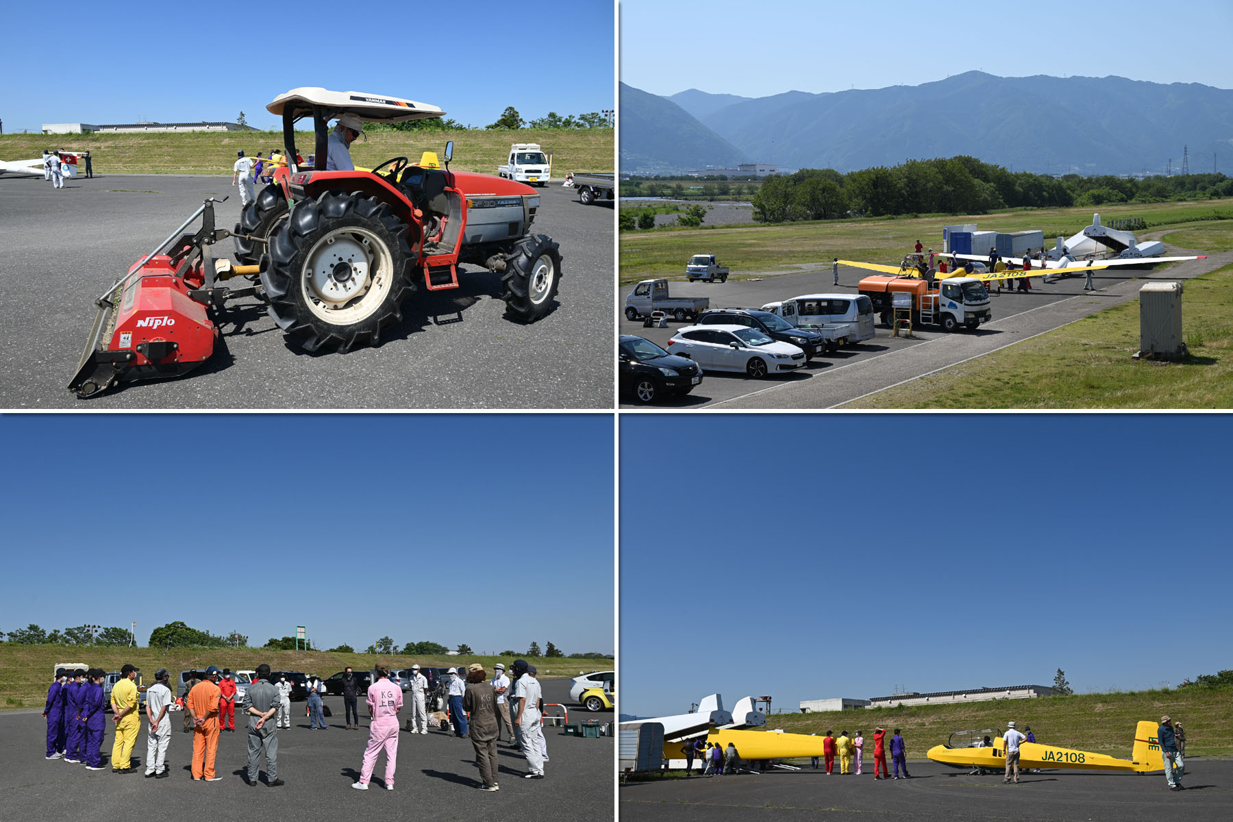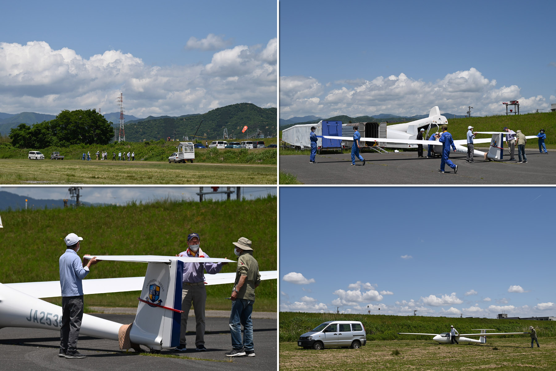 このような状況下でしたので、初合宿の京大 1回生 5名 (黄色のツナギ姿)がいたものの、総発数は 50発になりました。 概ね 1人 2発程度回ったところで、最終着陸 15:48 と少し早めの撤収となりました。