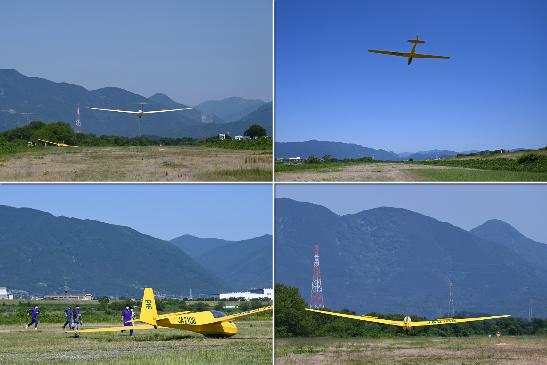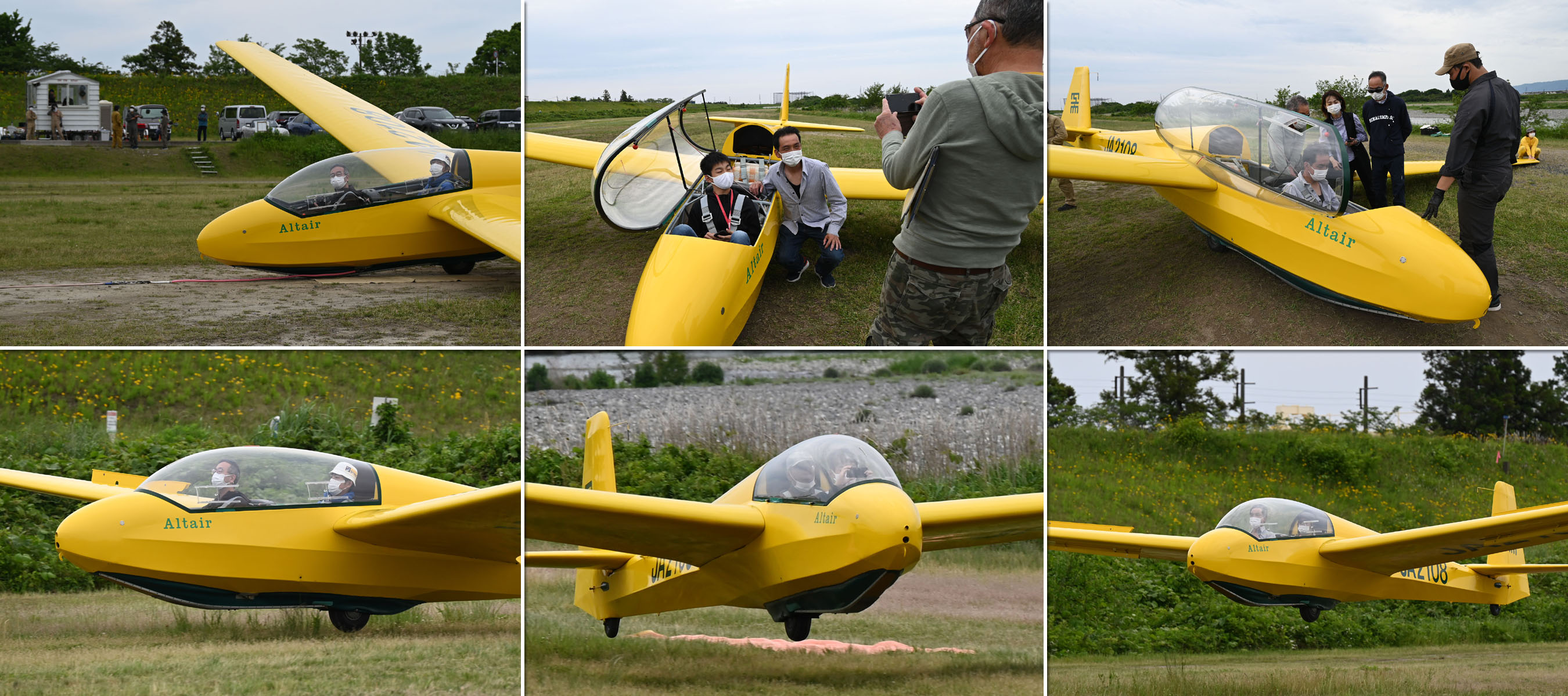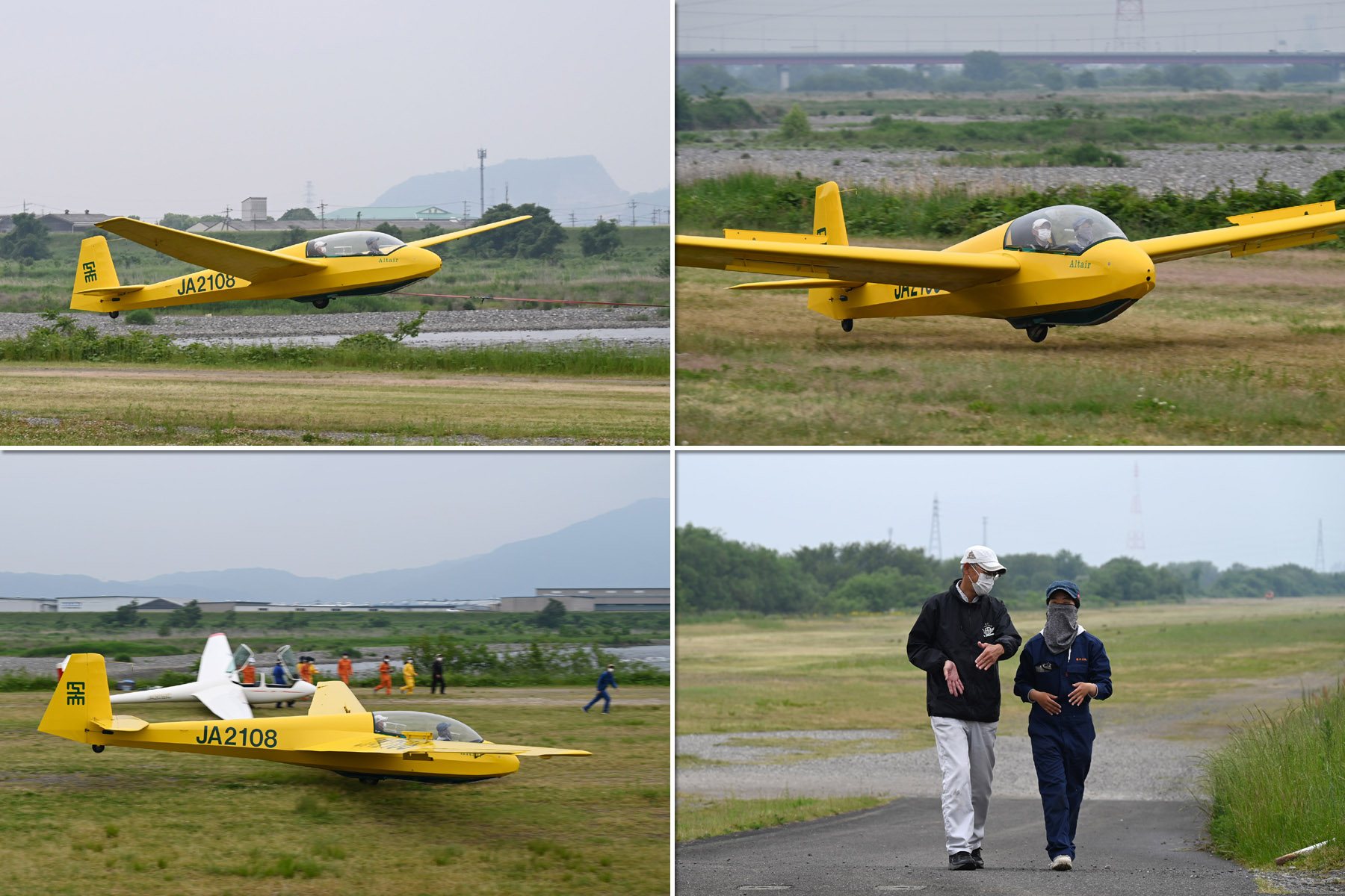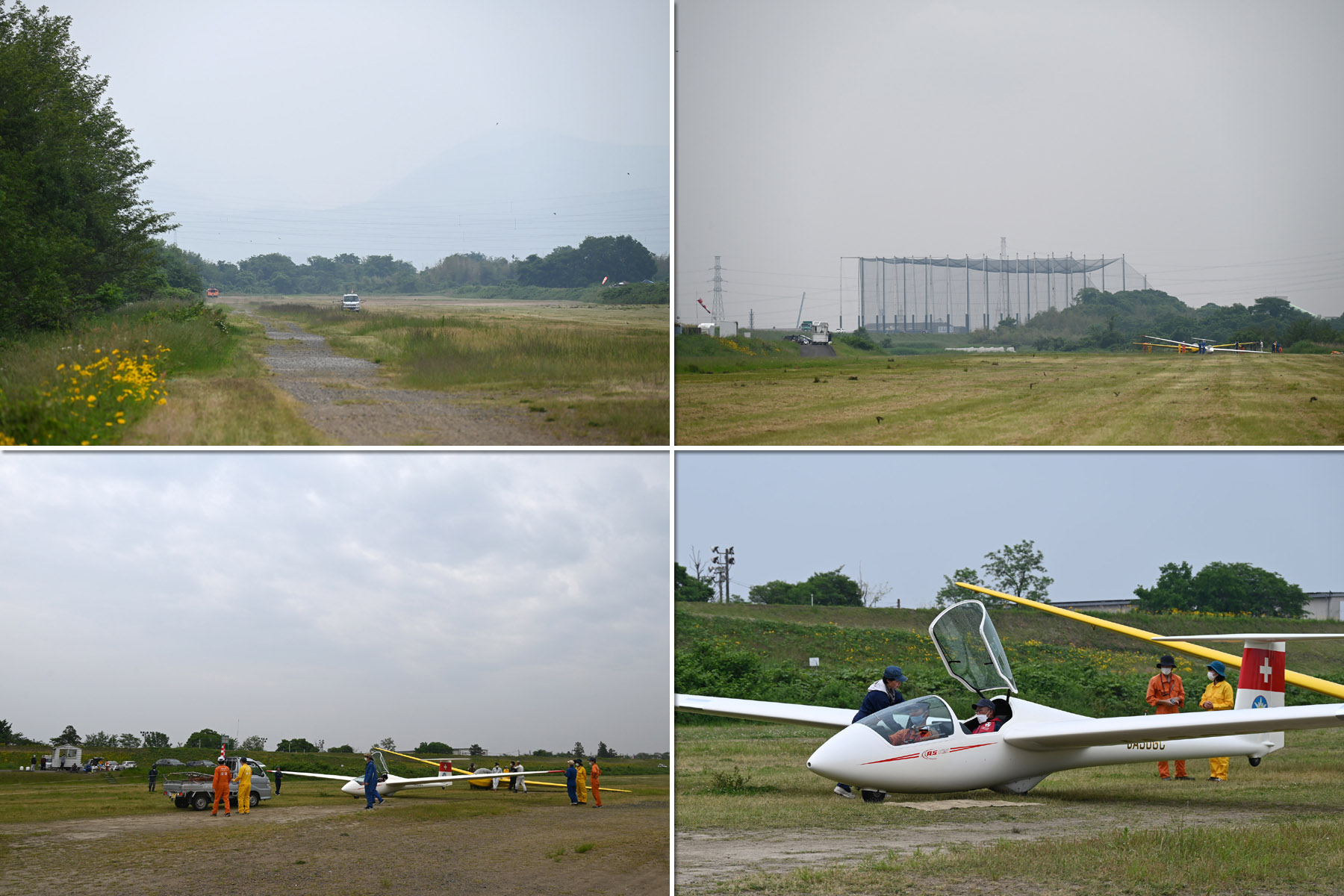 このような状況下でしたので、初合宿の京大 1回生 5名 (黄色のツナギ姿)がいたものの、総発数は 50発になりました。 概ね 1人 2発程度回ったところで、最終着陸 15:48 と少し早めの撤収となりました。