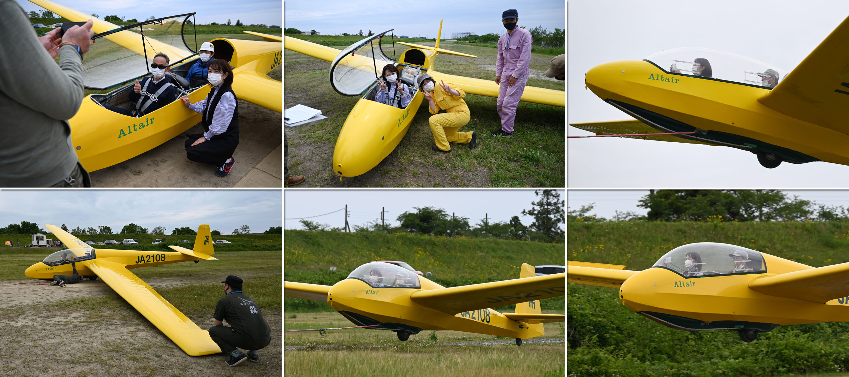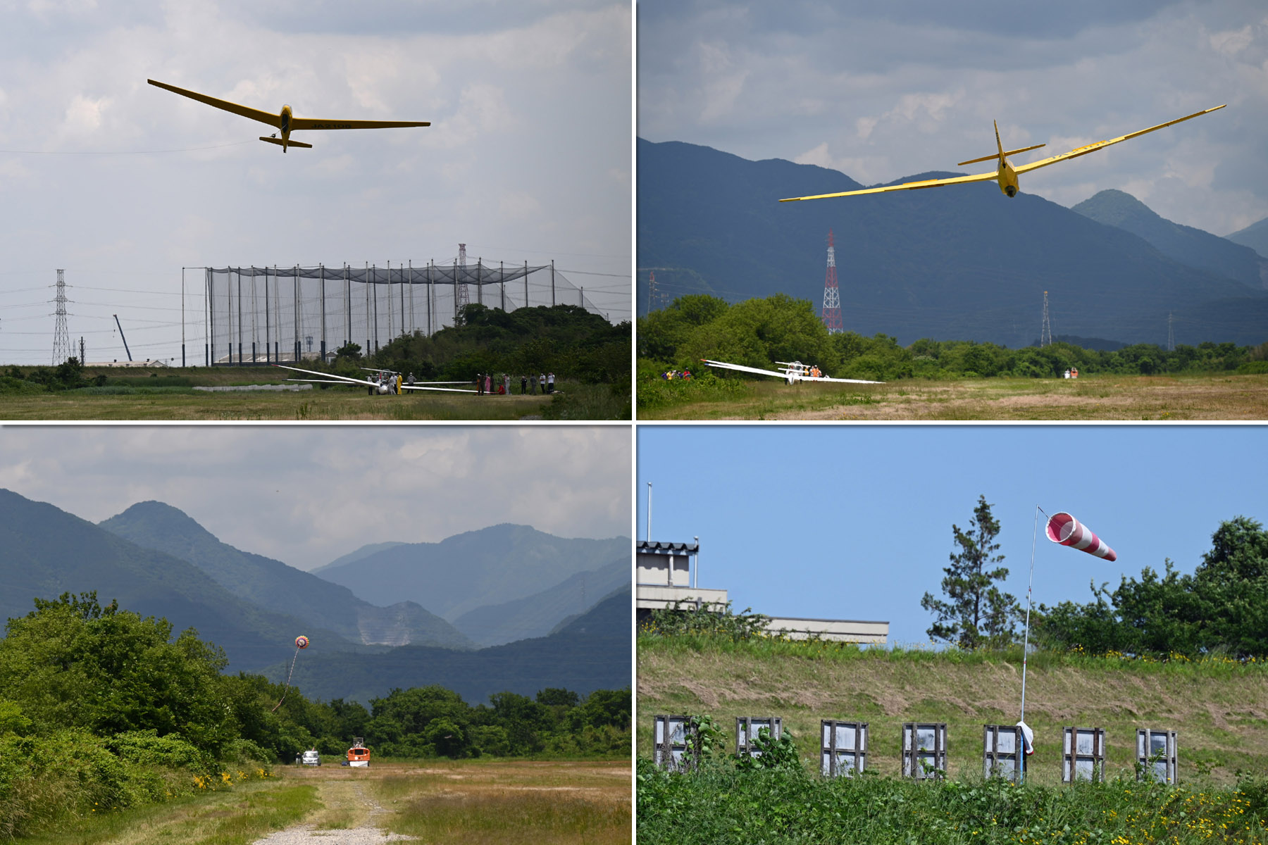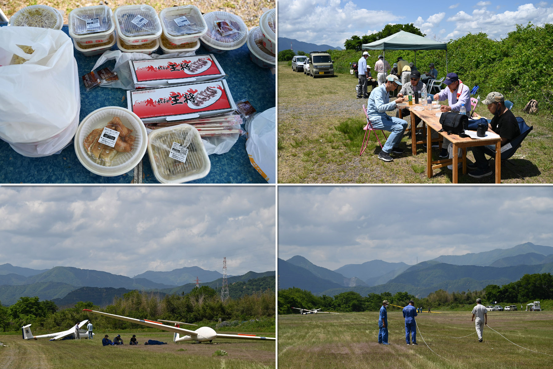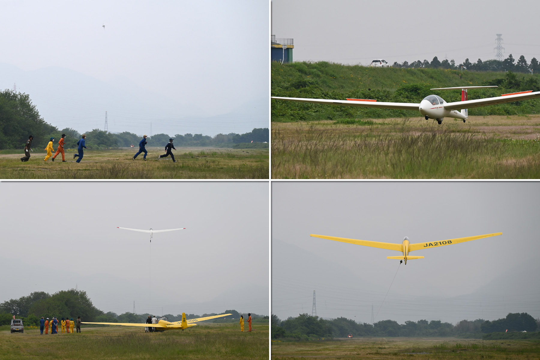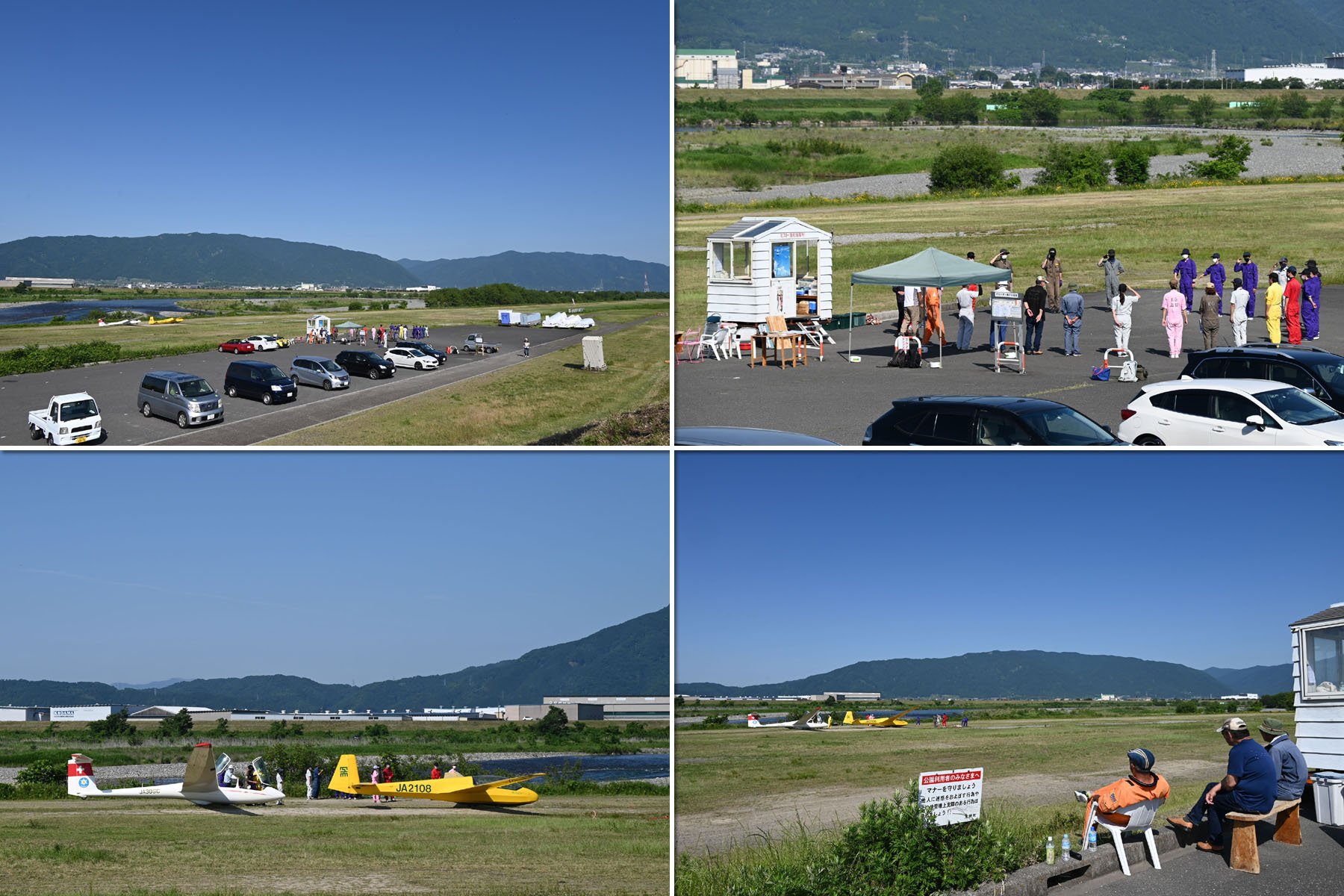 このような状況下でしたので、初合宿の京大 1回生 5名 (黄色のツナギ姿)がいたものの、総発数は 50発になりました。 概ね 1人 2発程度回ったところで、最終着陸 15:48 と少し早めの撤収となりました。