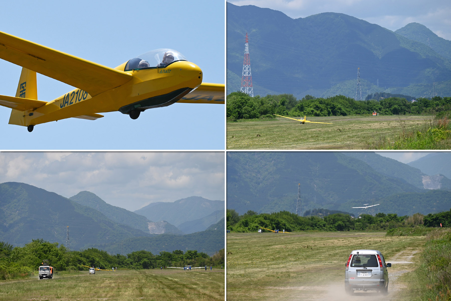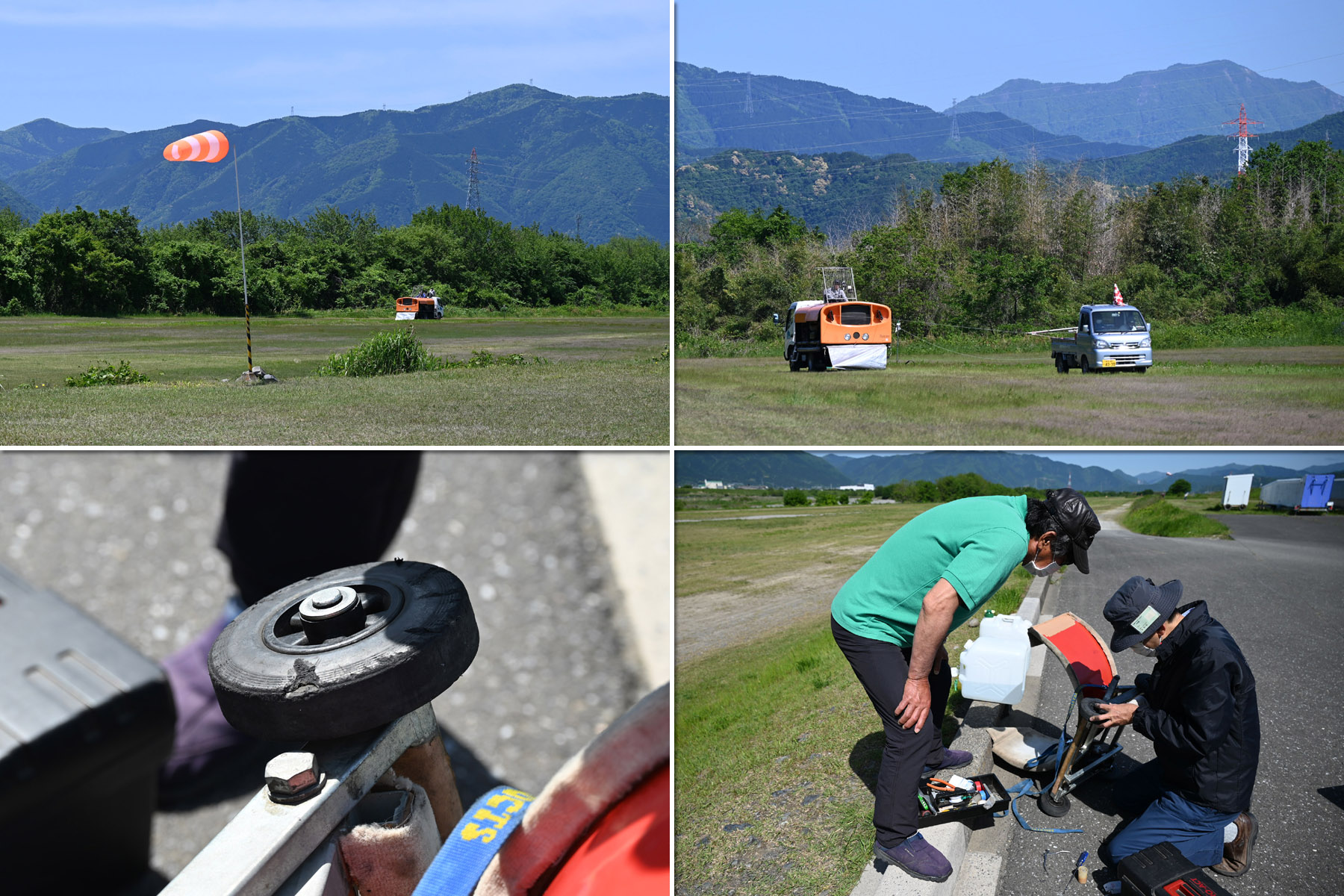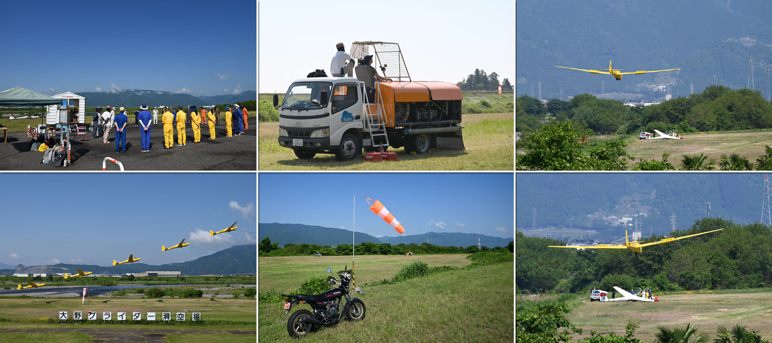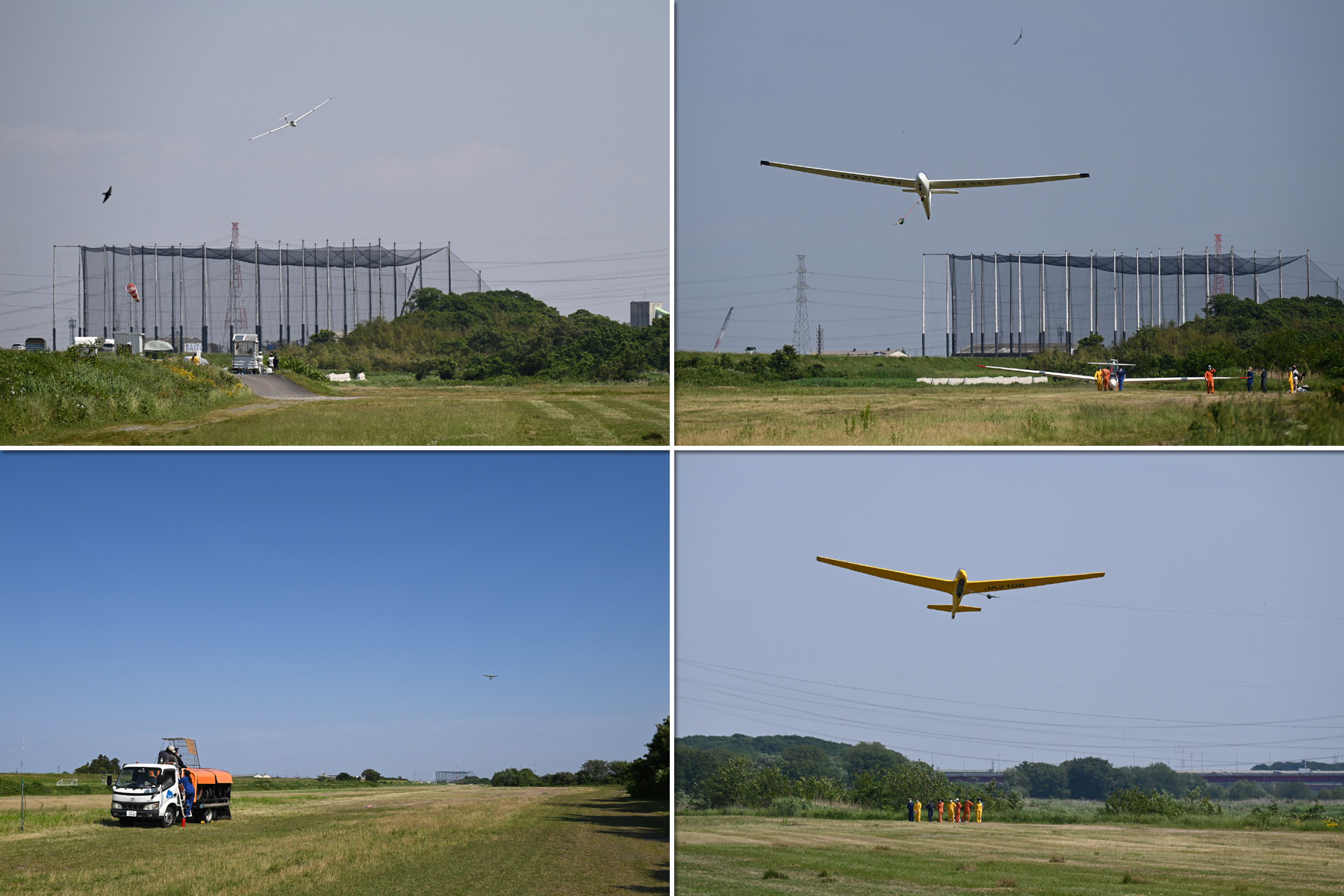 このような状況下でしたので、初合宿の京大 1回生 5名 (黄色のツナギ姿)がいたものの、総発数は 50発になりました。 概ね 1人 2発程度回ったところで、最終着陸 15:48 と少し早めの撤収となりました。