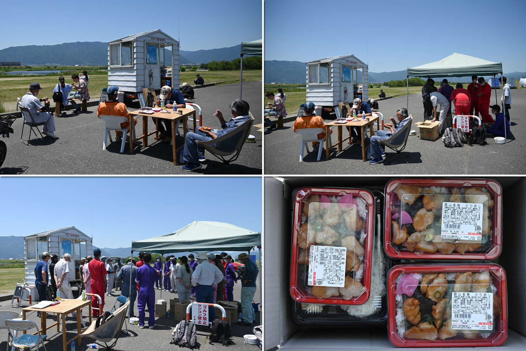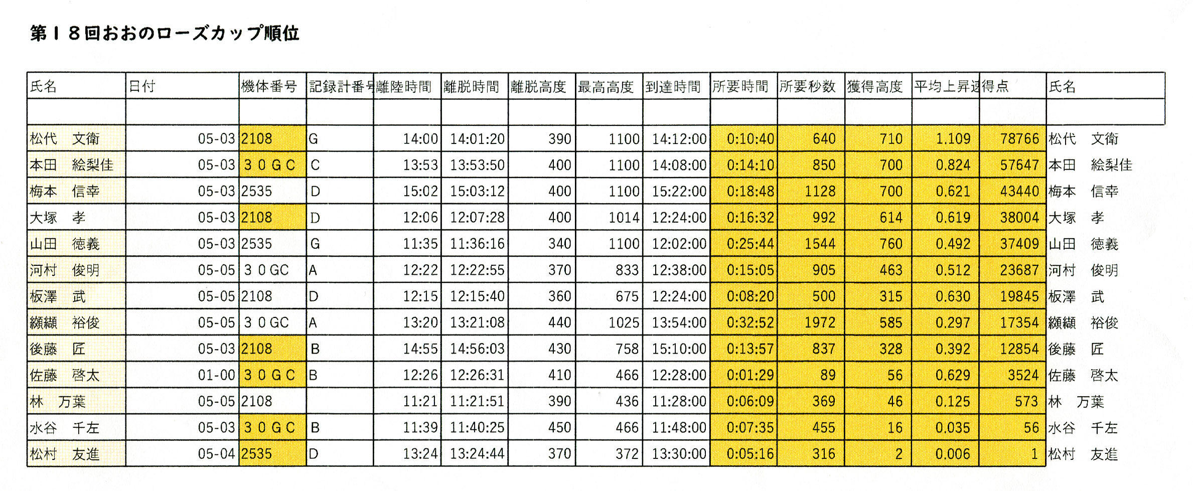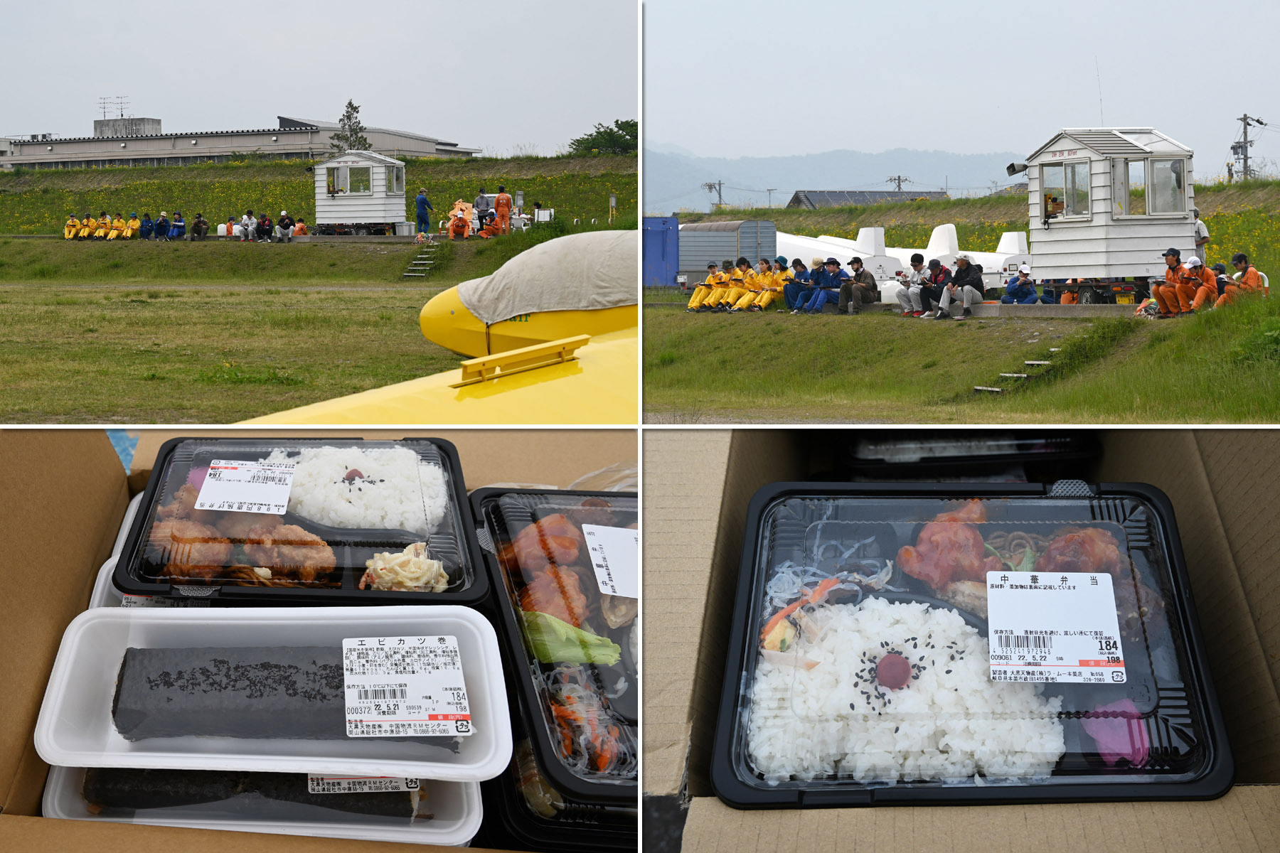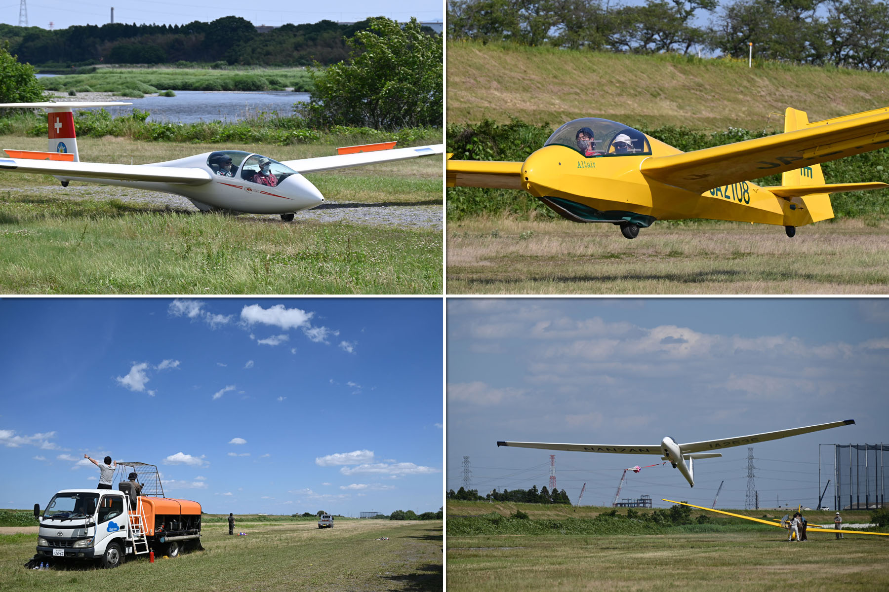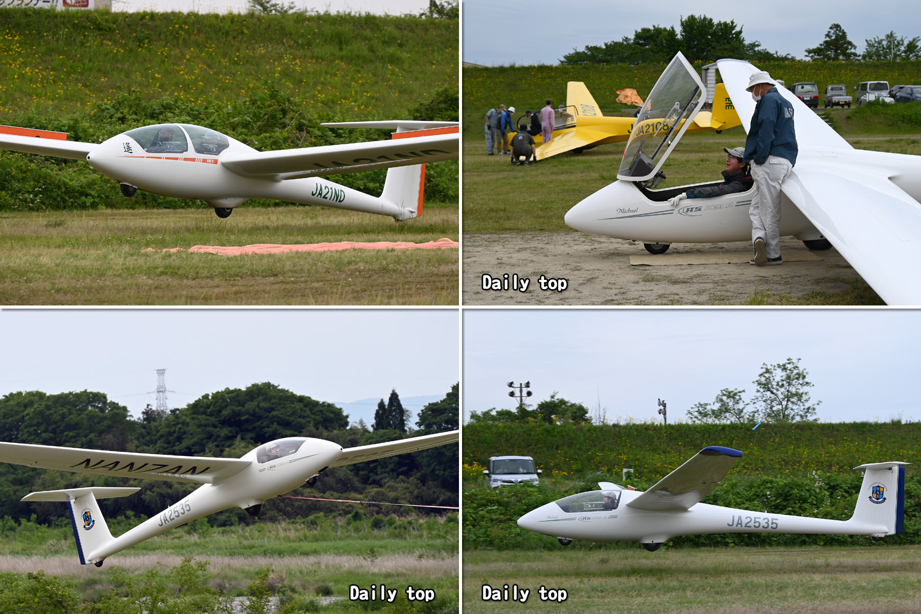 このような状況下でしたので、初合宿の京大 1回生 5名 (黄色のツナギ姿)がいたものの、総発数は 50発になりました。 概ね 1人 2発程度回ったところで、最終着陸 15:48 と少し早めの撤収となりました。