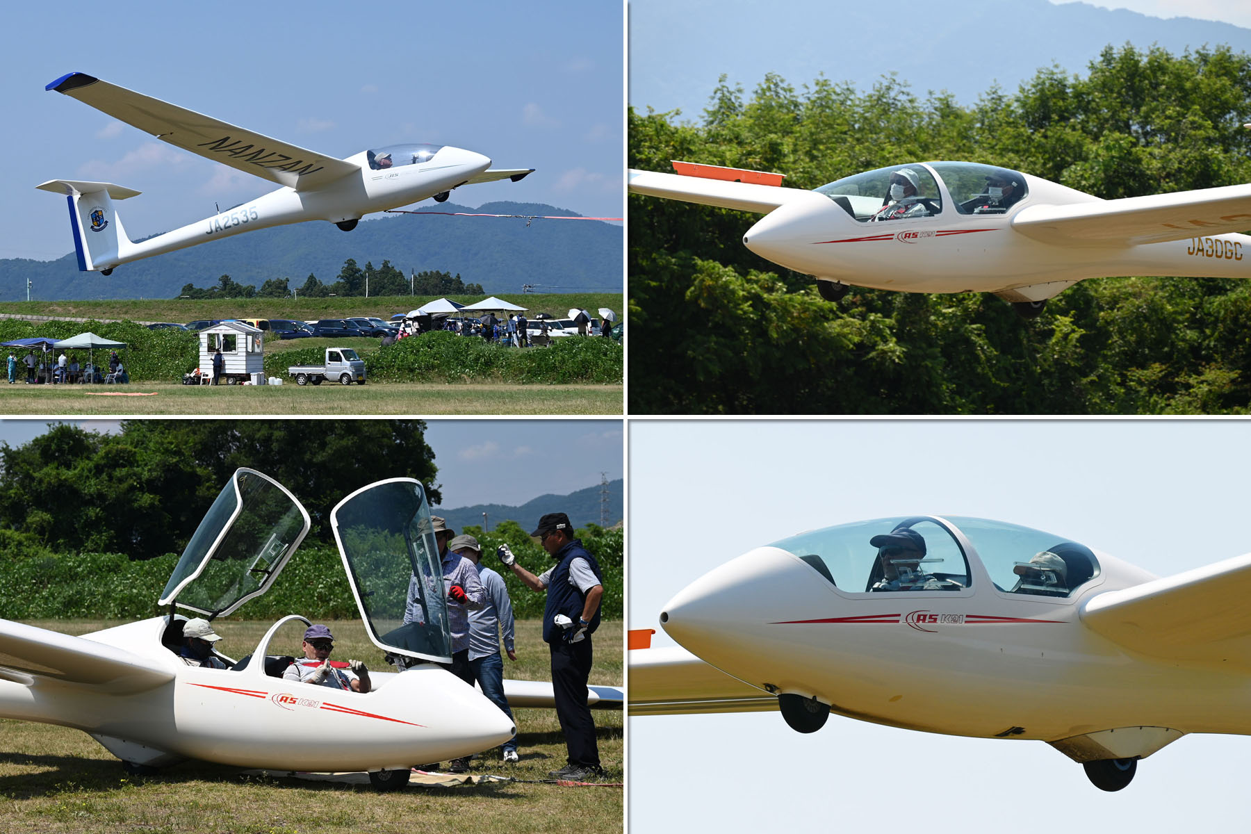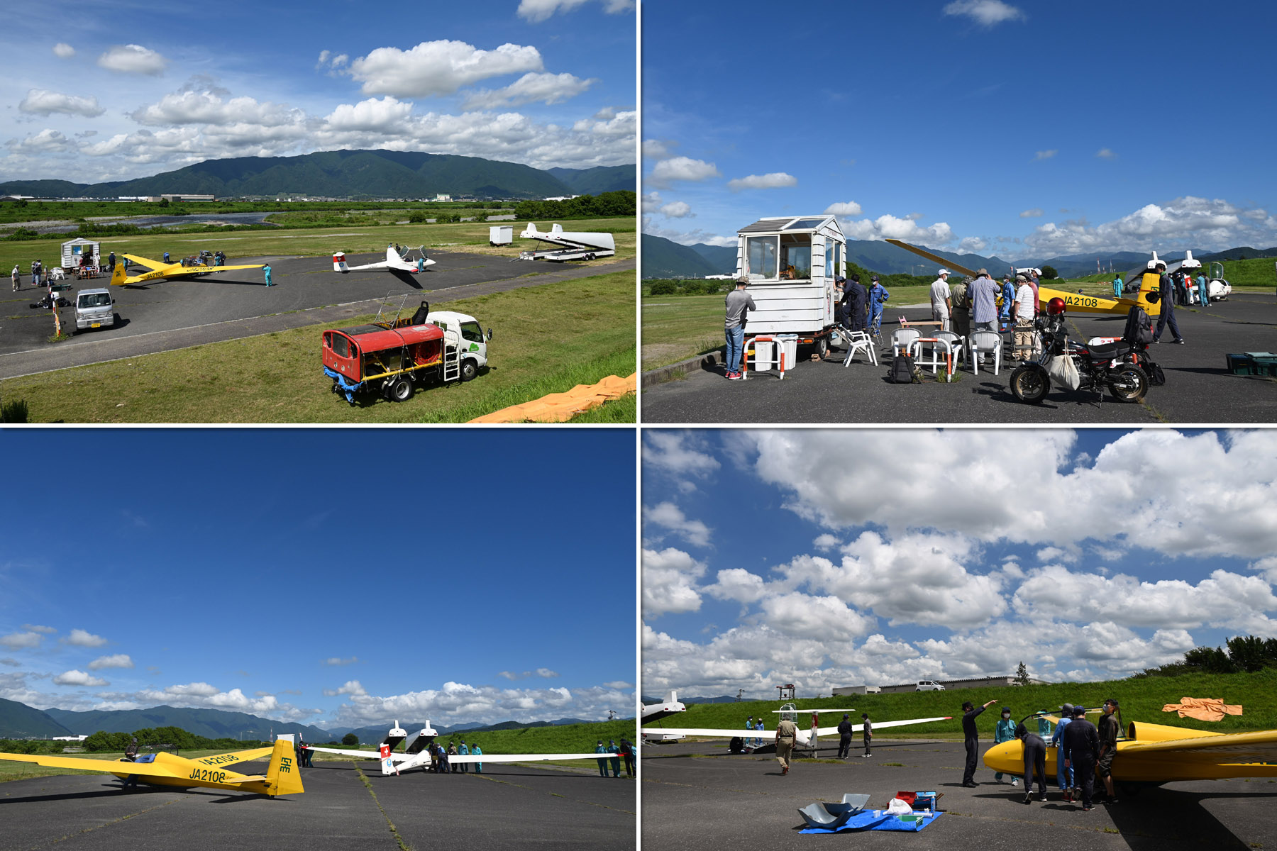 使用機体は 複座 JA2108/JA30GC で 8:30 から飛行開始。 OGC 会員は教官 3名を含めて 14名参加、OGC のオジサン達は単座組が多いので ASK23/JA2535 を組立てました。